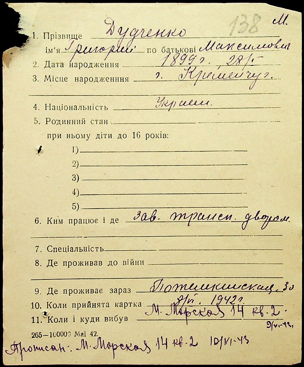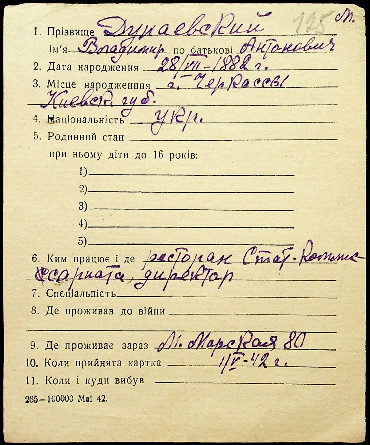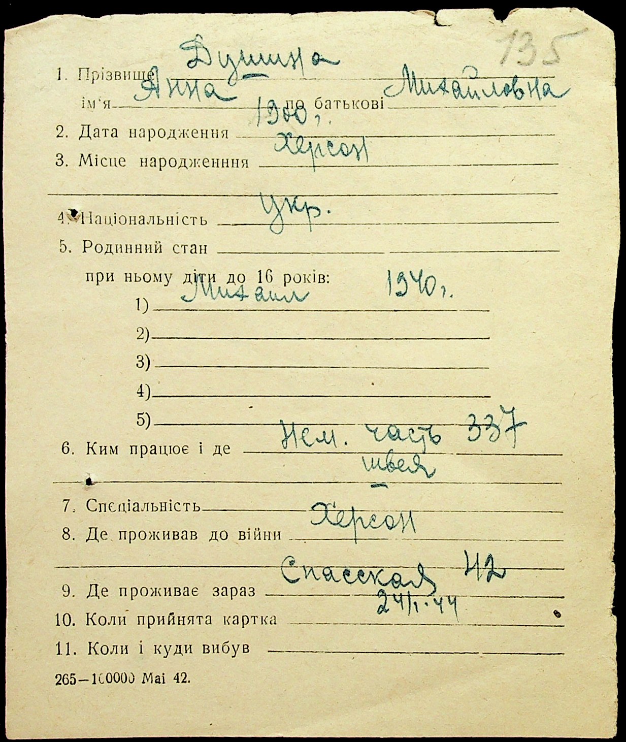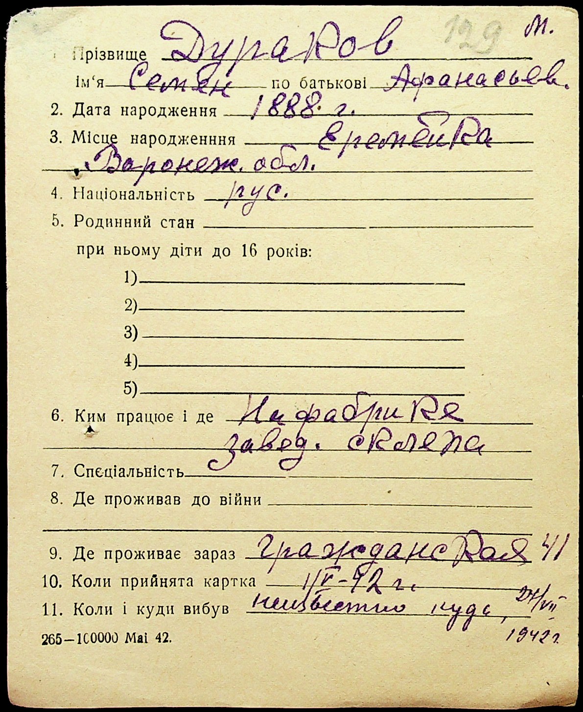 • • • • Справа № 21 “Картки адресного бюро м. Миколаєва на осіб, які працювали в німецько-фашистських установах та військових частинах. Прізвища на літеру «Д». Том 3”