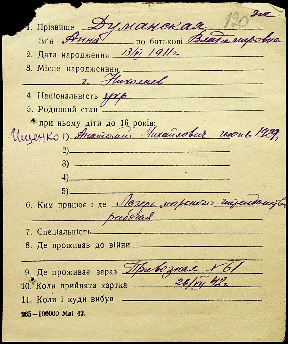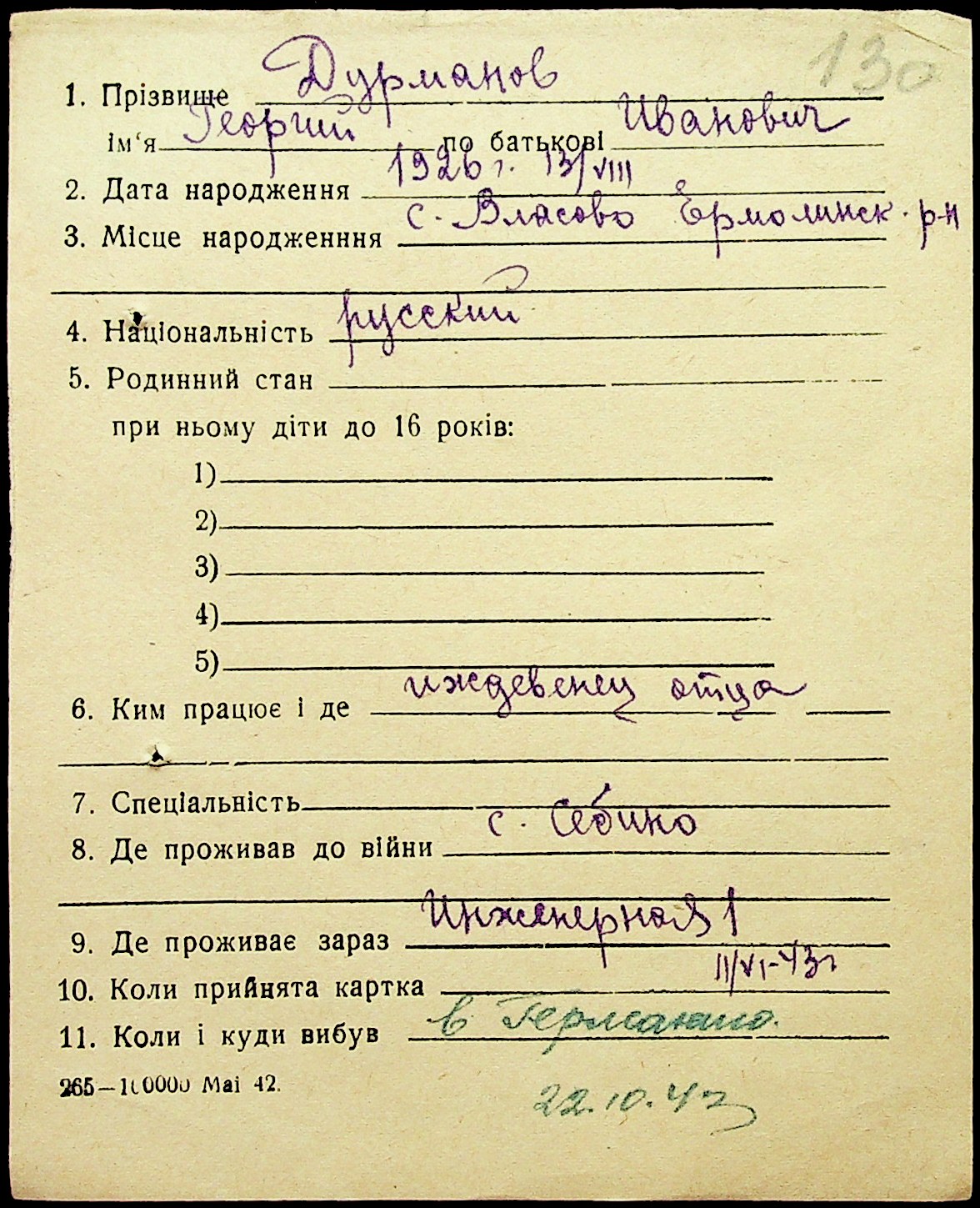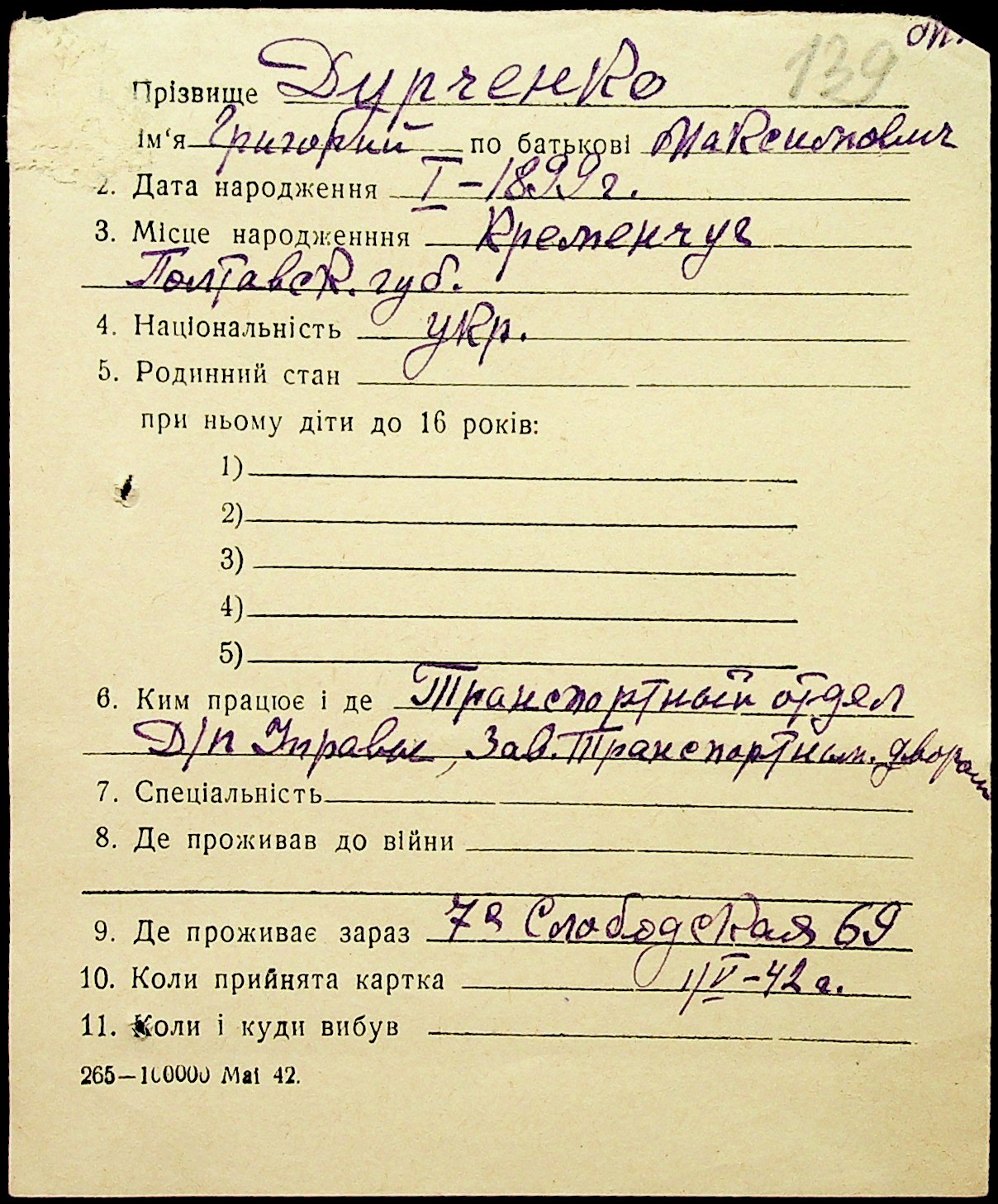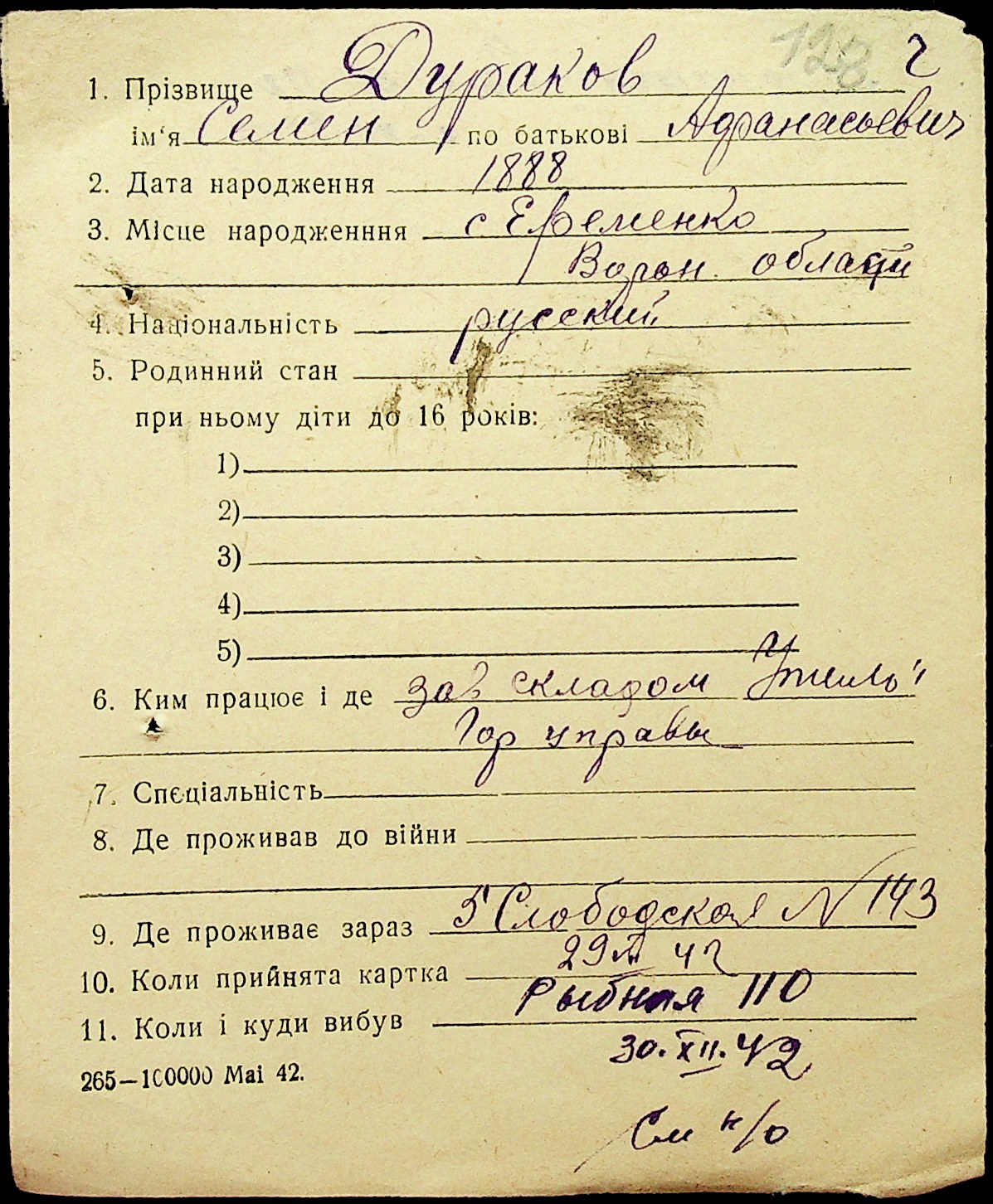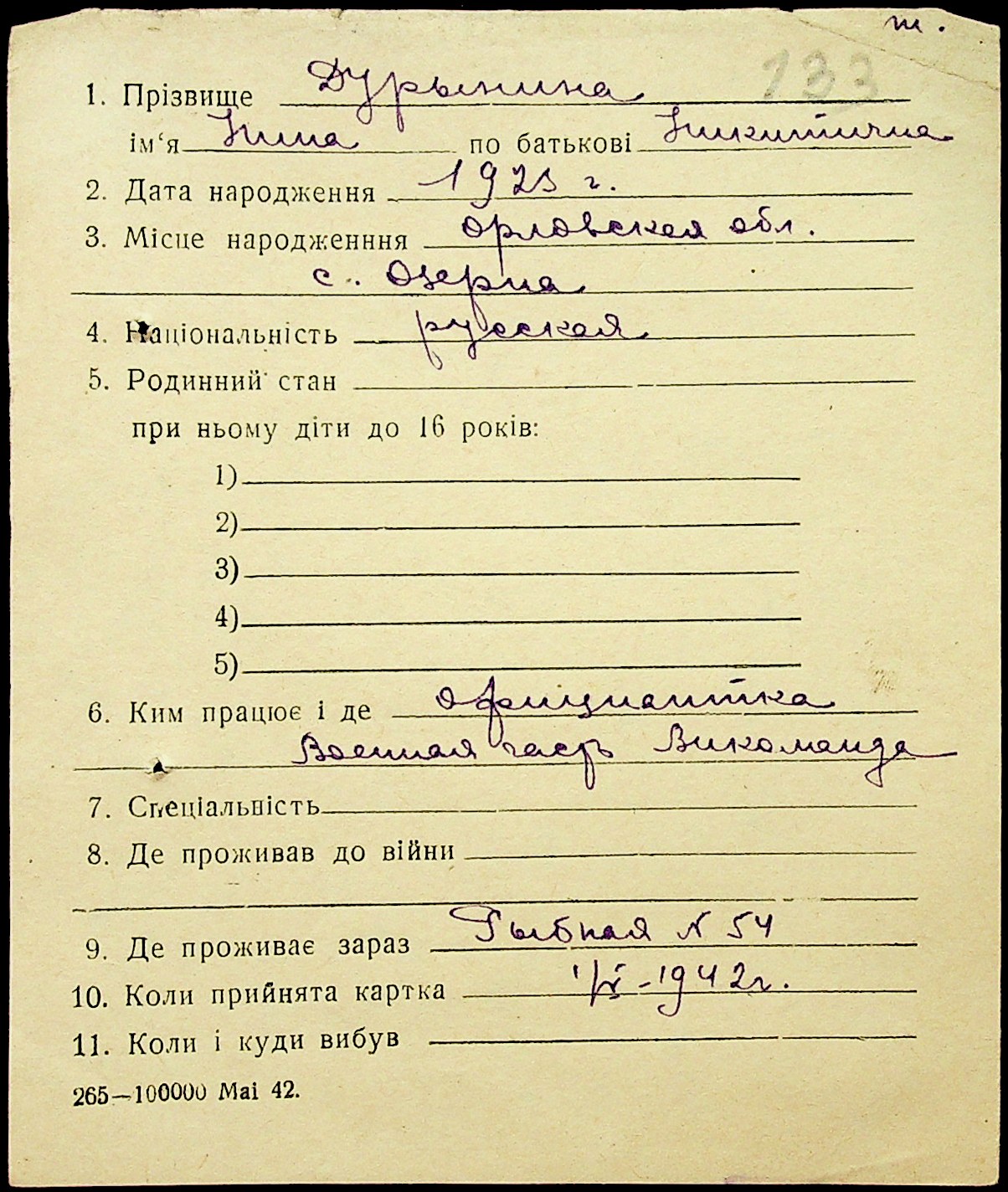 • • • • Справа № 21 “Картки адресного бюро м. Миколаєва на осіб, які працювали в німецько-фашистських установах та військових частинах. Прізвища на літеру «Д». Том 3”