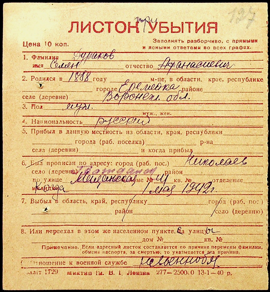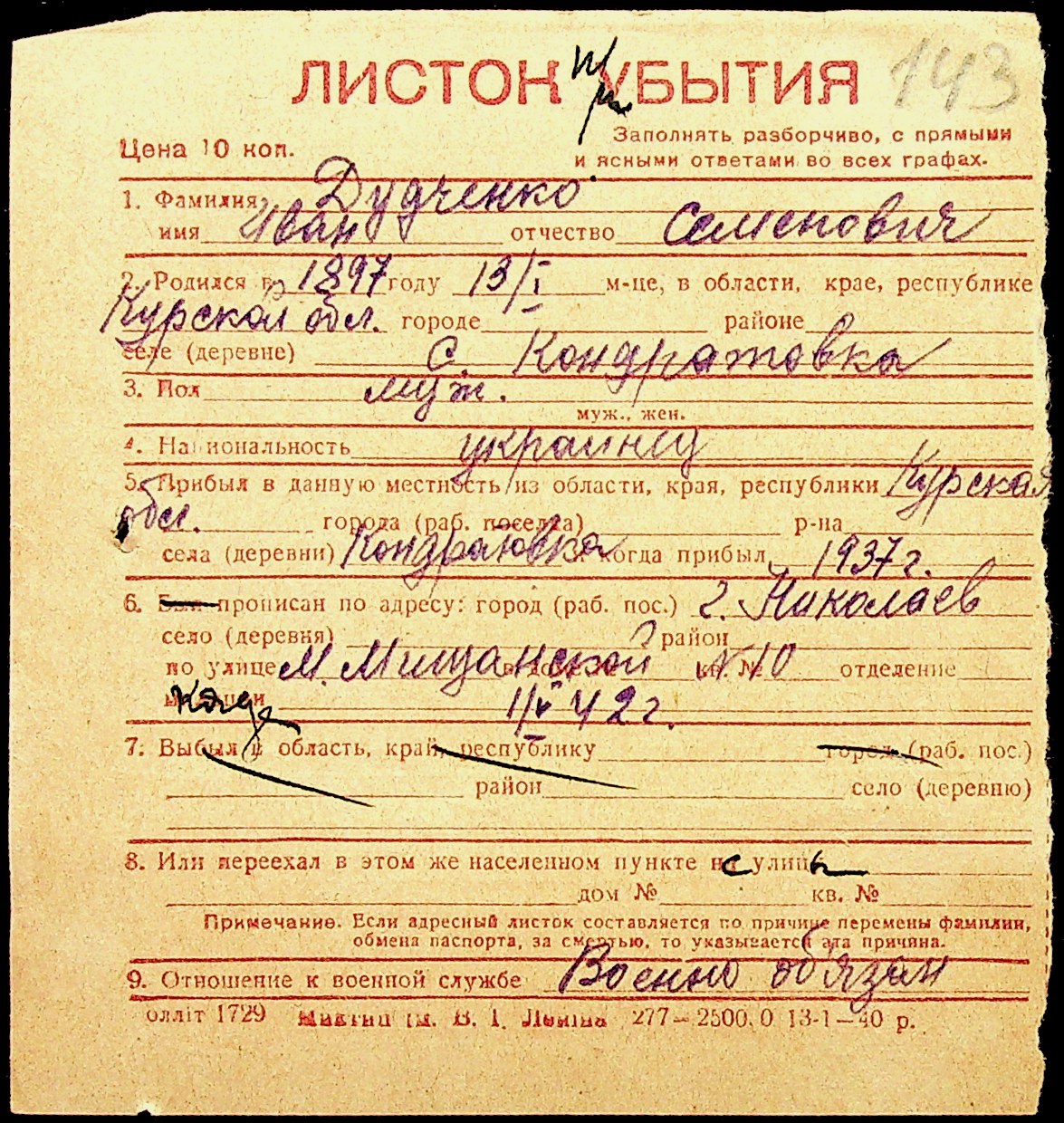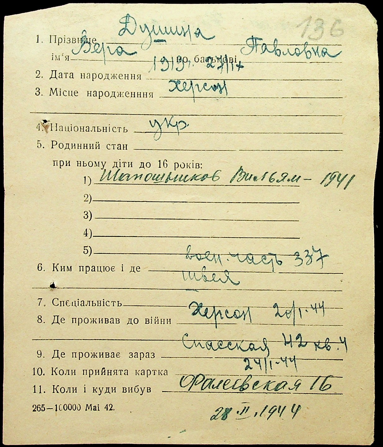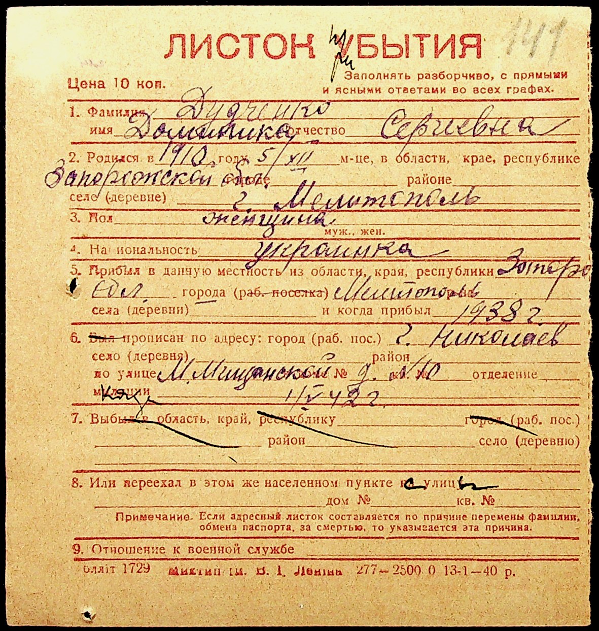 ◦ ◦ Фонд № Н-1016 “Адресне бюро м. Миколаєва”