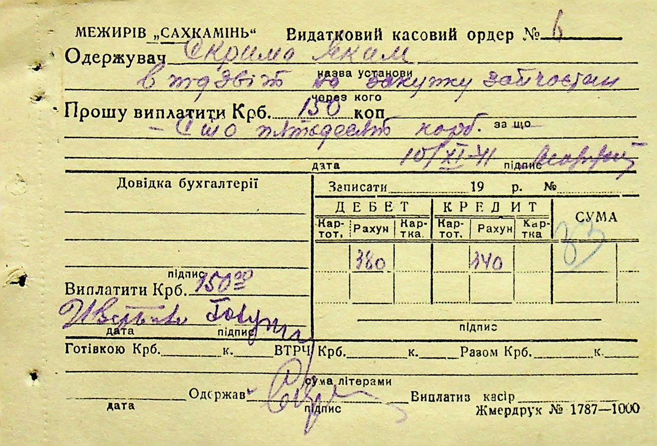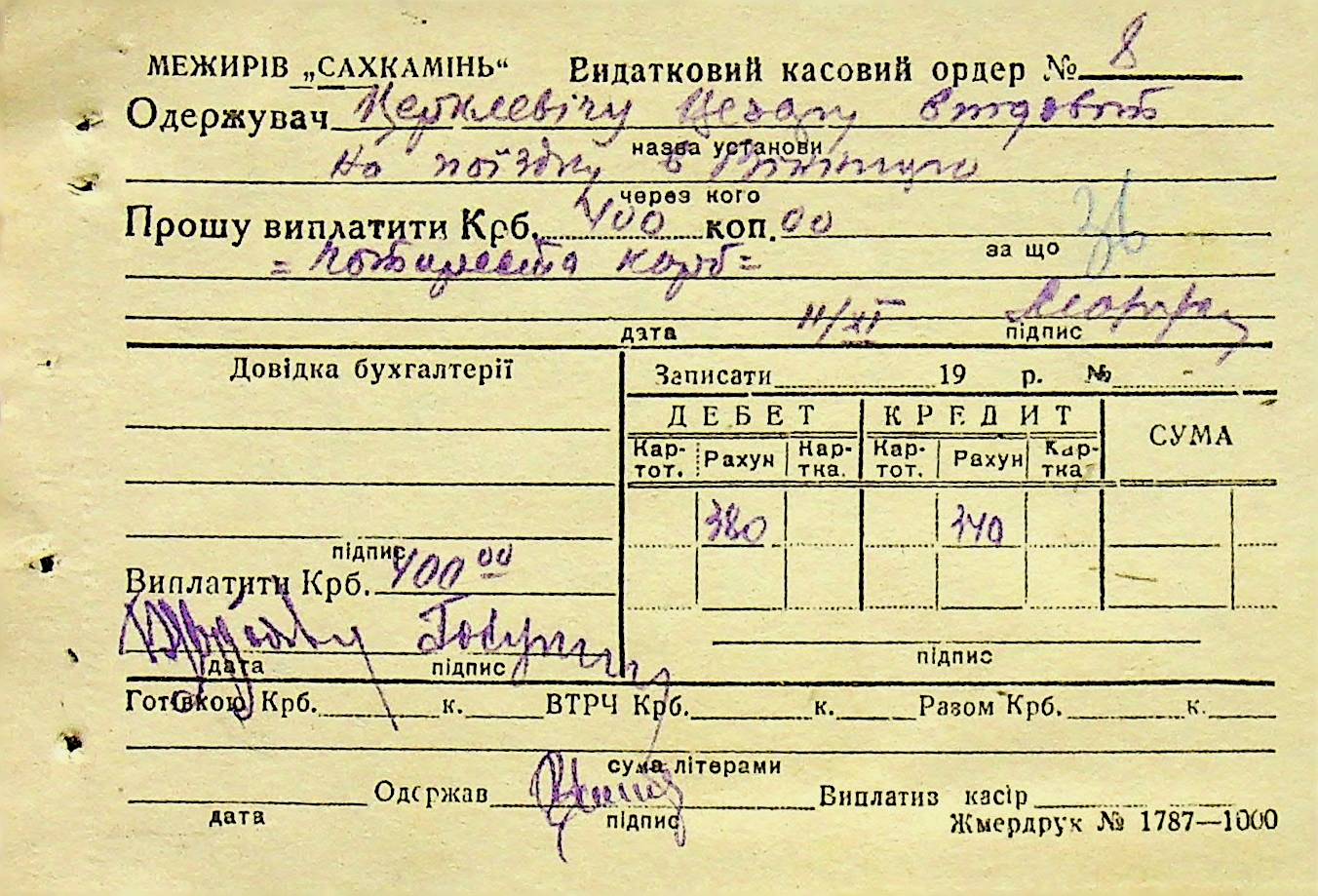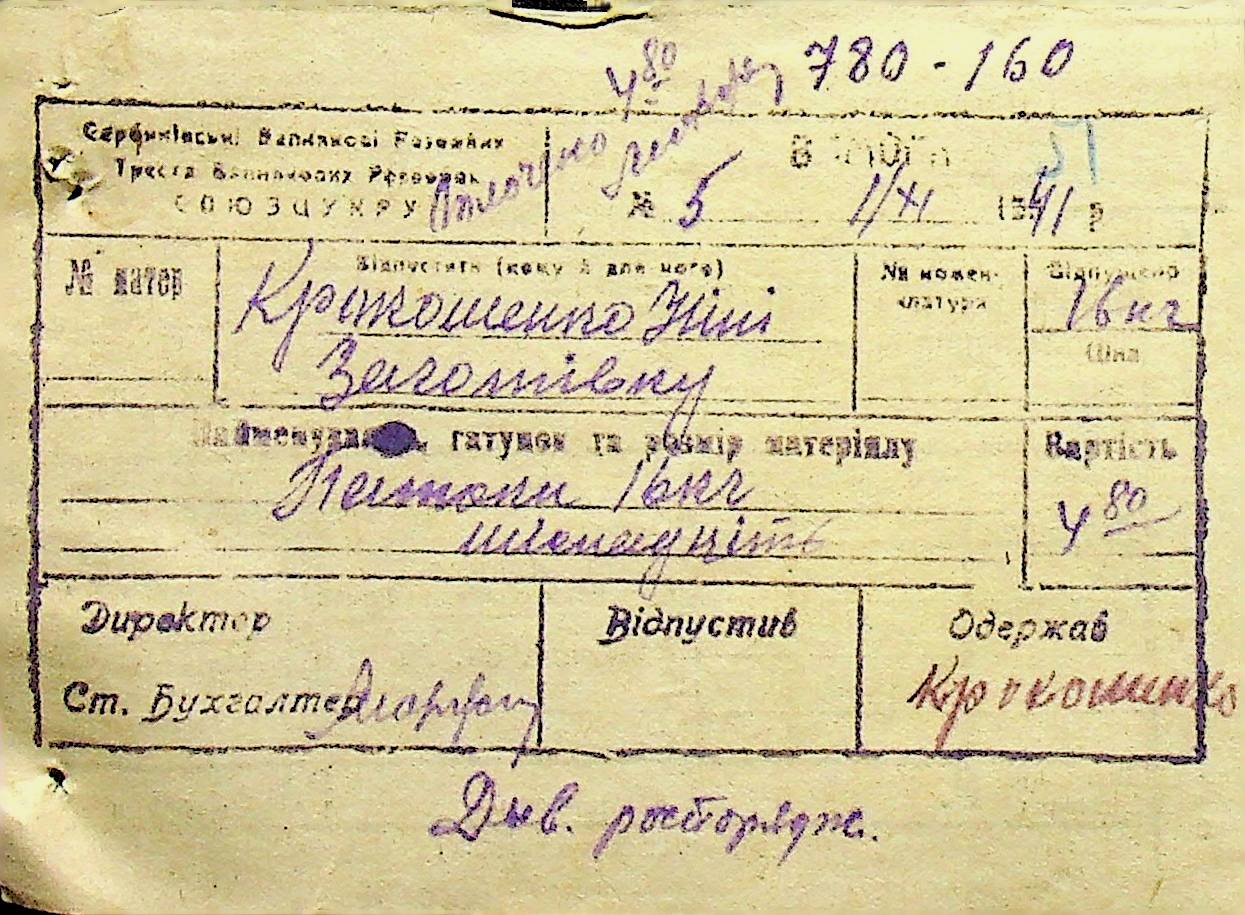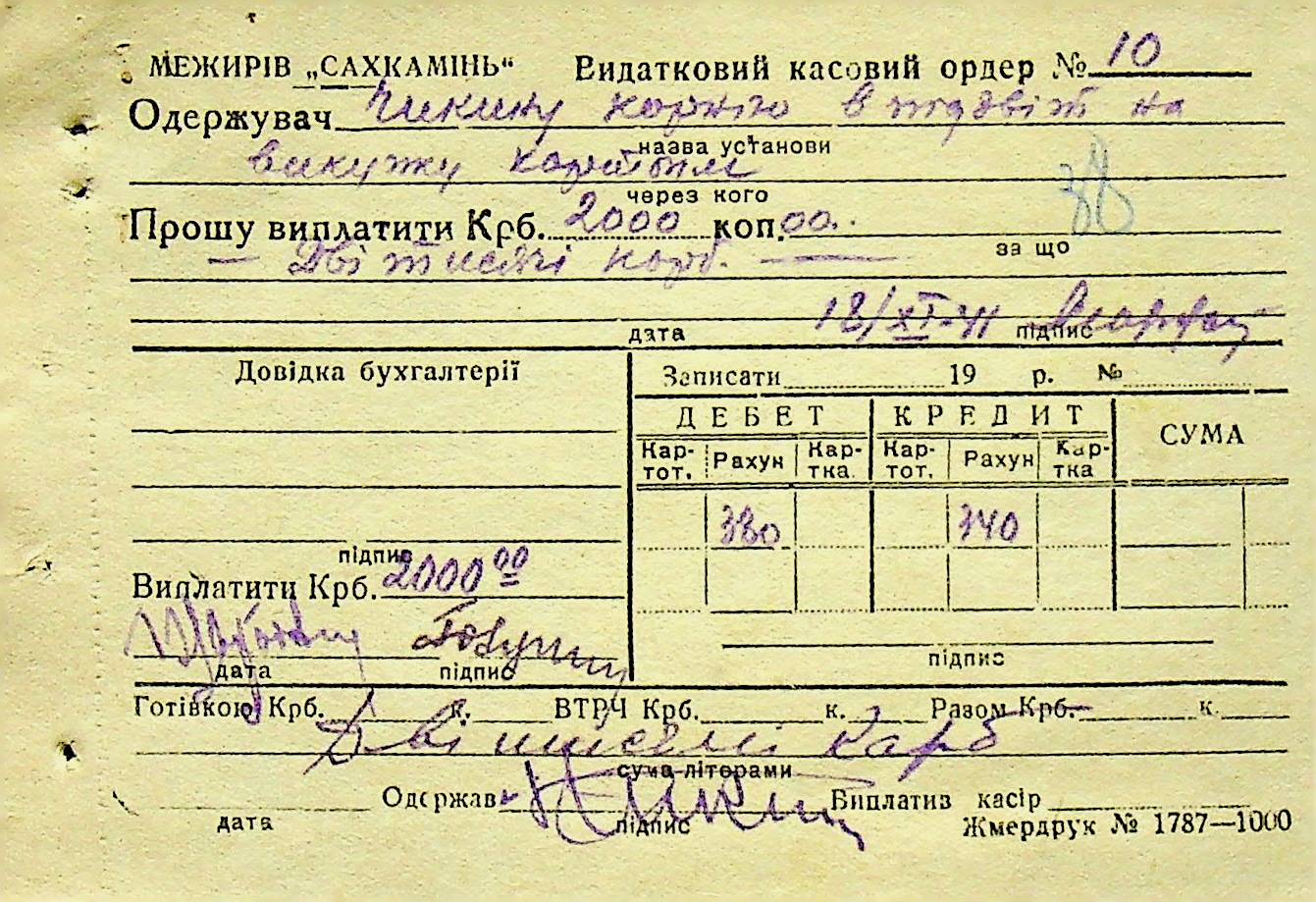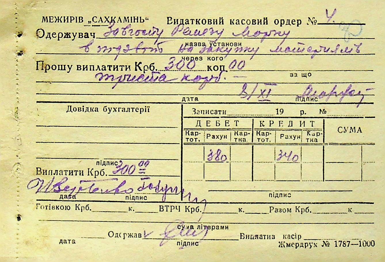 • • • • Справа № 6 “Прибутково-витратні ордери. Рапорти про виконані роботи. Списки робітників і службовців Межирівських вапняних розробок”