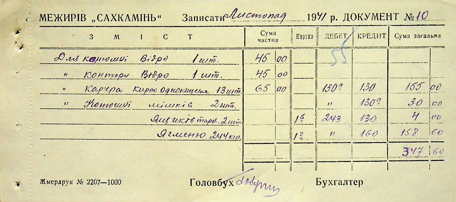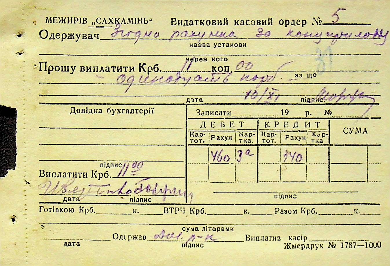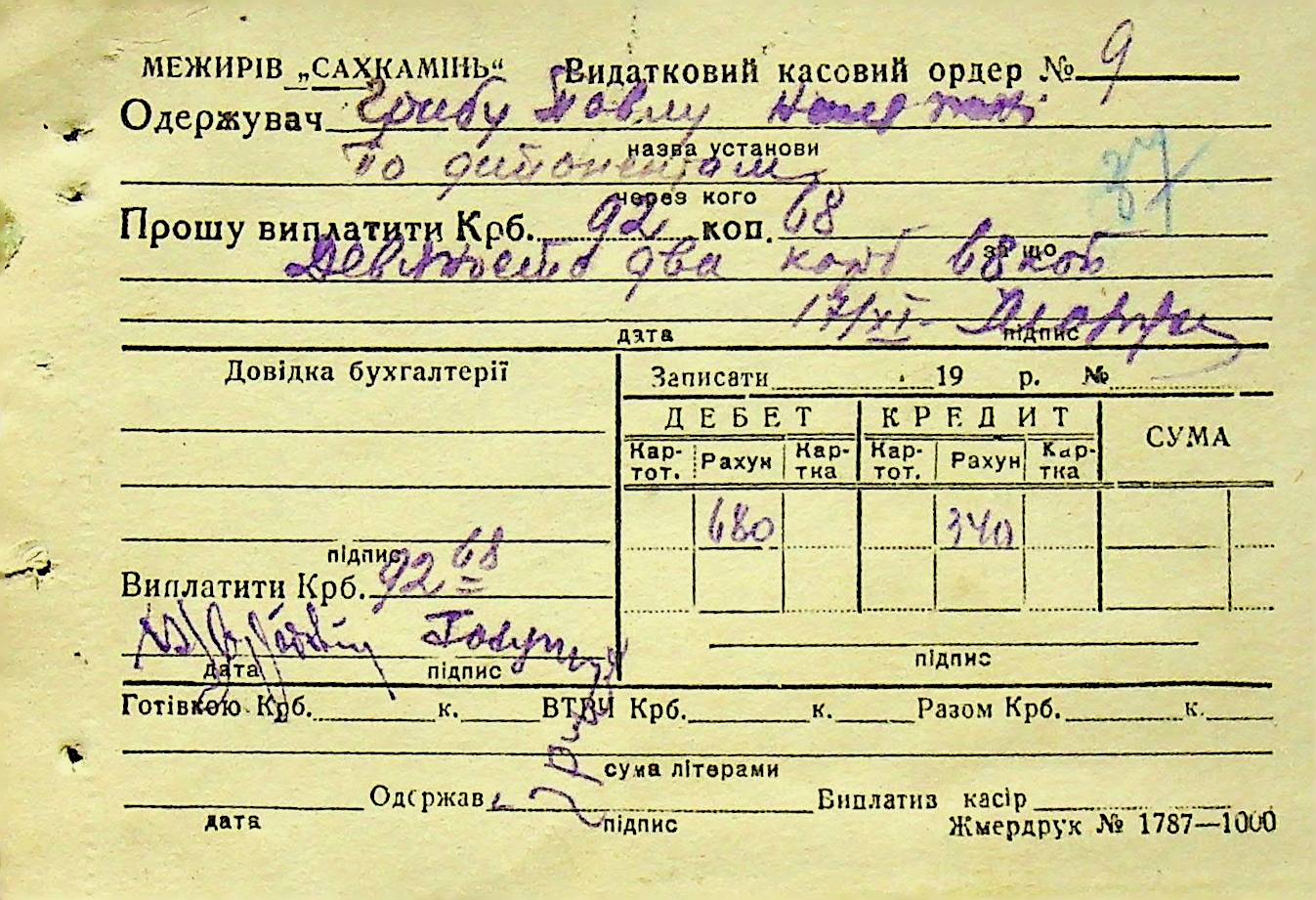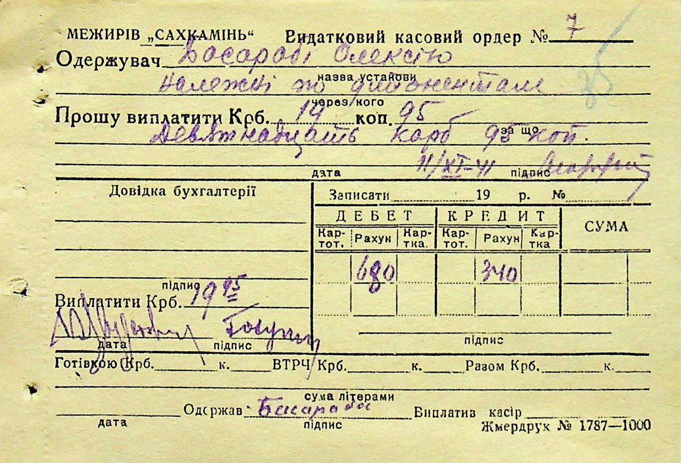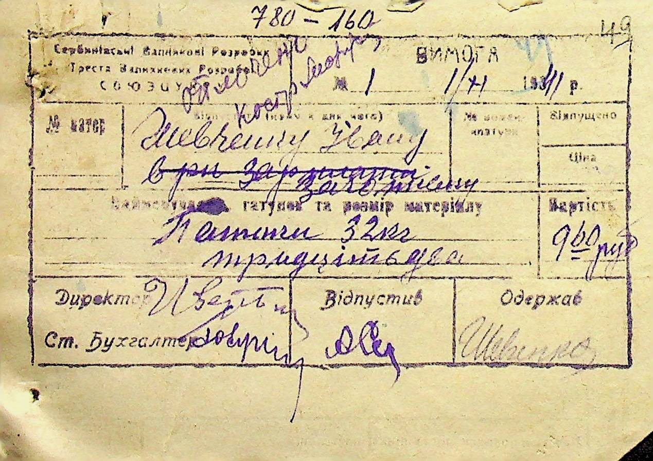 • • • • Справа № 6 “Прибутково-витратні ордери. Рапорти про виконані роботи. Списки робітників і службовців Межирівських вапняних розробок”