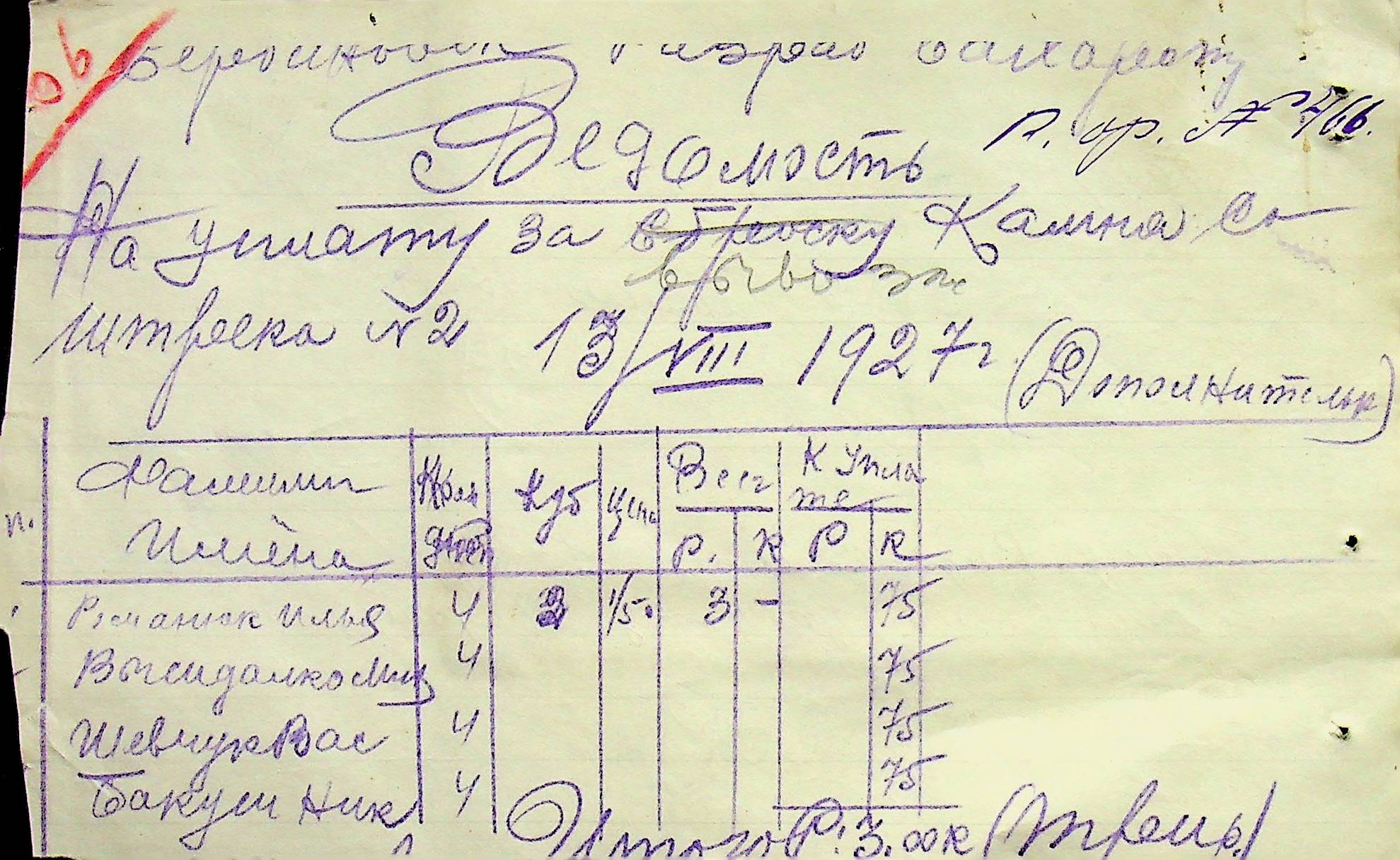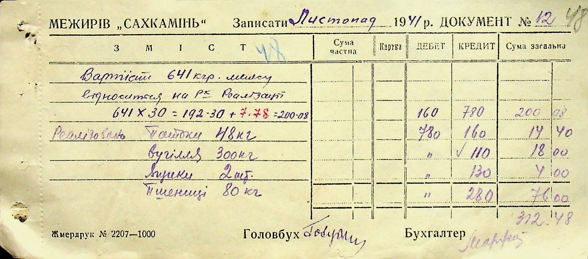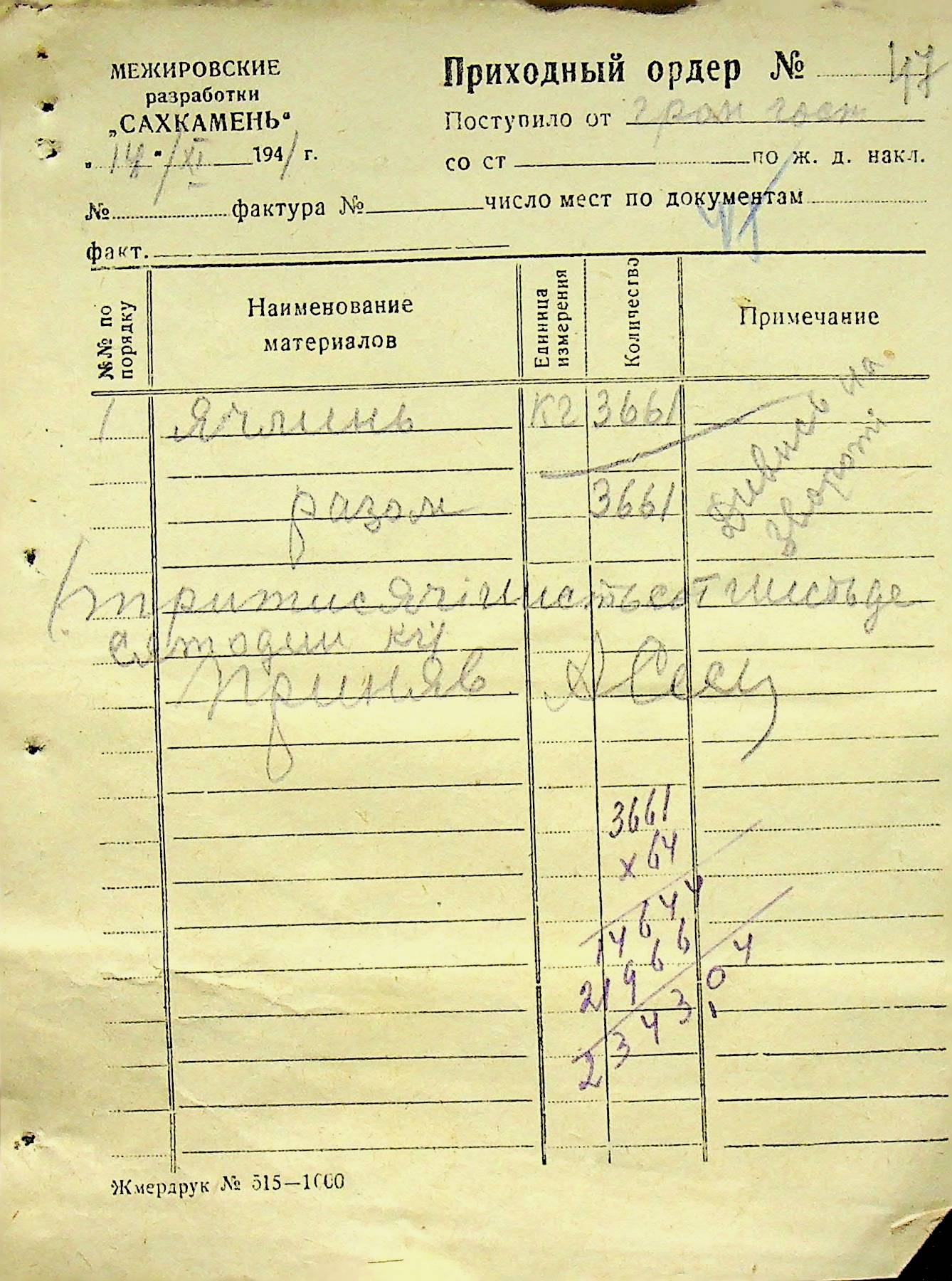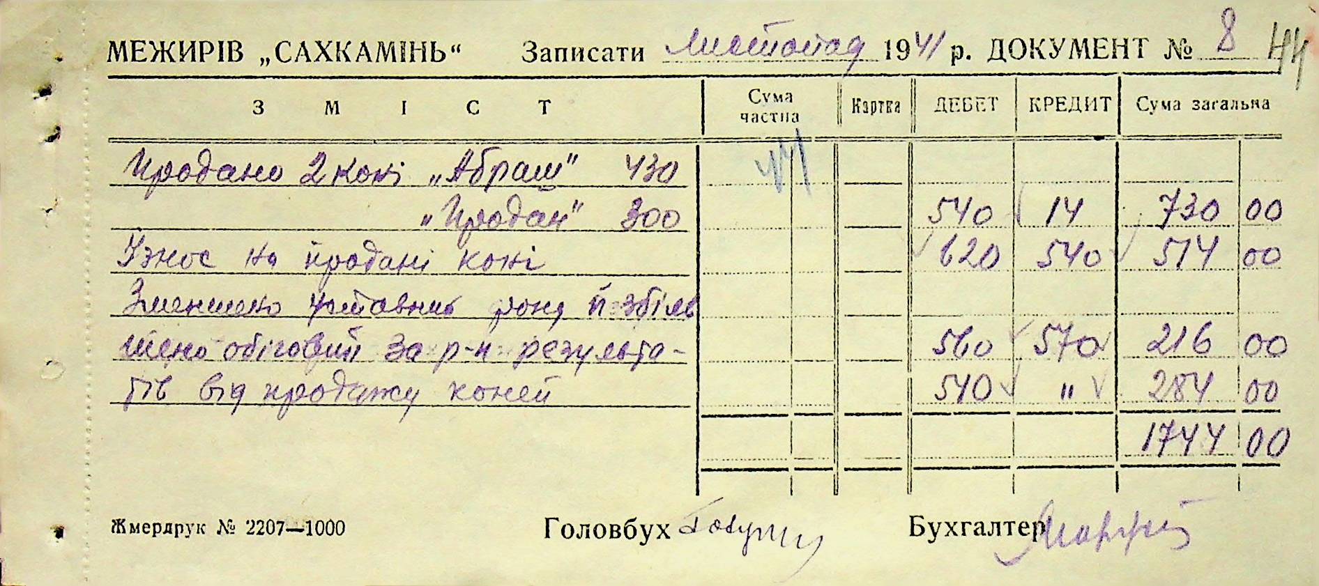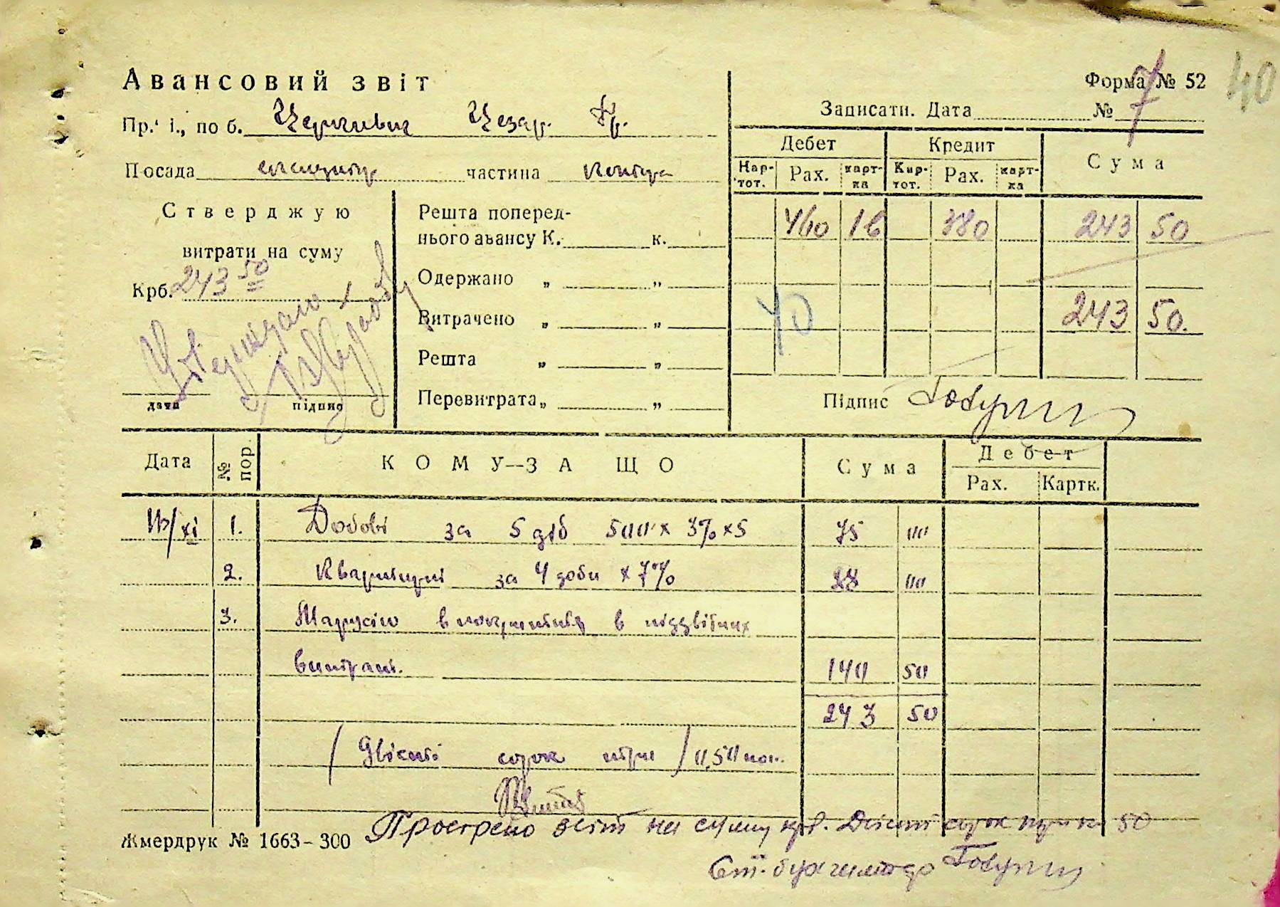 • • • • Справа № 6 “Прибутково-витратні ордери. Рапорти про виконані роботи. Списки робітників і службовців Межирівських вапняних розробок”