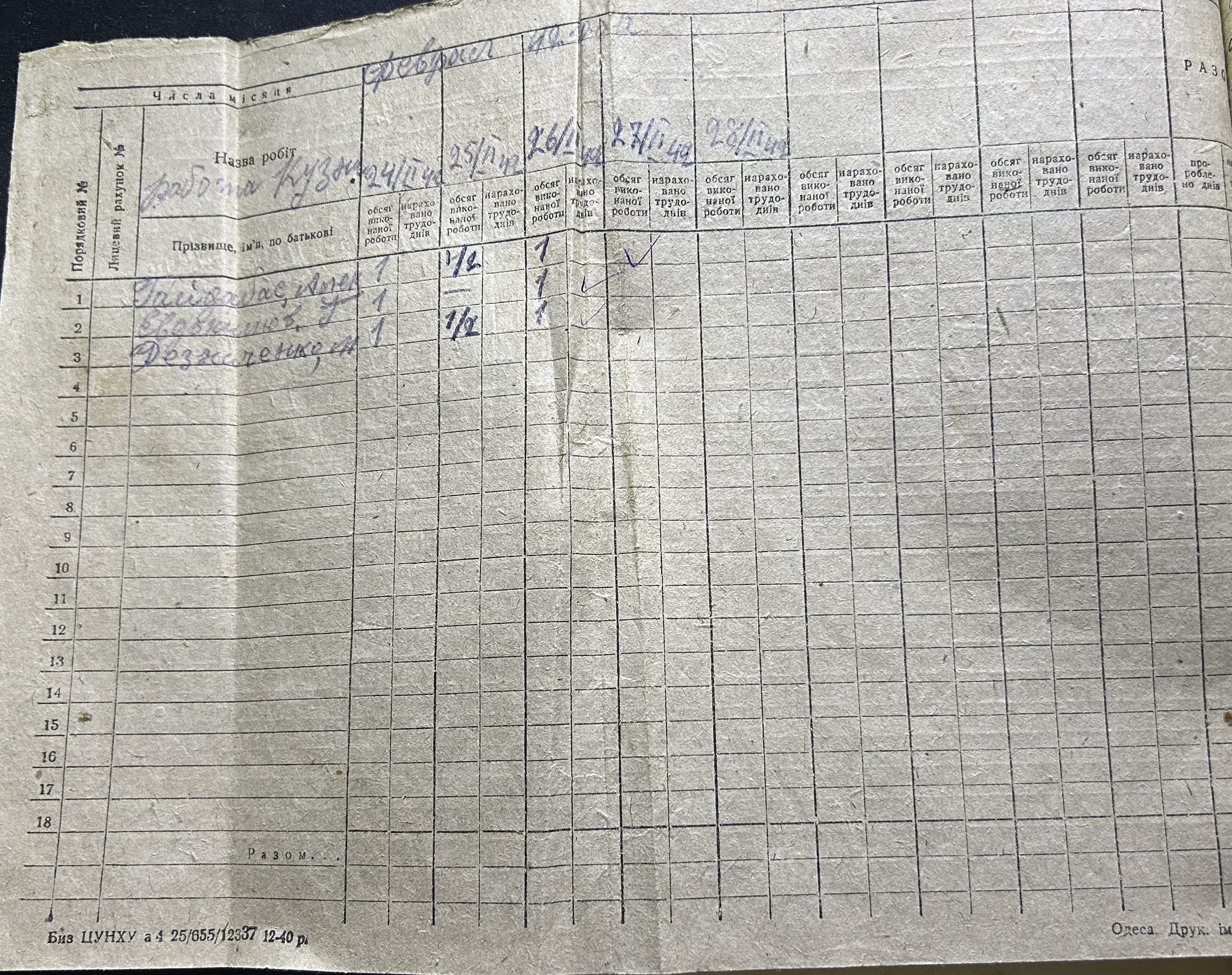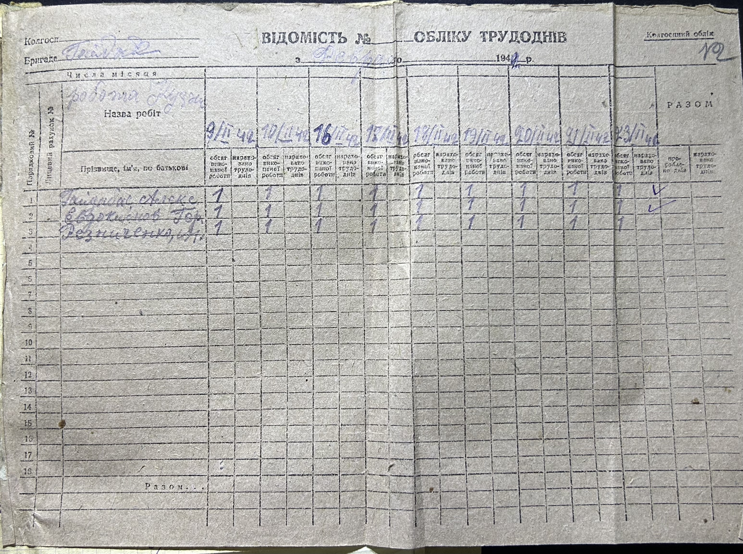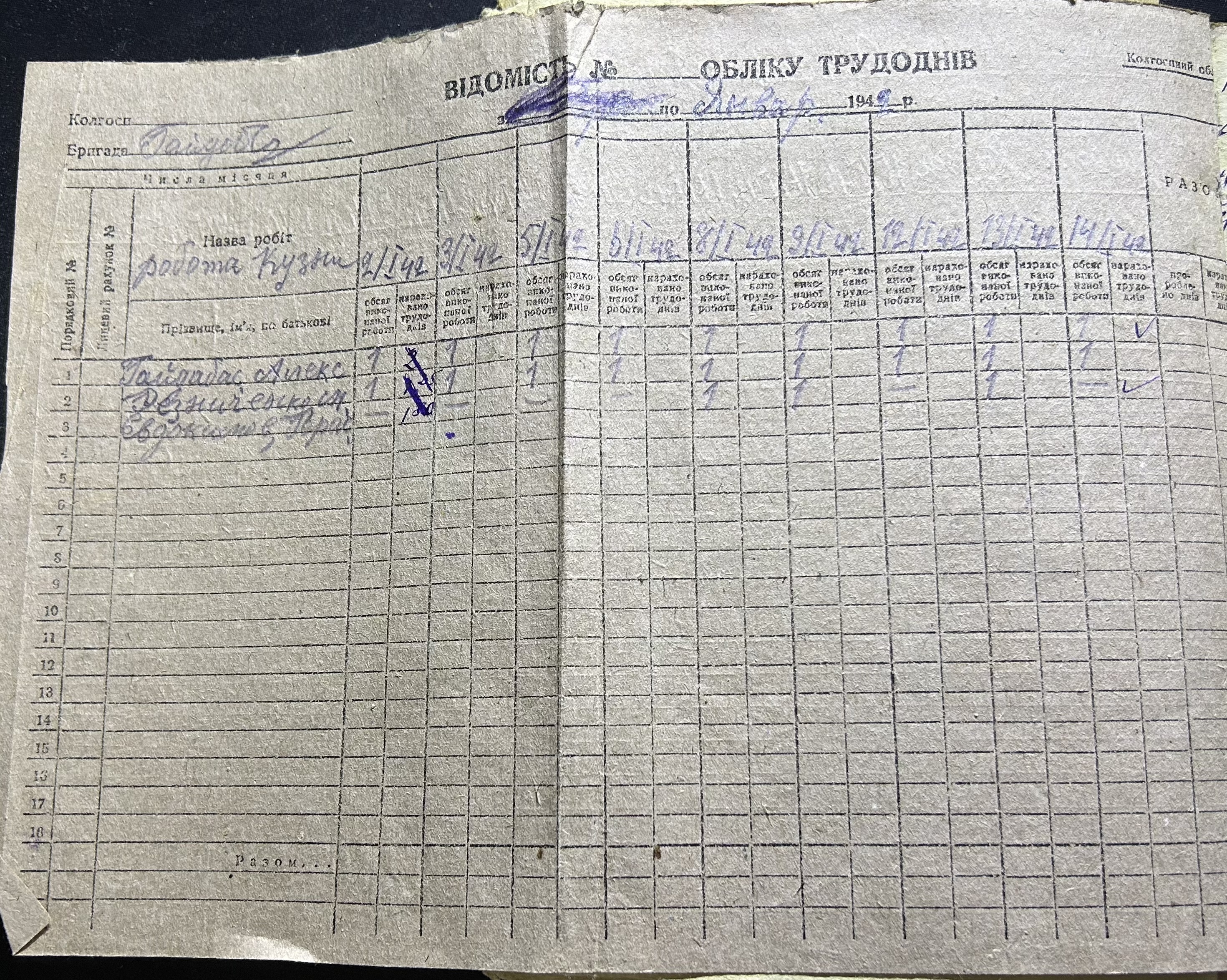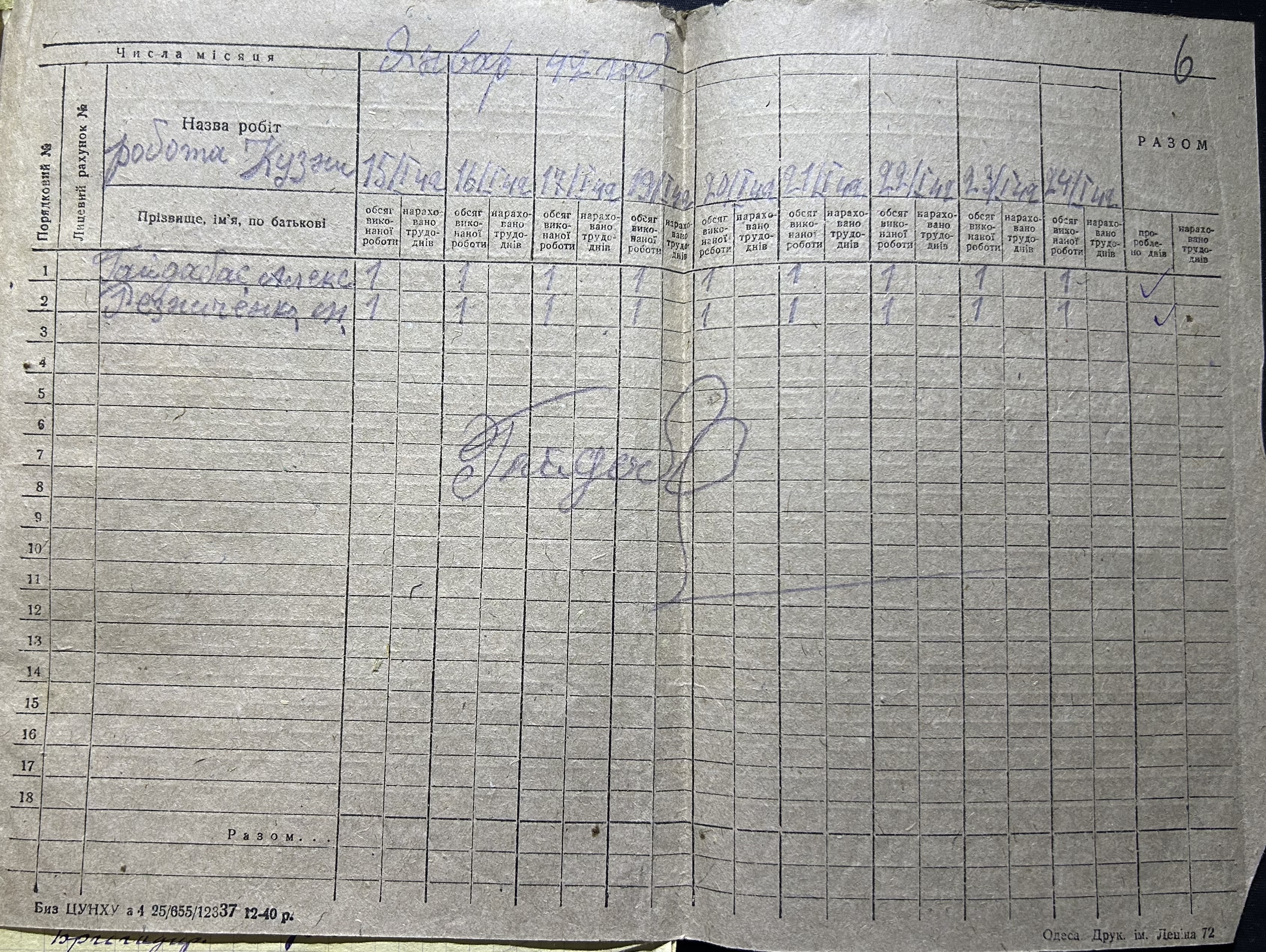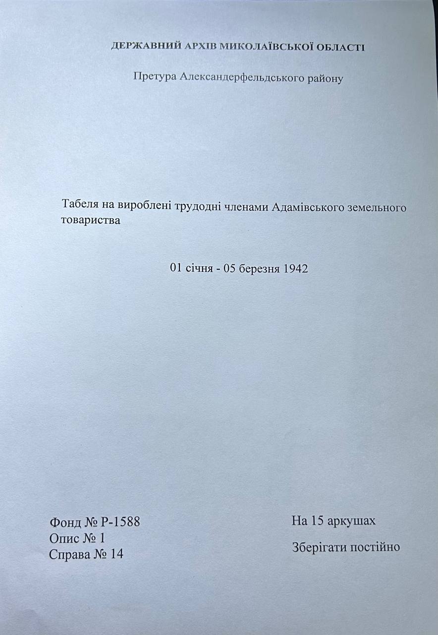 • • • • Справа № 14 “Табелі на вироблені трудодні членами Адамівського земельного товариства”