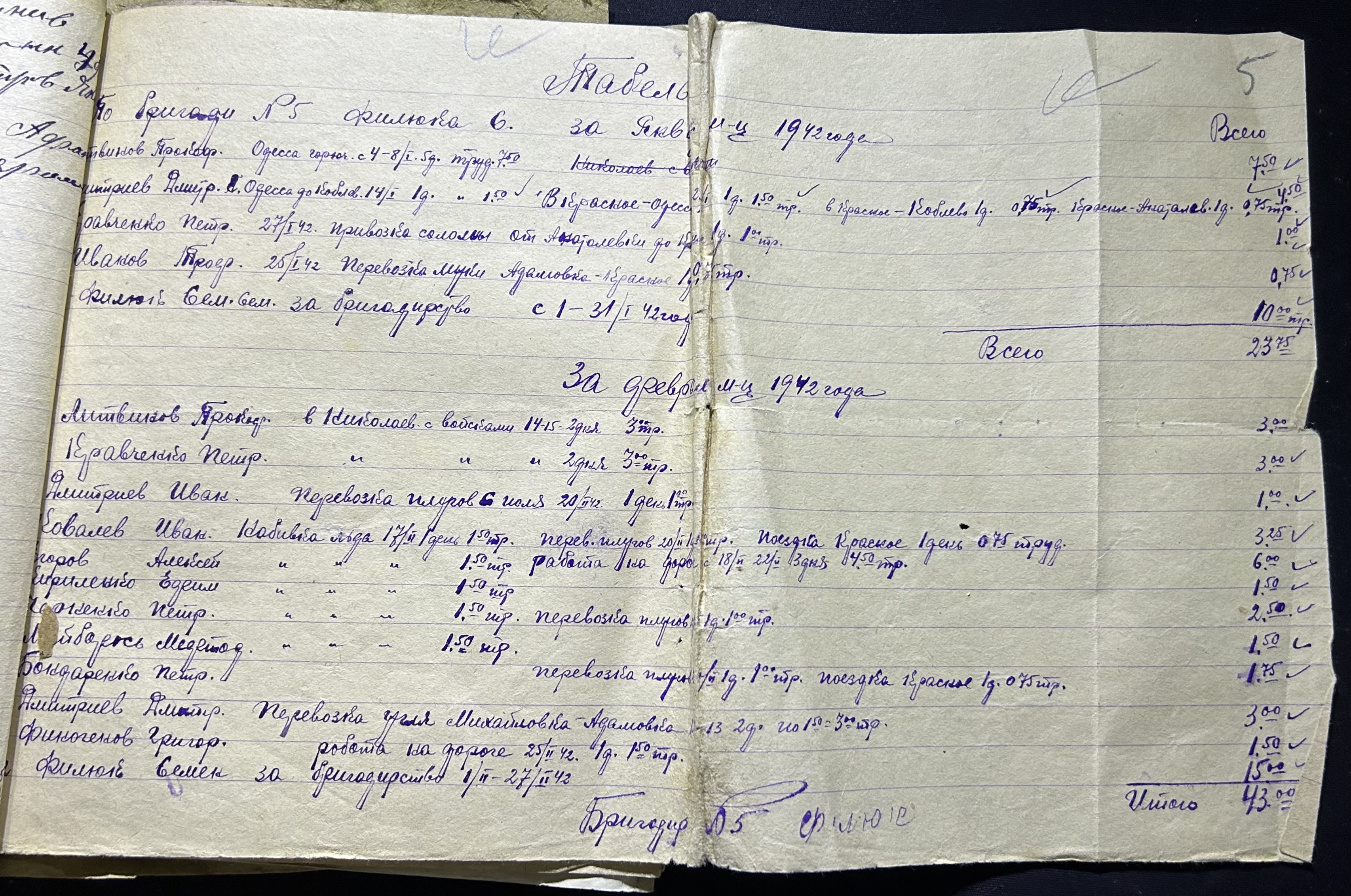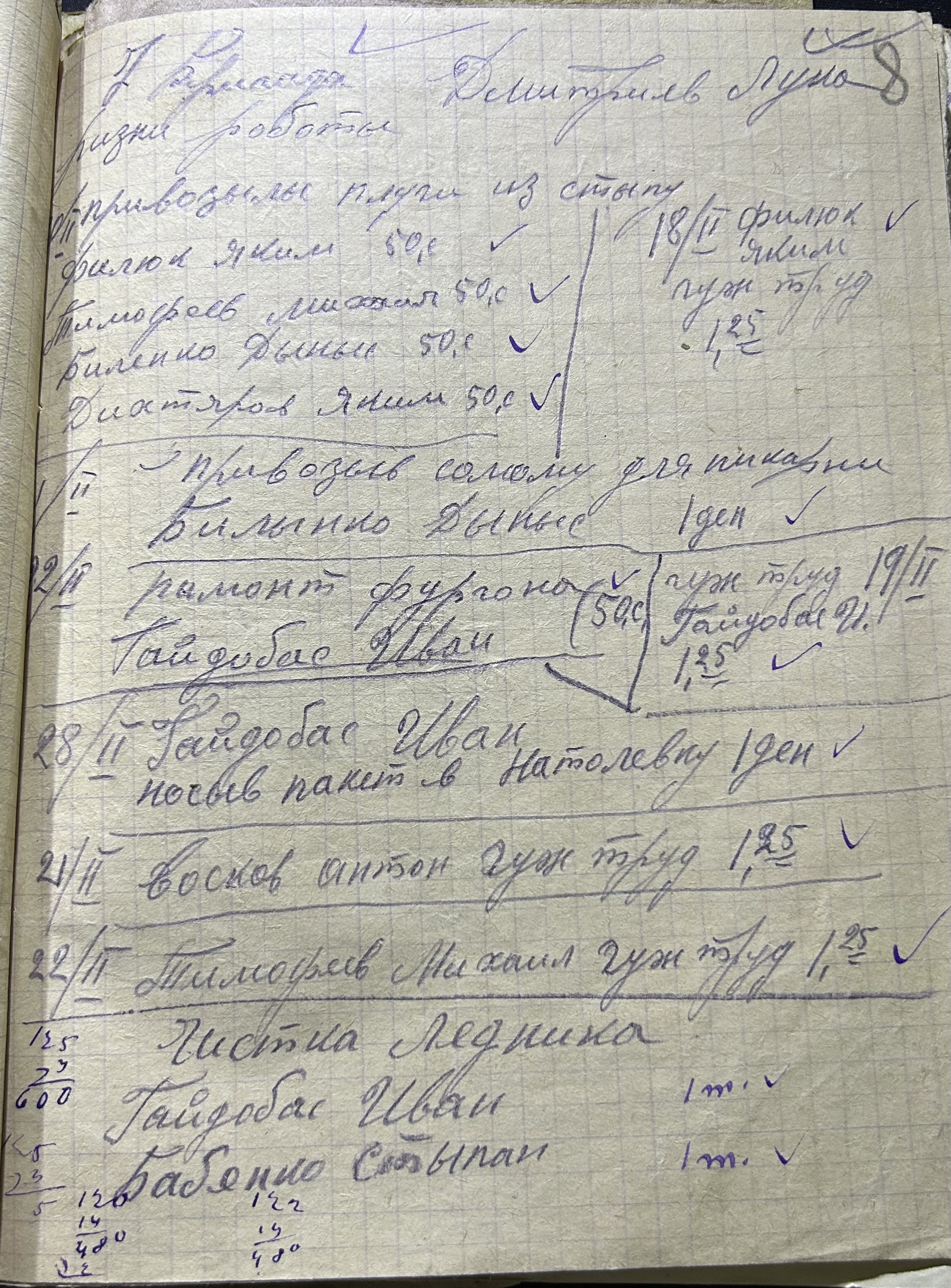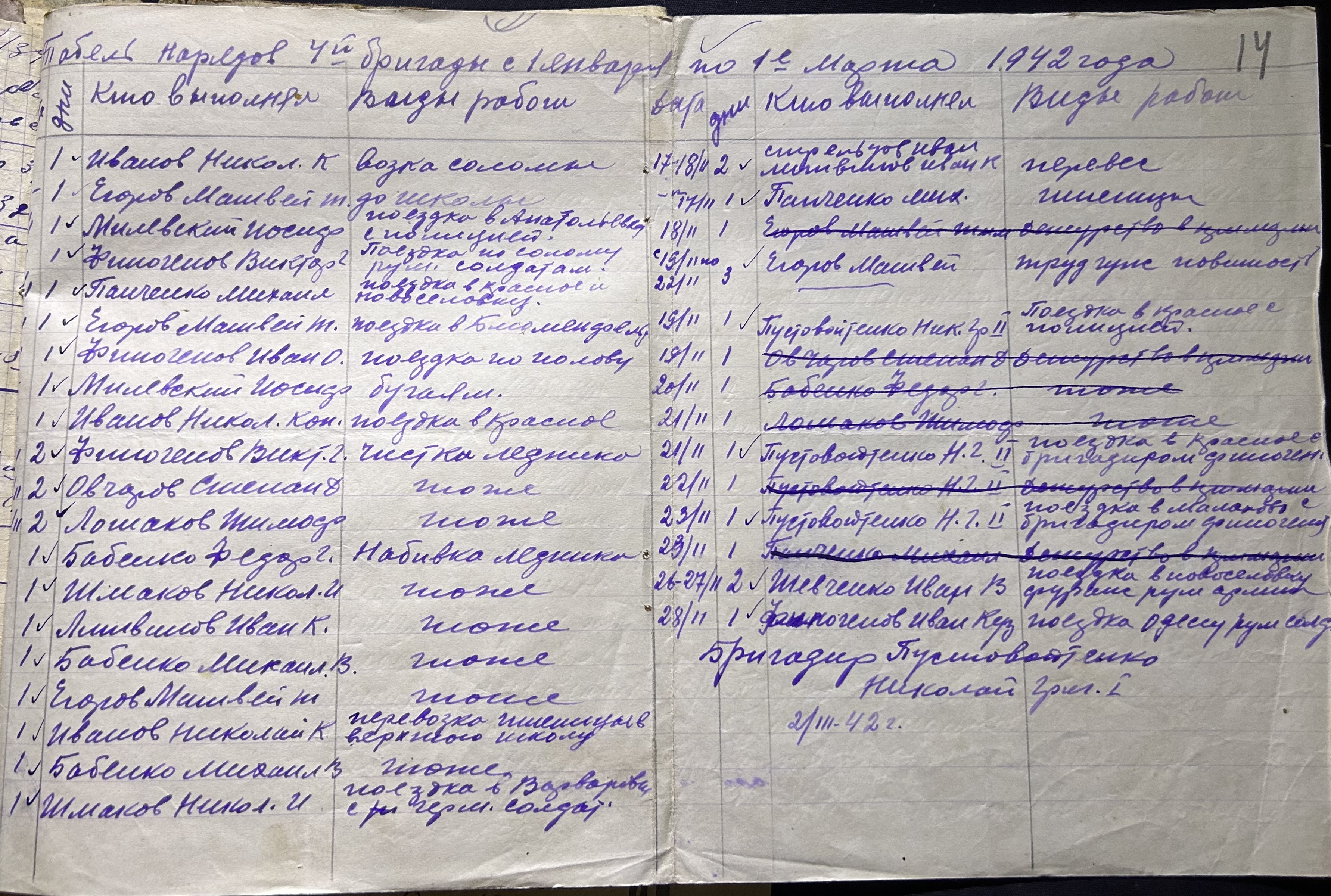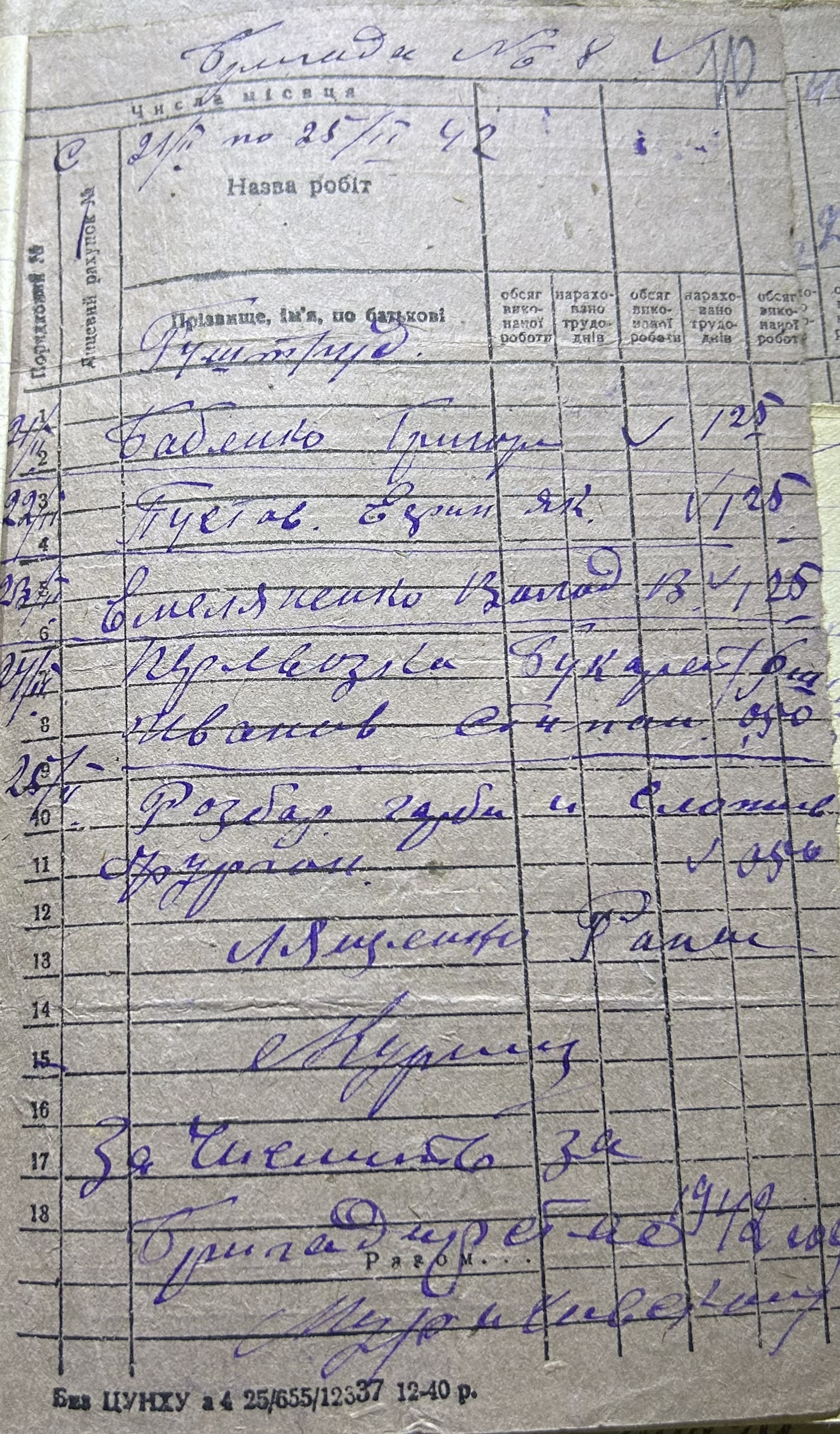 • • • • Справа № 14 “Табелі на вироблені трудодні членами Адамівського земельного товариства”