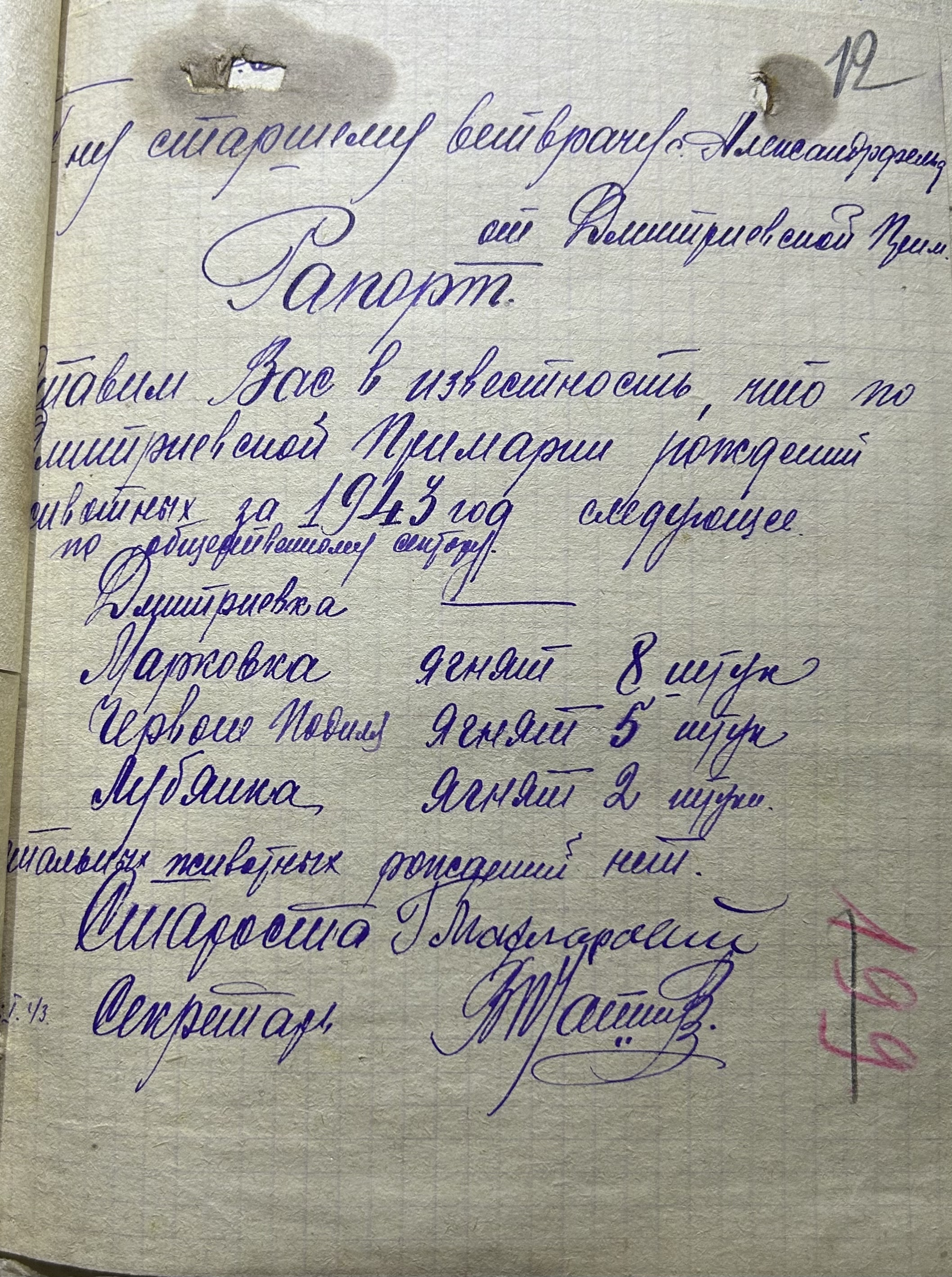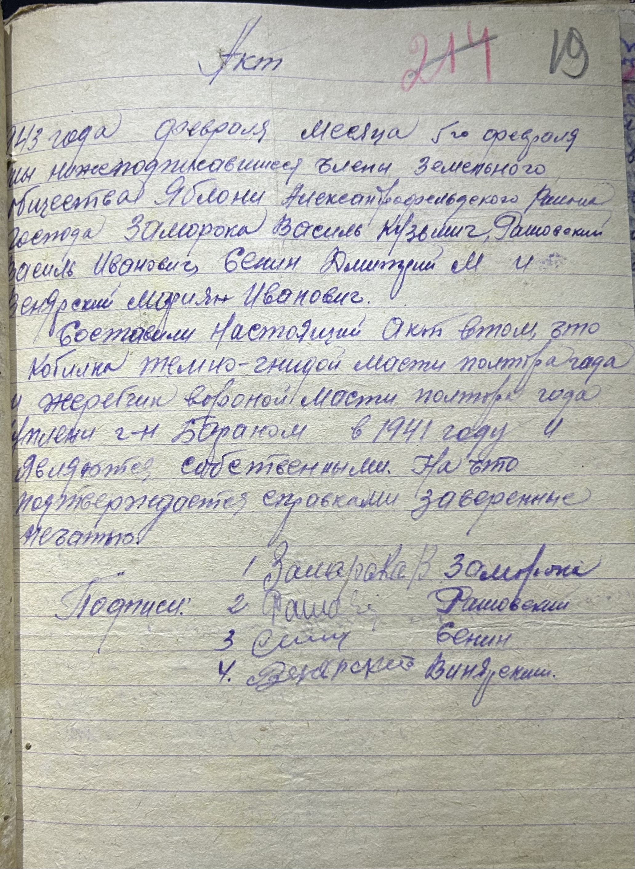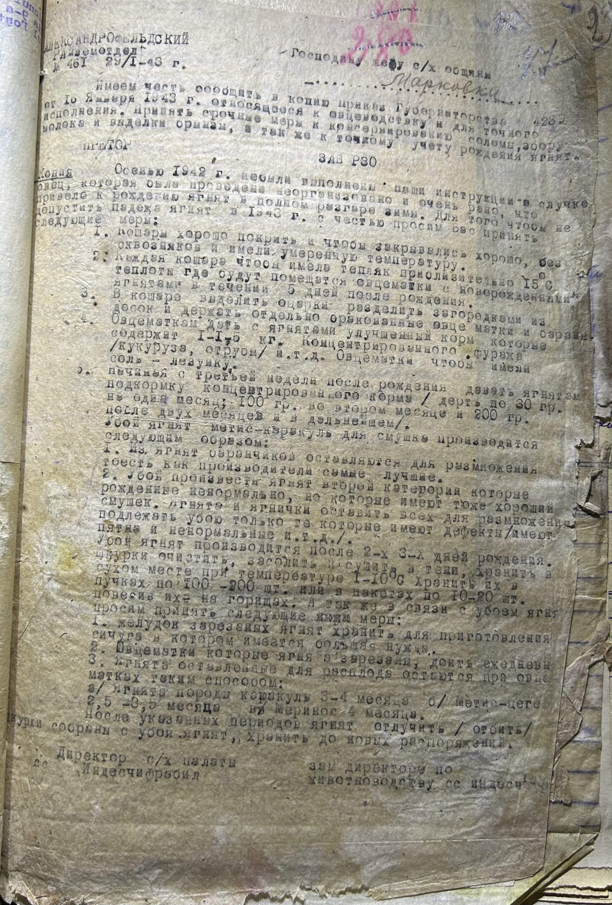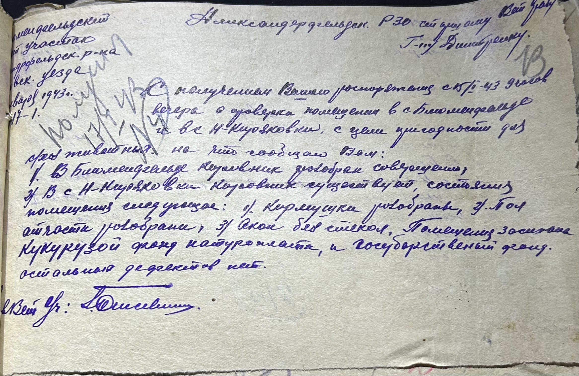 • • • • Справа № 19 “Накази претури про реквізицію худоби. Акти та відомості про наявність і здачу реквізованої худоби. Відомості про організацію племінної роботи по Александерфельдському району”