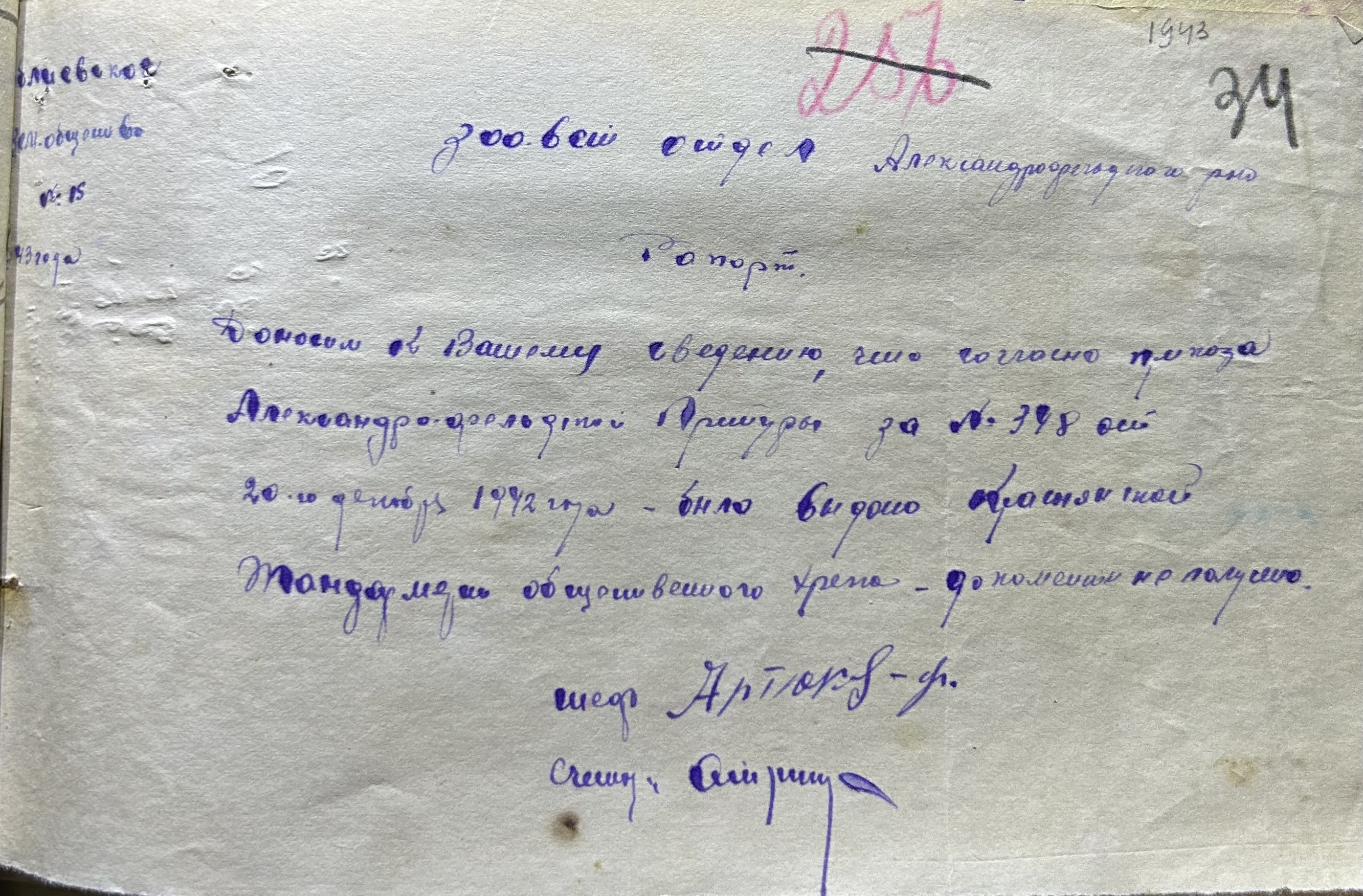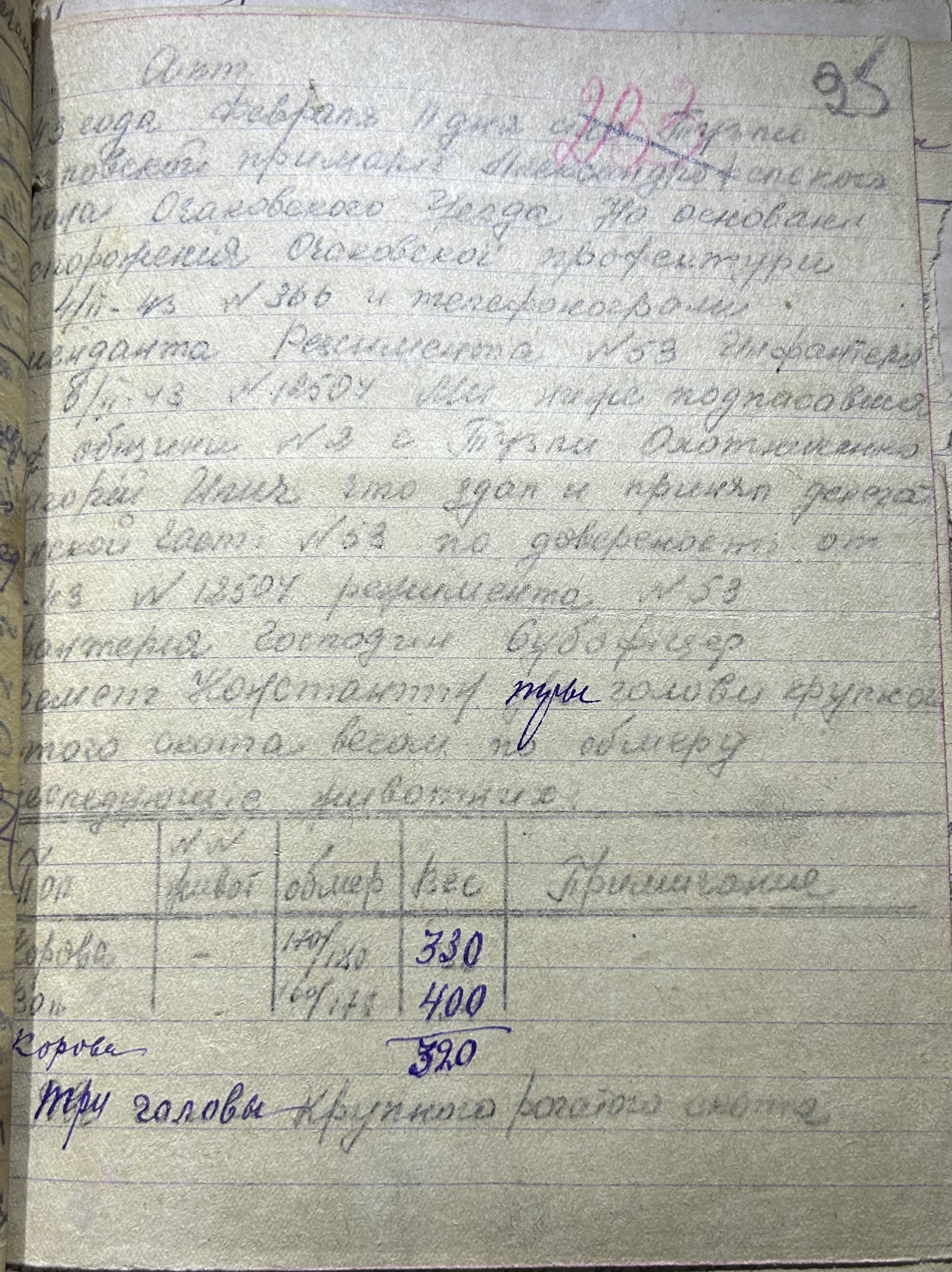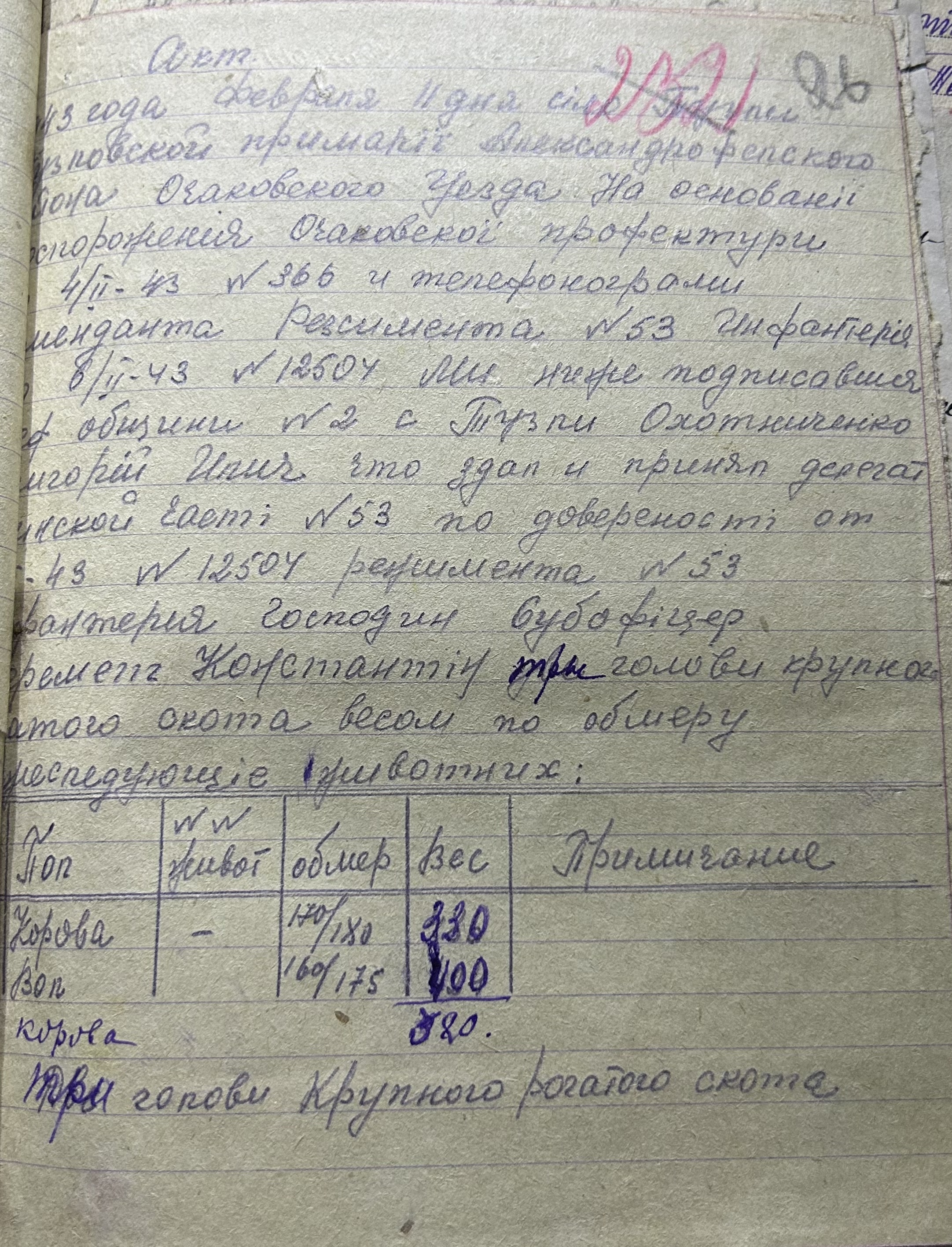 • • • • Справа № 19 “Накази претури про реквізицію худоби. Акти та відомості про наявність і здачу реквізованої худоби. Відомості про організацію племінної роботи по Александерфельдському району”