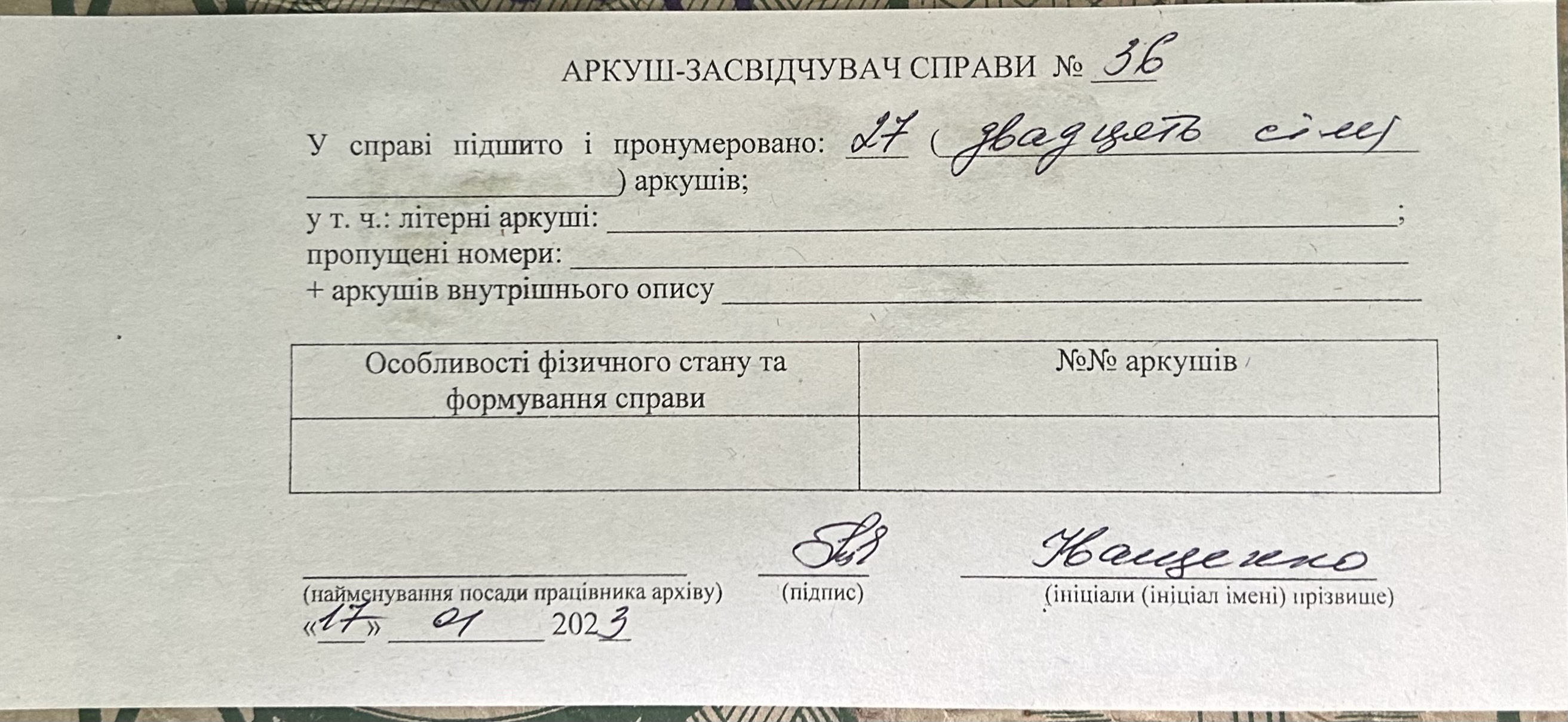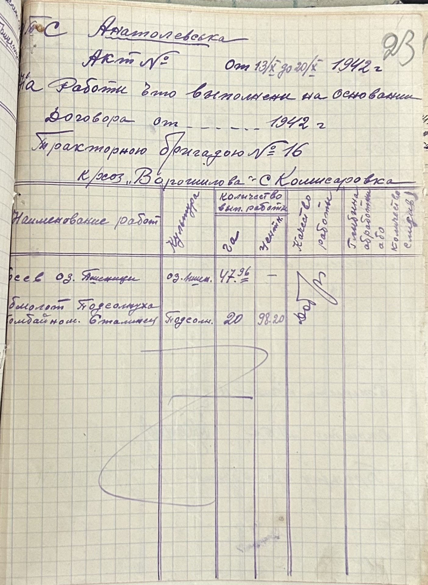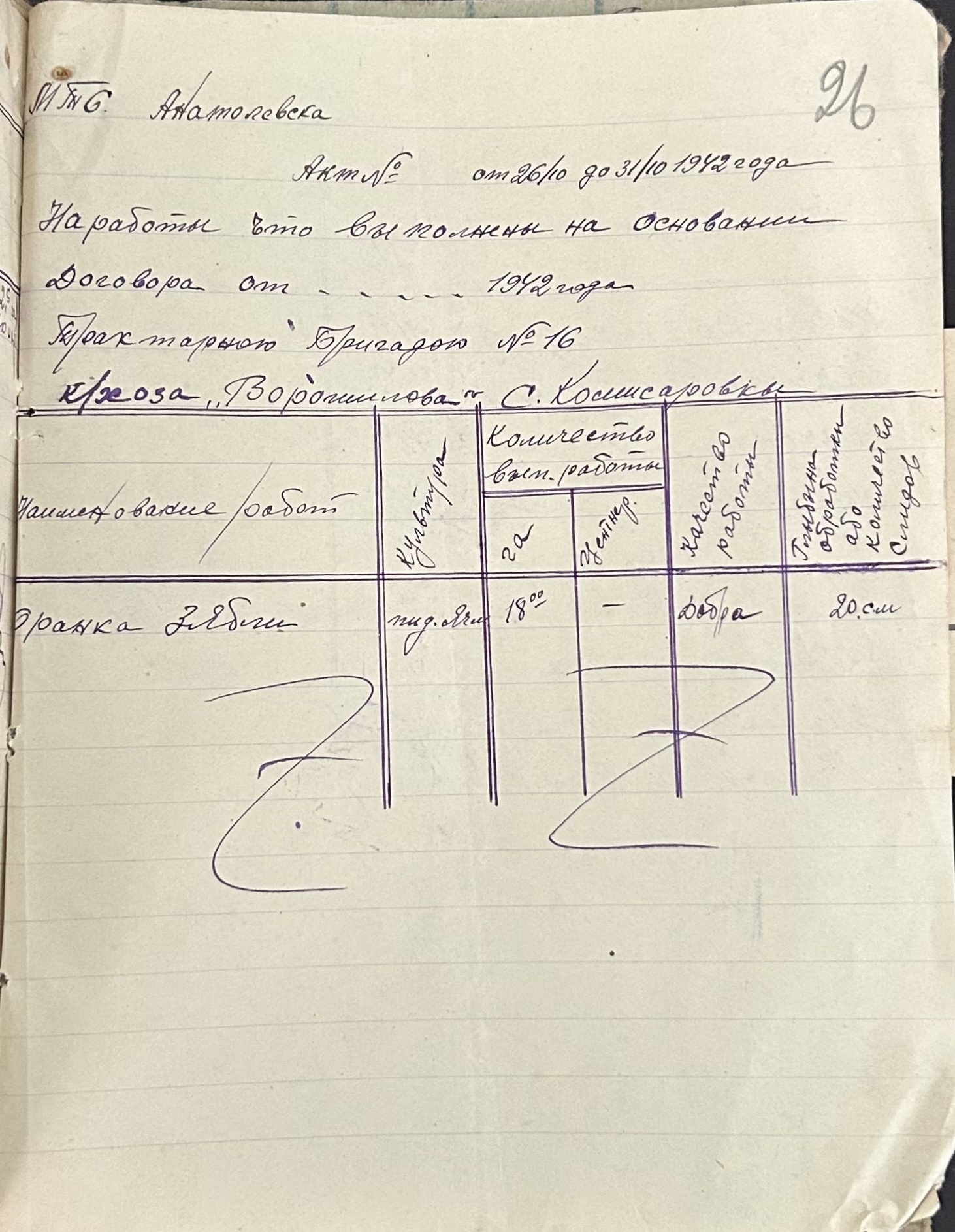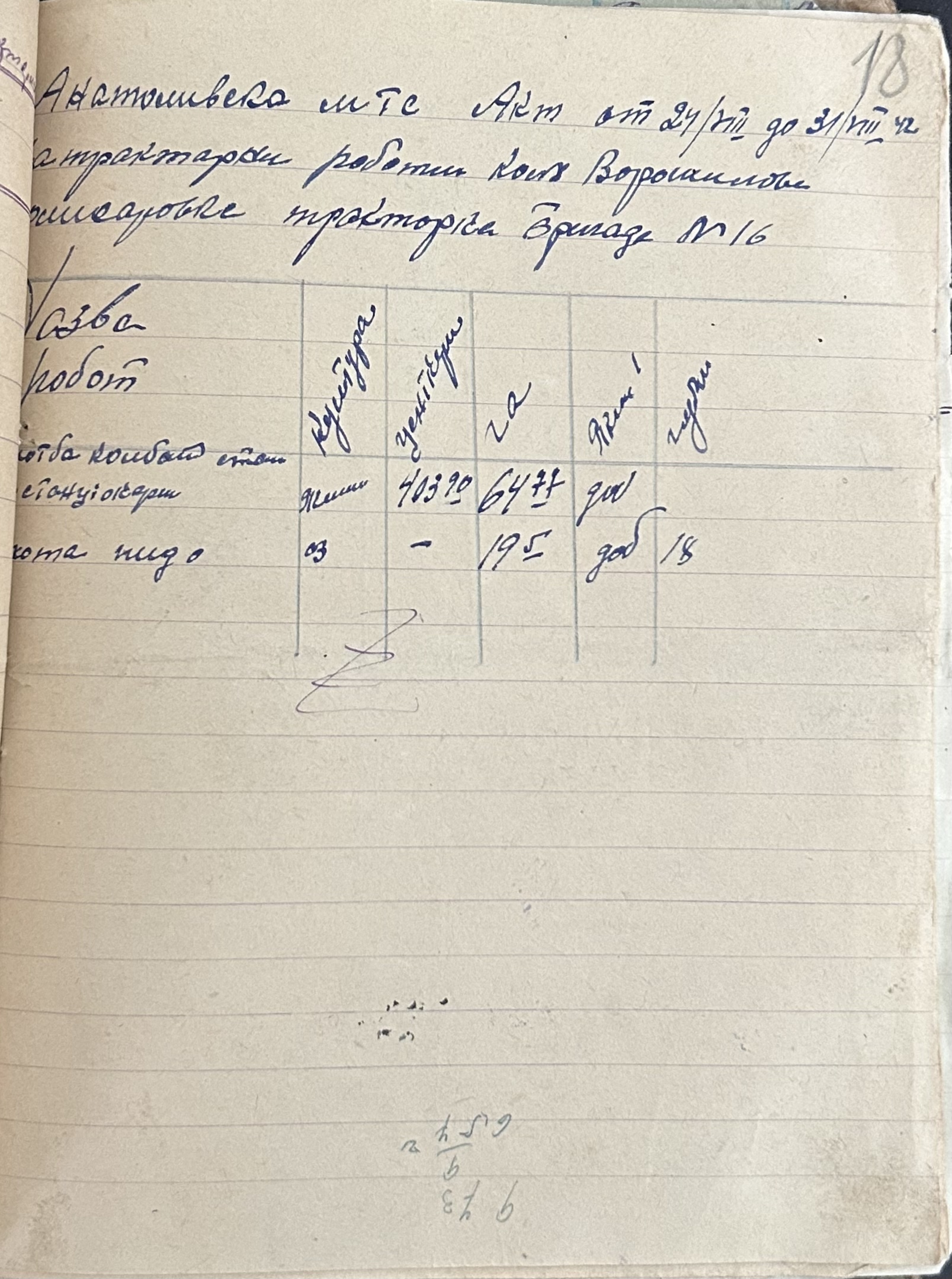 • • • • Справа № 36 “Акти оранки землі тракторною бригадою земельного товариства № 3 с. Комісарівка”