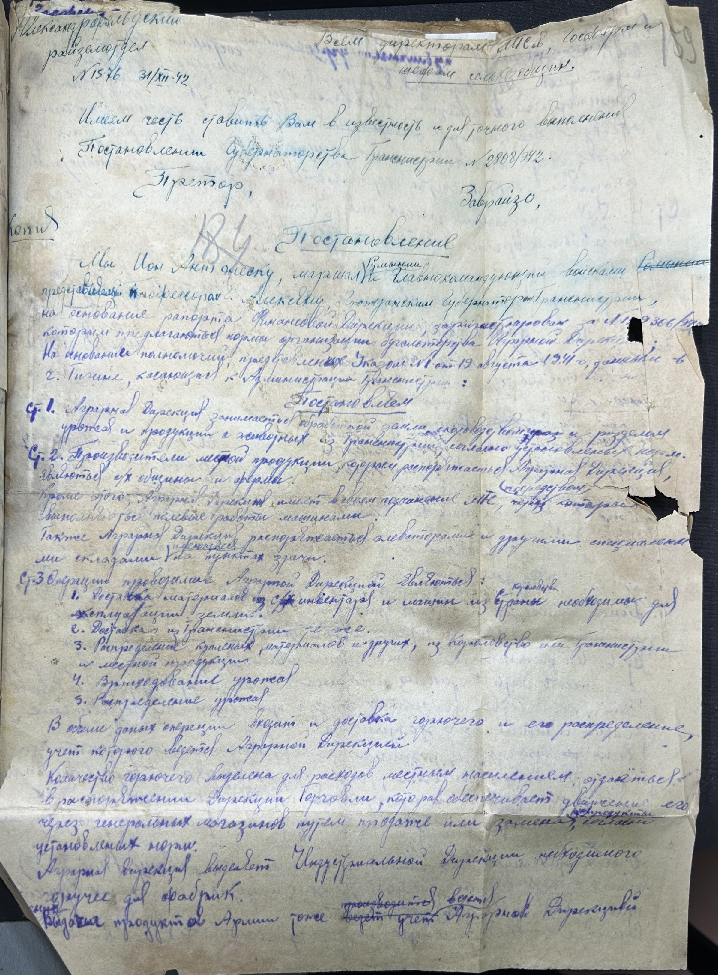• • • • Справа № 42 “Наказ по примарії про відправку реквізованої рогатої худоби, овець та свиней, монополізацію торгівлі, про збирання врожаю. Список працівників Краснянської МТС. Акти інвентаризації майна Новоселівського та Андрієво-Зоринського елеваторів та нафтоскладів”