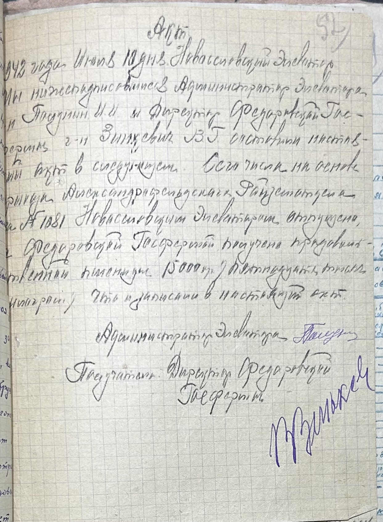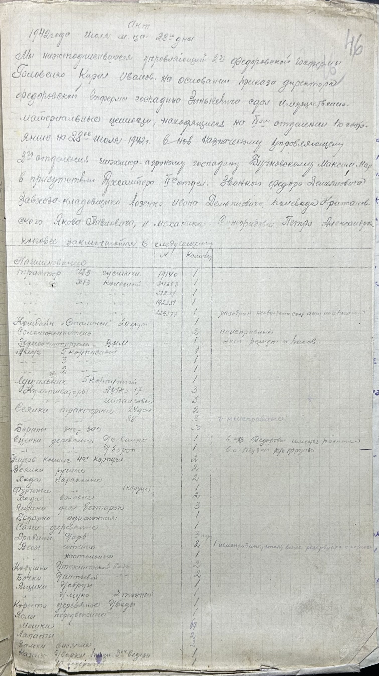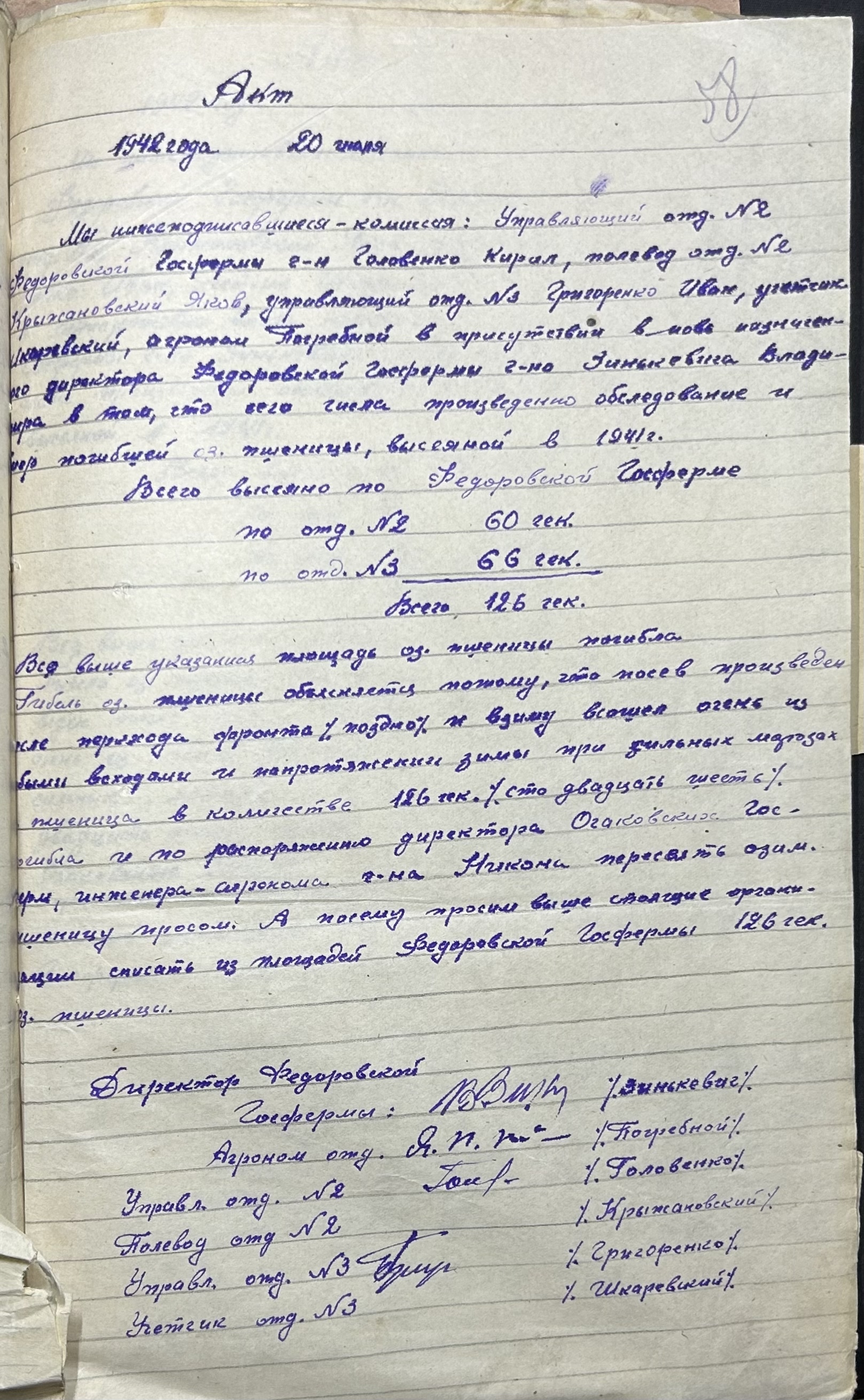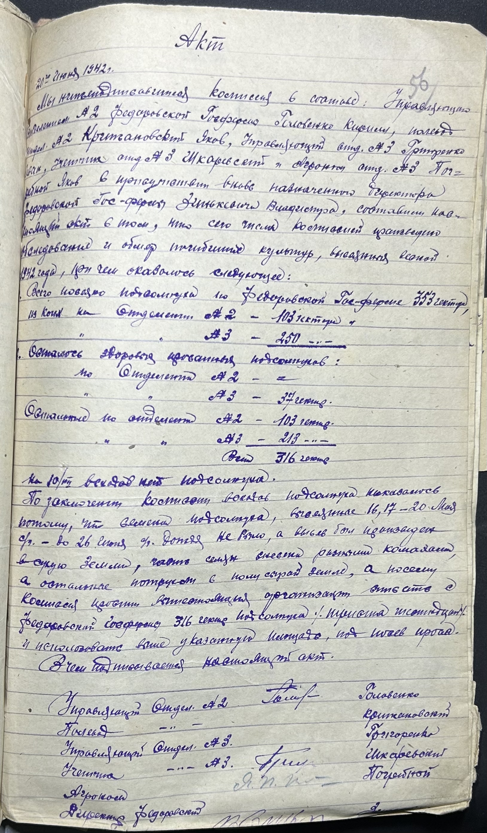 • • • • Справа № 52 “Акти про здачу майна та матеріальних цінностей, про сходження насіння, загибель посіву та його пересівання по Федорівській державній фермі”