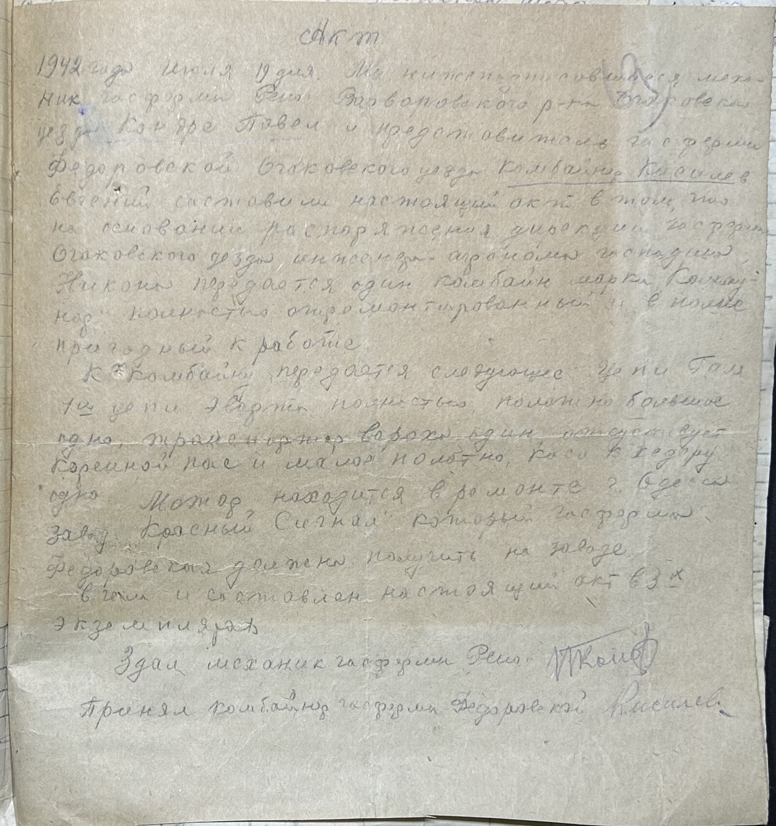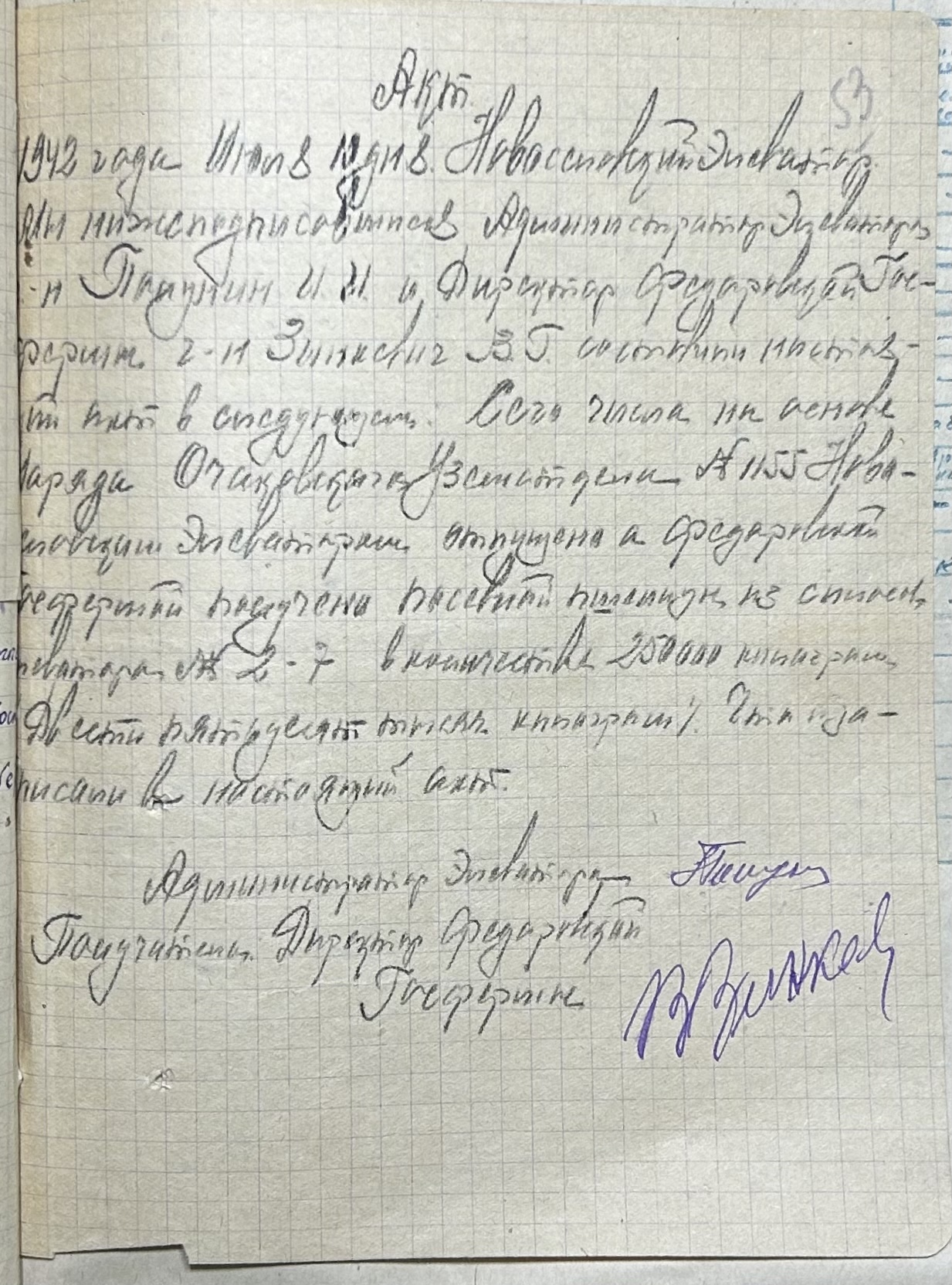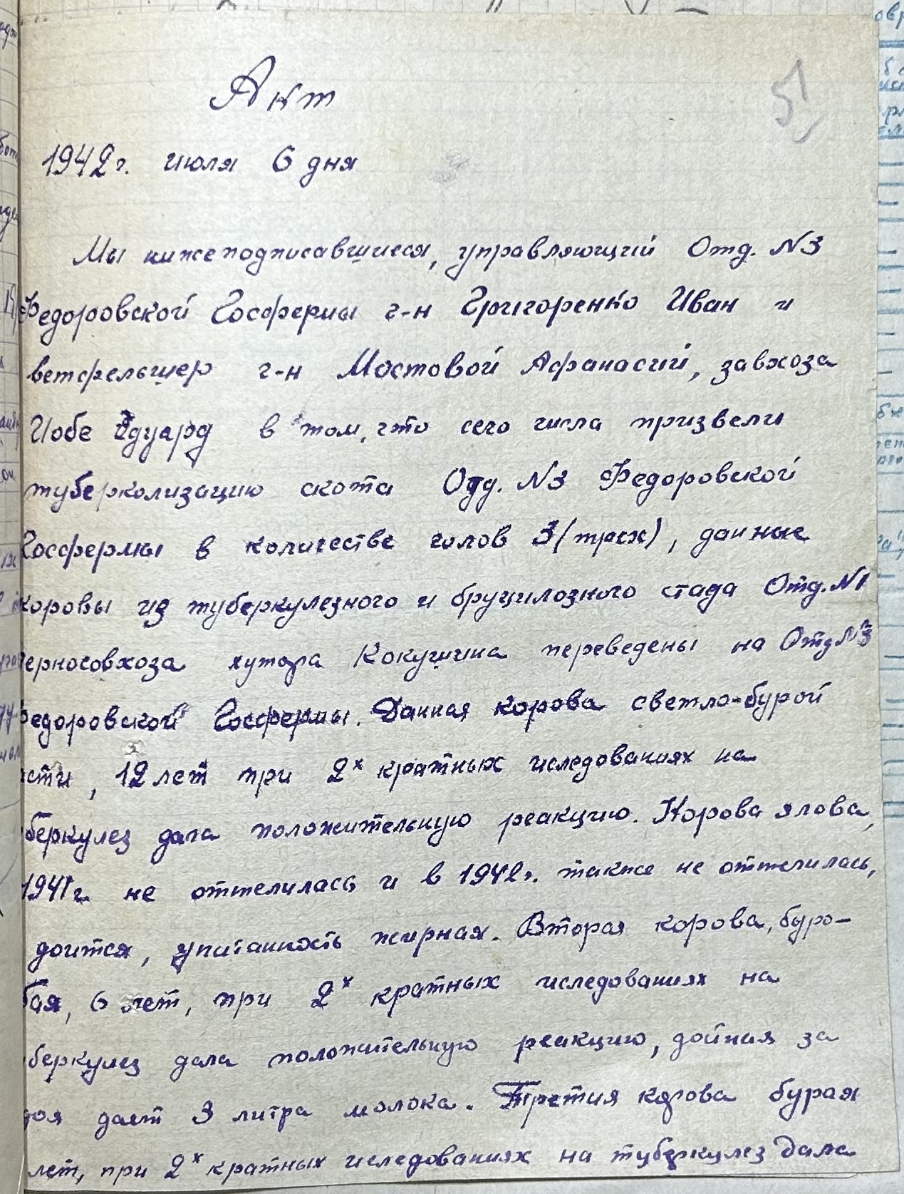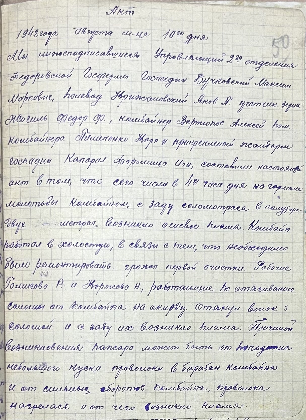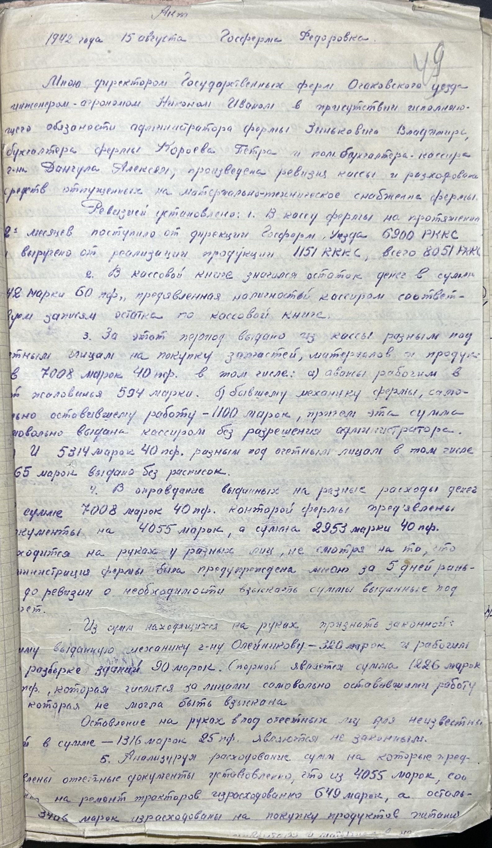• • • • Справа № 52 “Акти про здачу майна та матеріальних цінностей, про сходження насіння, загибель посіву та його пересівання по Федорівській державній фермі”
