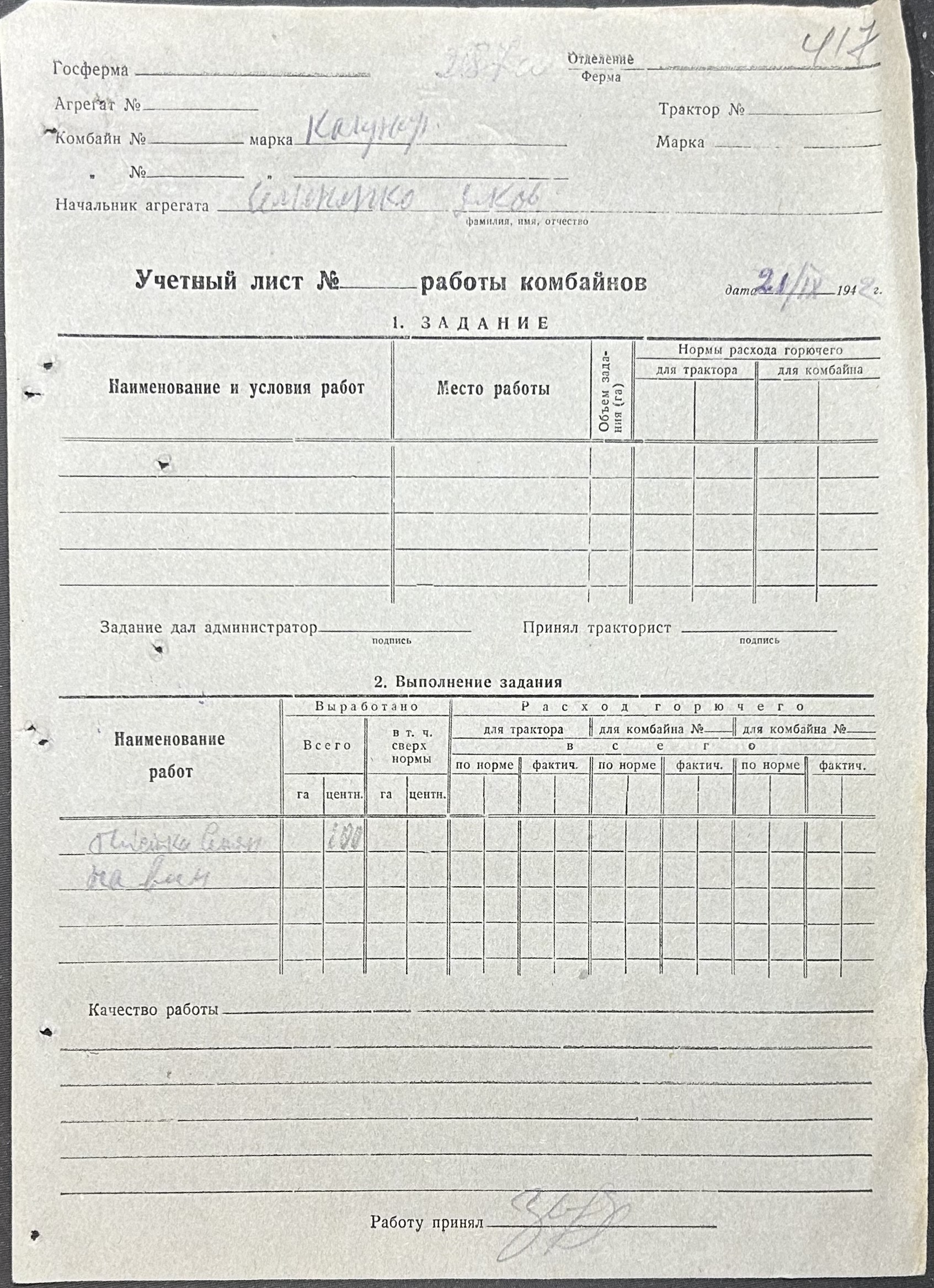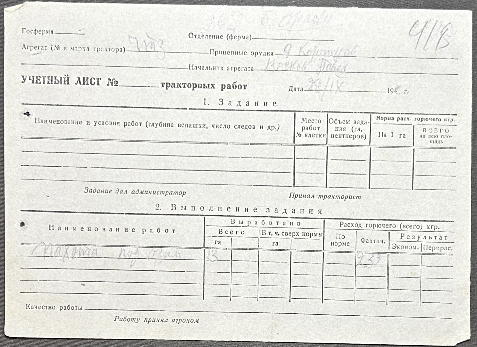 • • • • Справа № 53 “Звіти про рух продуктів, посівних матеріалів, пального. Реєстри та накладні на отримані продукти. Відомості по заробітній платі робітників та службовців Федорівської державної ферми. Табелі та звіти про роботу живої тяглової сили. Том 1”