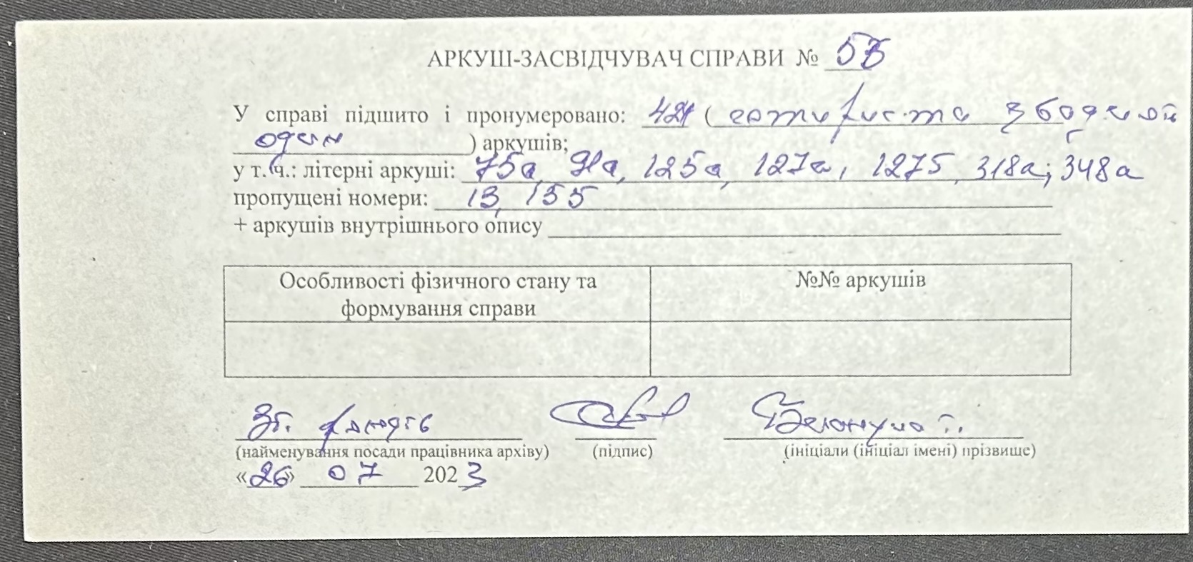 ◦ ◦ ◦ Опис № 1 справ постійного зберігання за 1941–1944 роки
