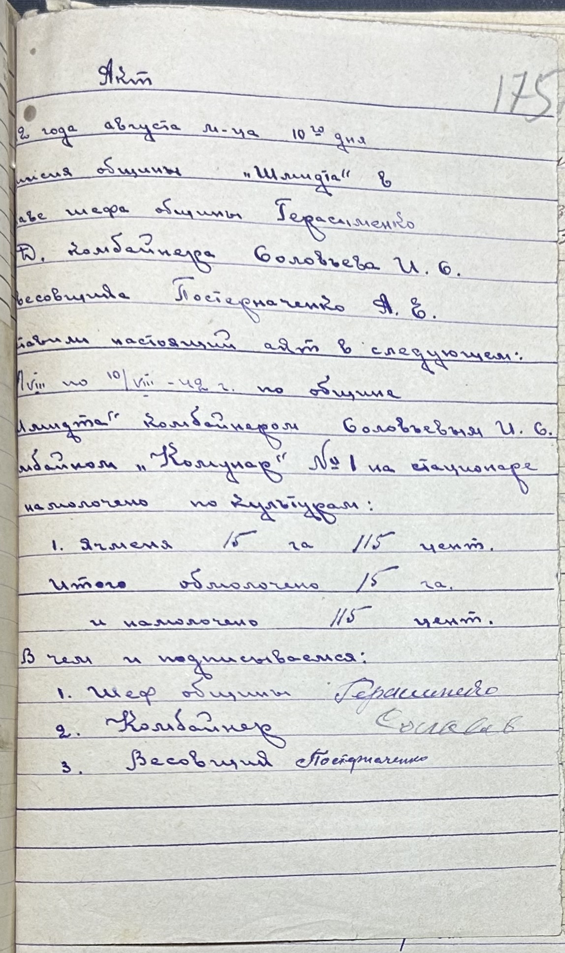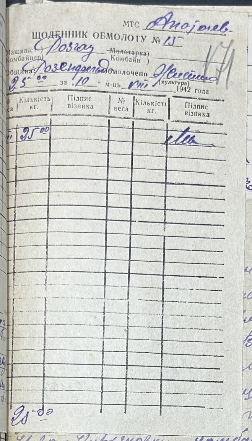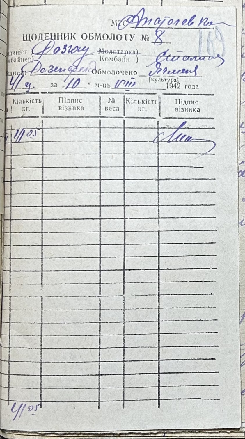 • • • • Справа № 56 “Акти та відомості про обмолот зерна по земельним товариствам Александерфельдського району”