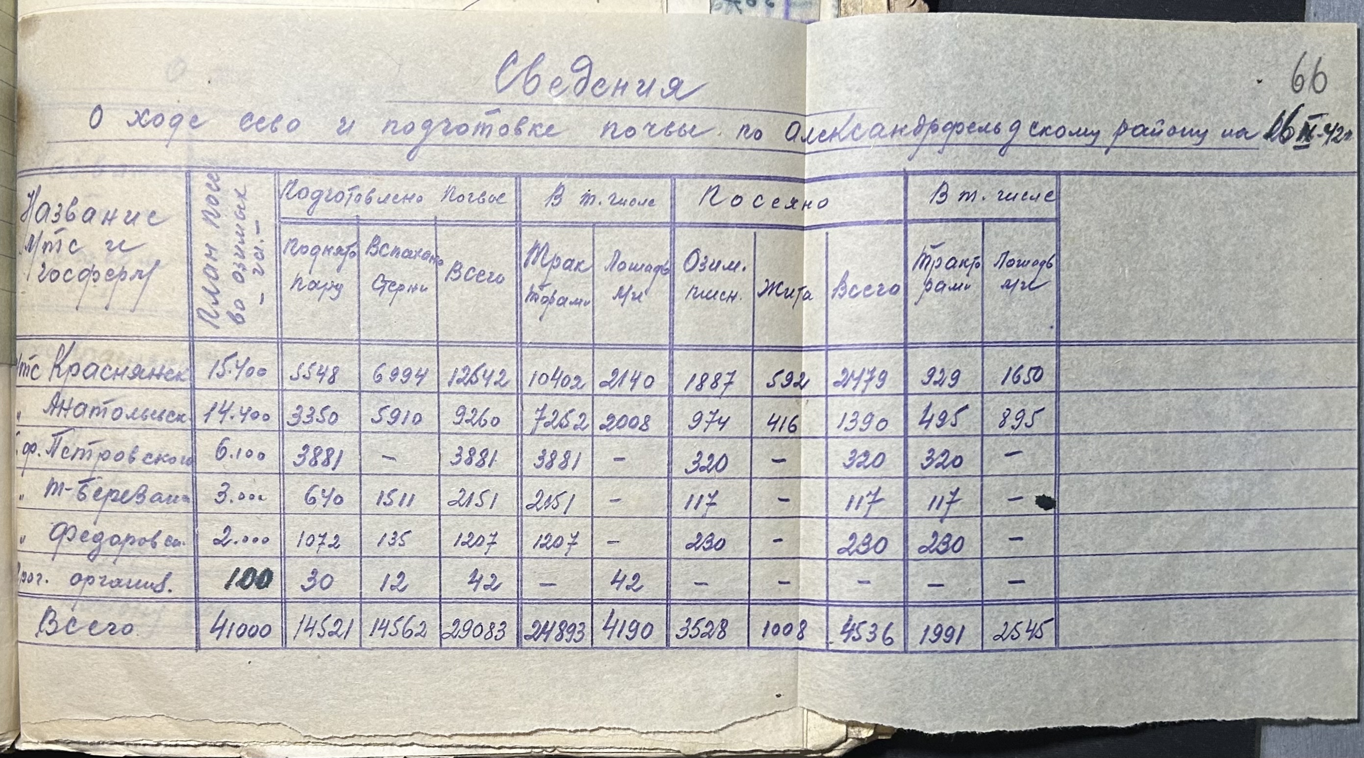 • • • • Справа № 64 “Відомості про хід збирання врожаю та осінню посівну кампанію по Александерфельдському району”