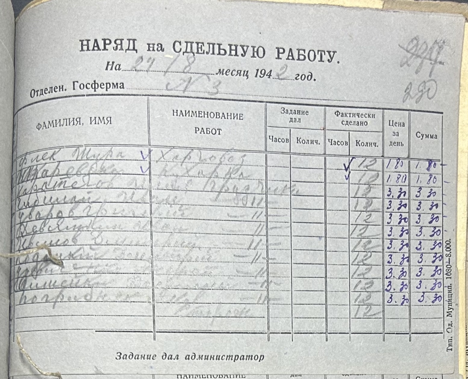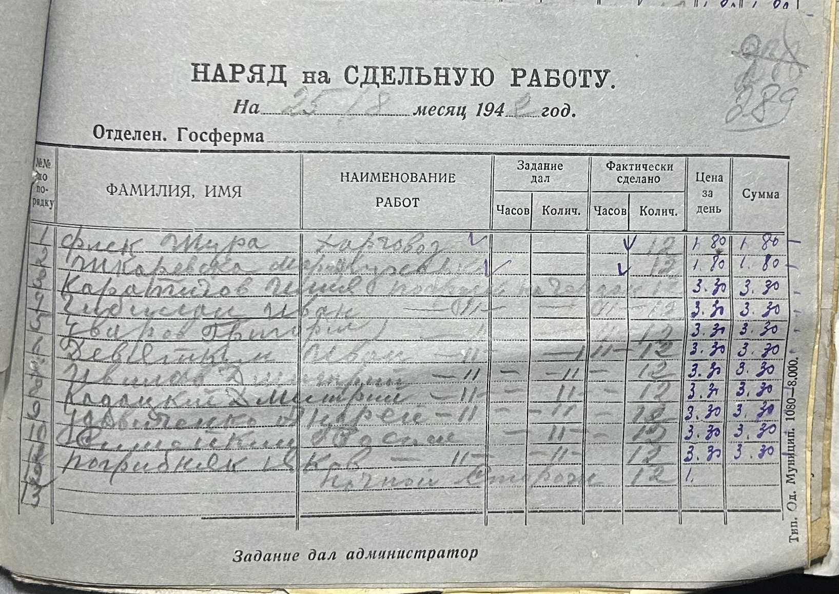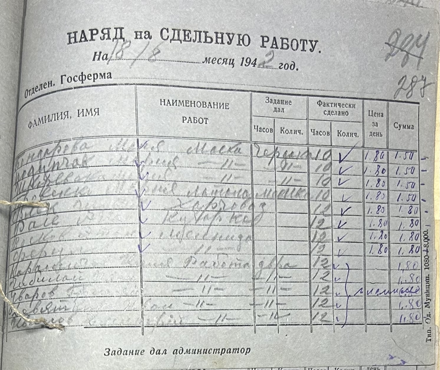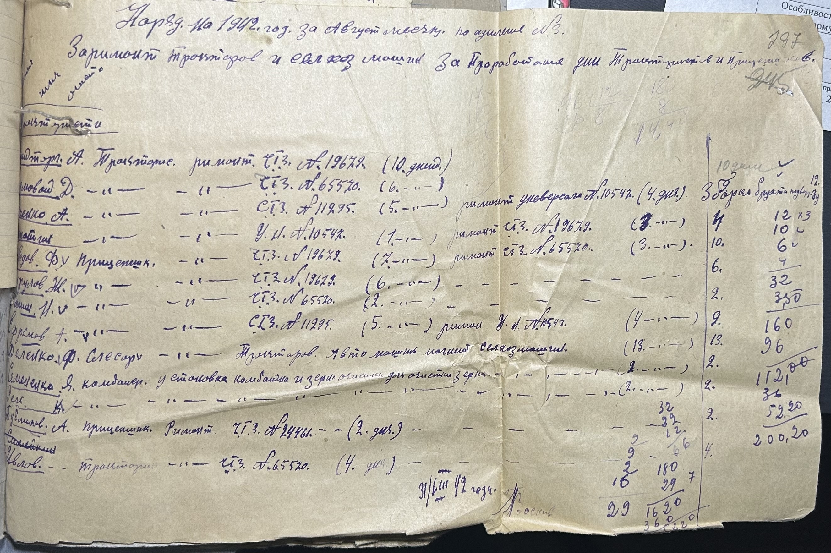 • • • • Справа № 66 “Наряди на сільськогосподарські роботи та ремонт тракторів по Федорівській державній фермі. Відомості про виконання робіт”