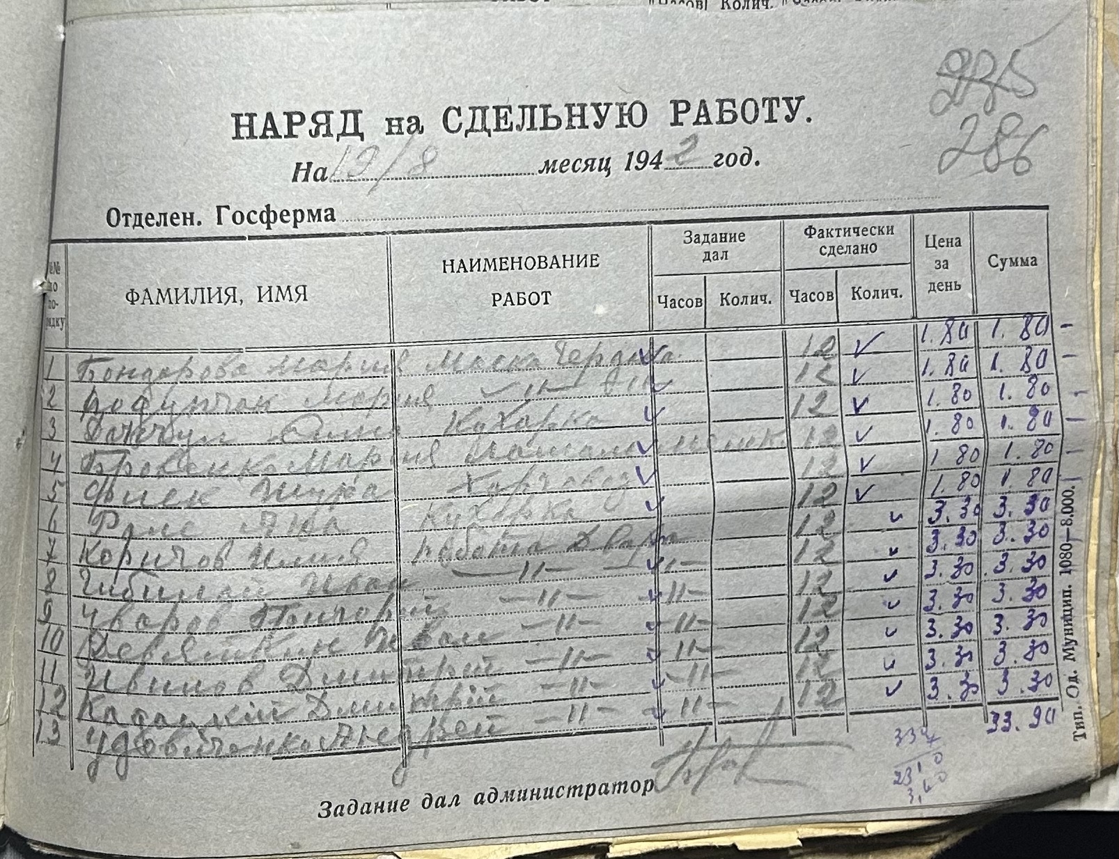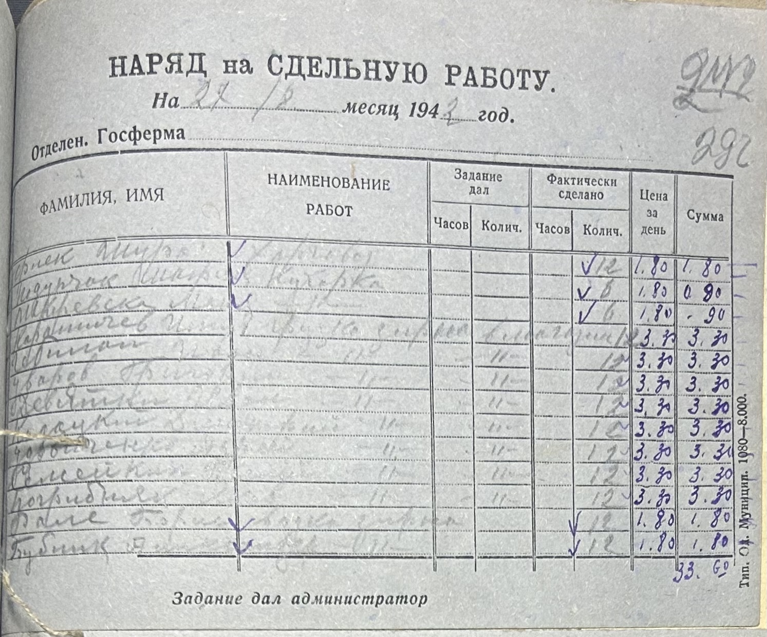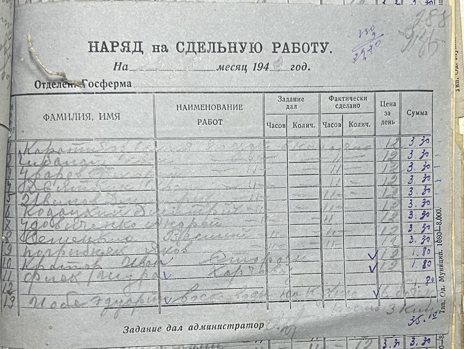 • • • • Справа № 66 “Наряди на сільськогосподарські роботи та ремонт тракторів по Федорівській державній фермі. Відомості про виконання робіт”