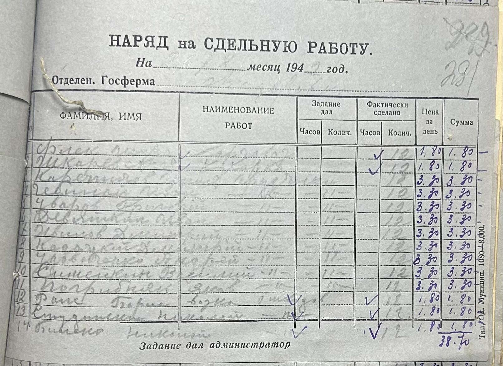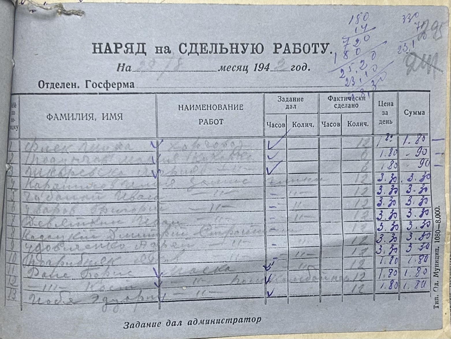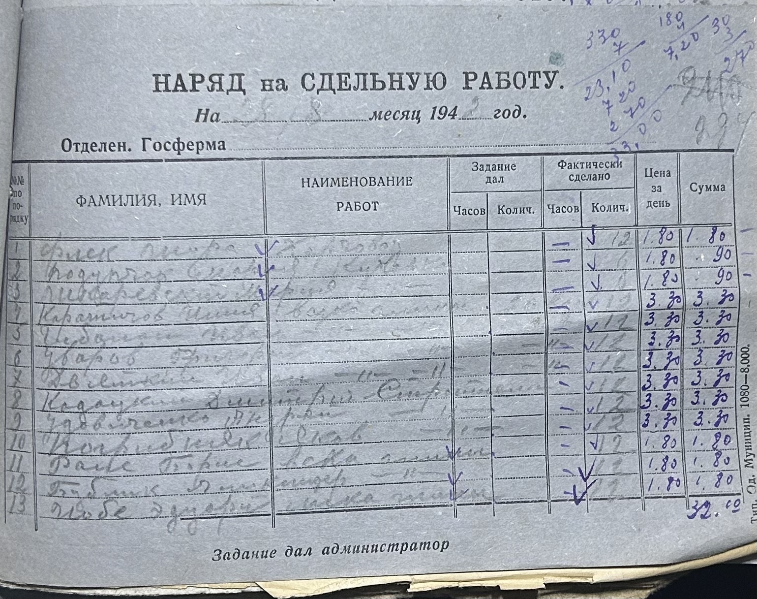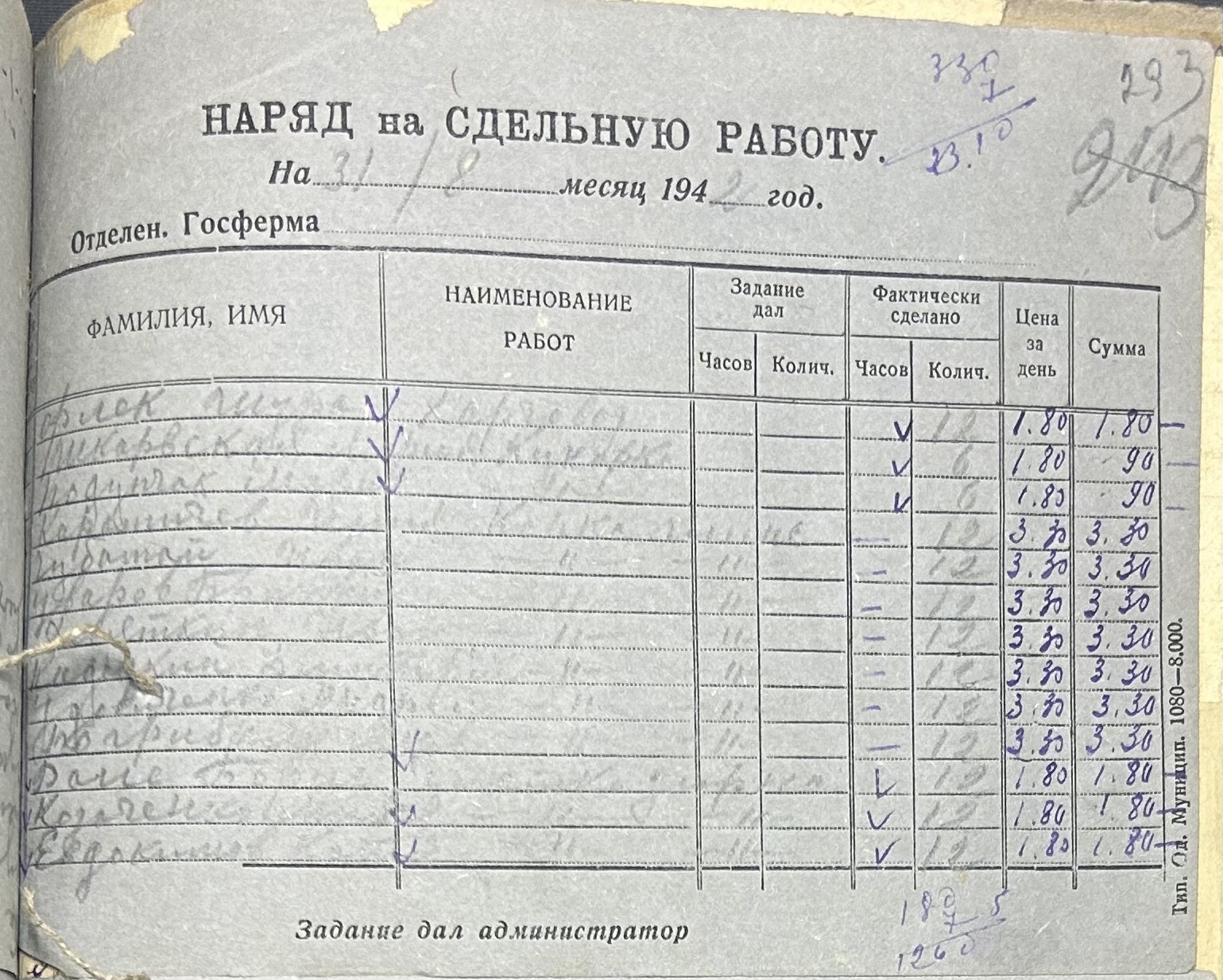 • • • • Справа № 66 “Наряди на сільськогосподарські роботи та ремонт тракторів по Федорівській державній фермі. Відомості про виконання робіт”