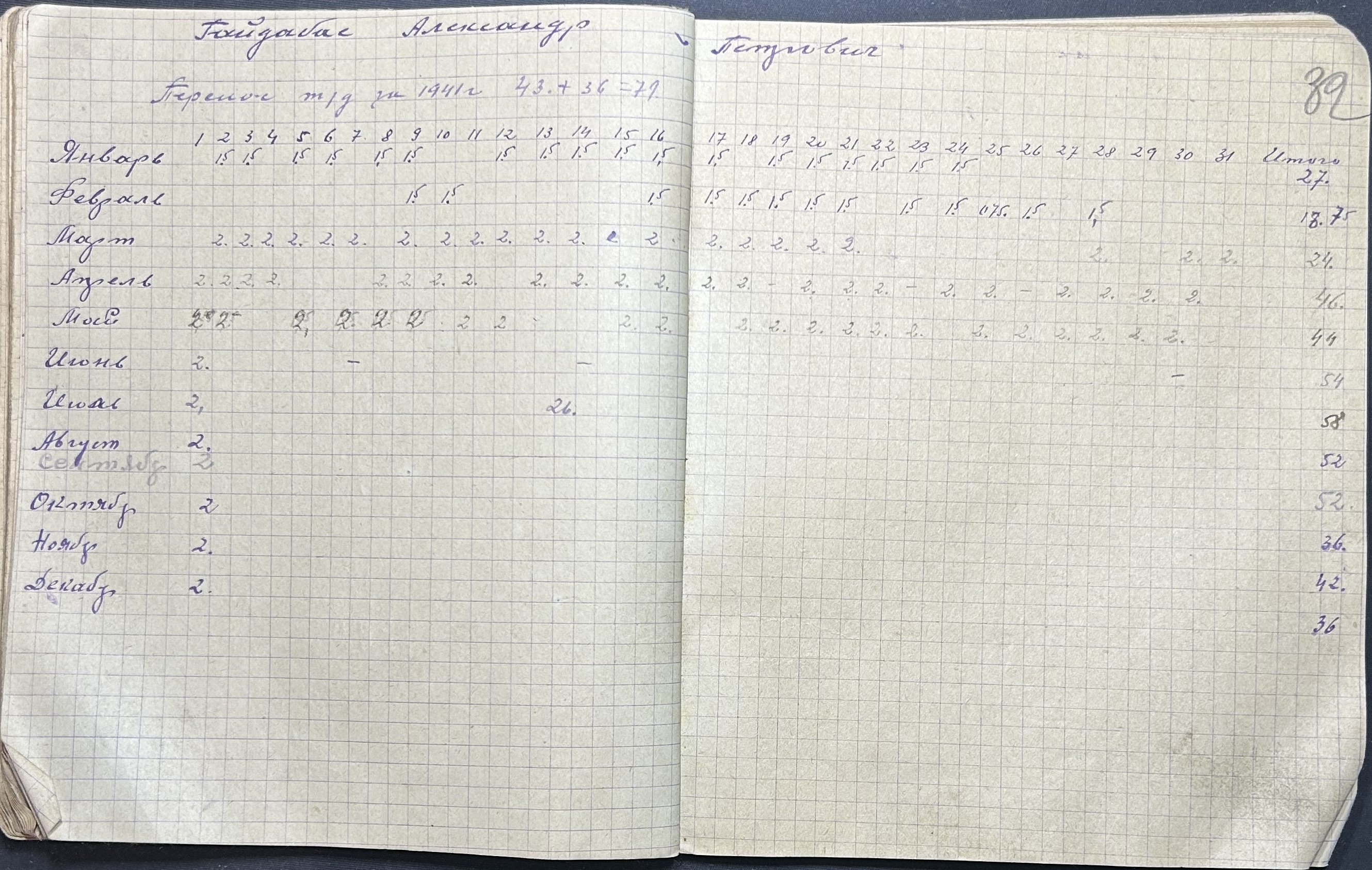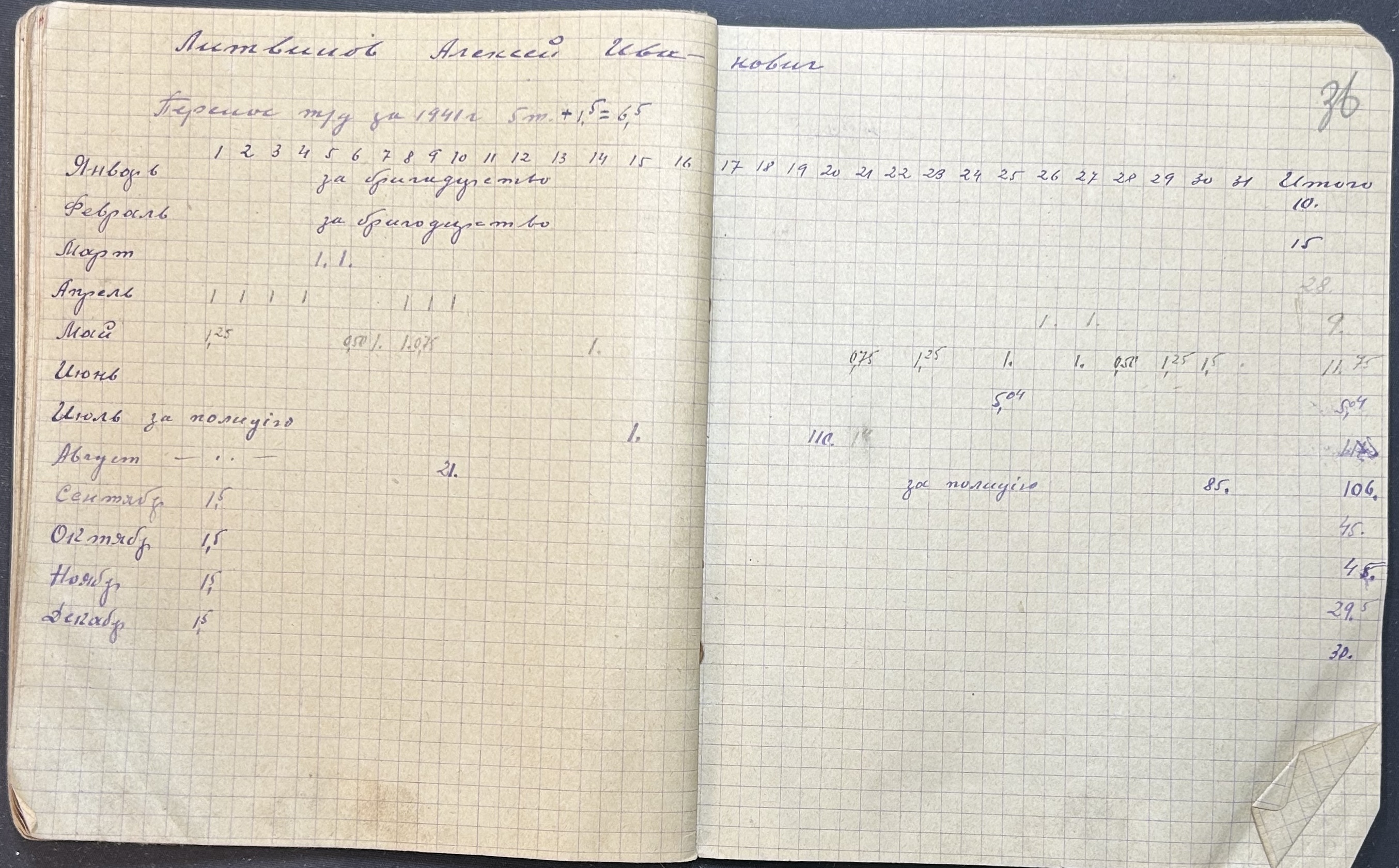 • • • • Справа № 101 “Особові рахунки трудоднів бригад № № 6-9 земельного товариства с. Аджіаска за 1942 рік”