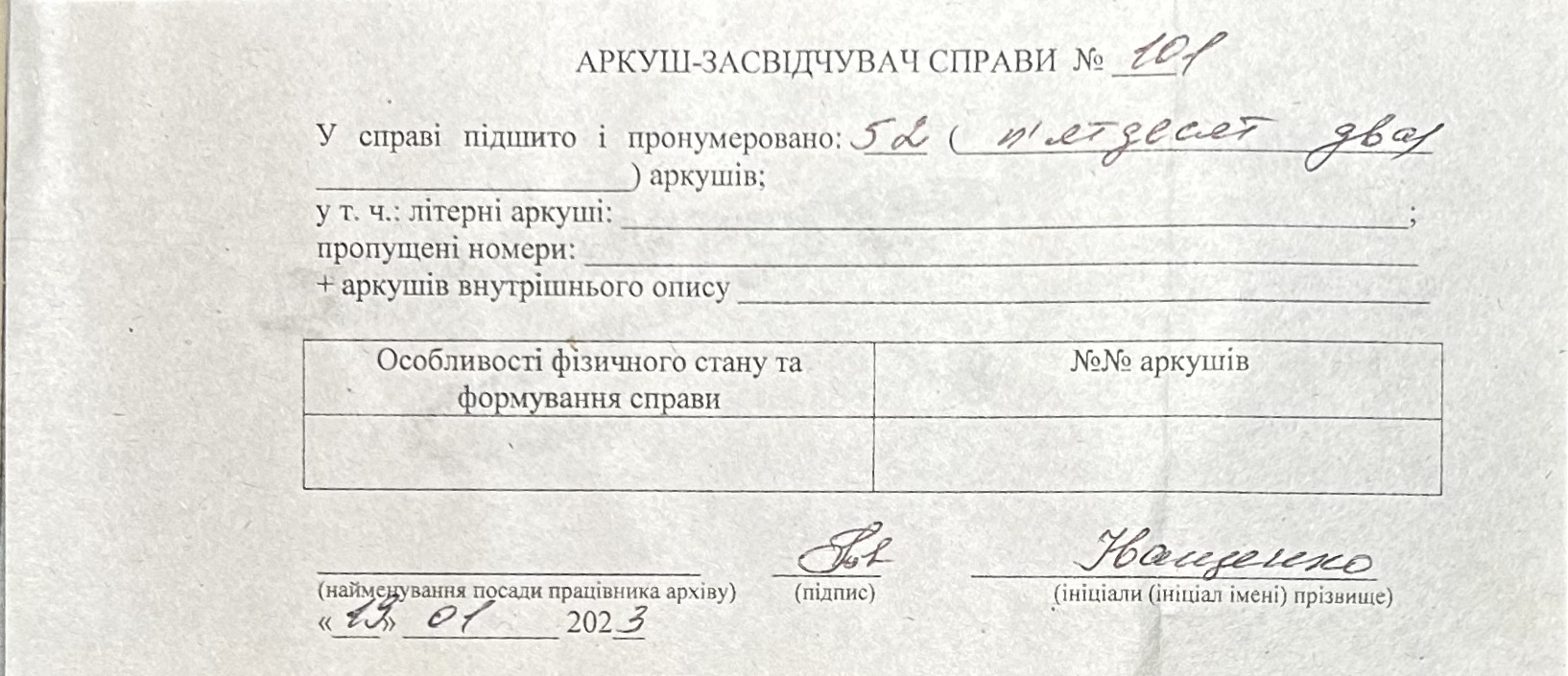 Фонд Н-1588 / Опис 1 / Справа 101