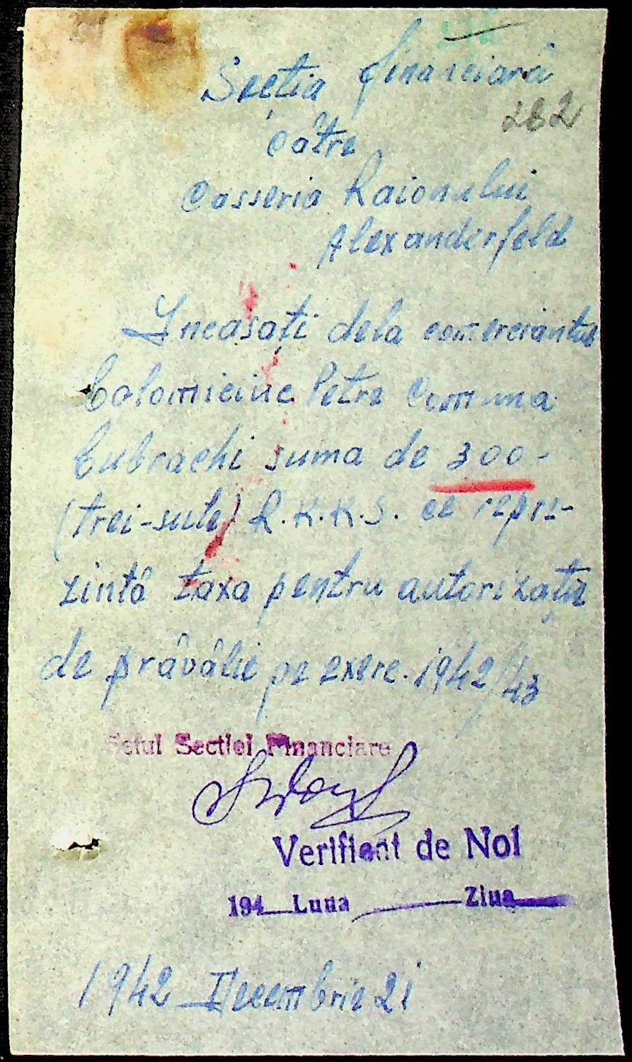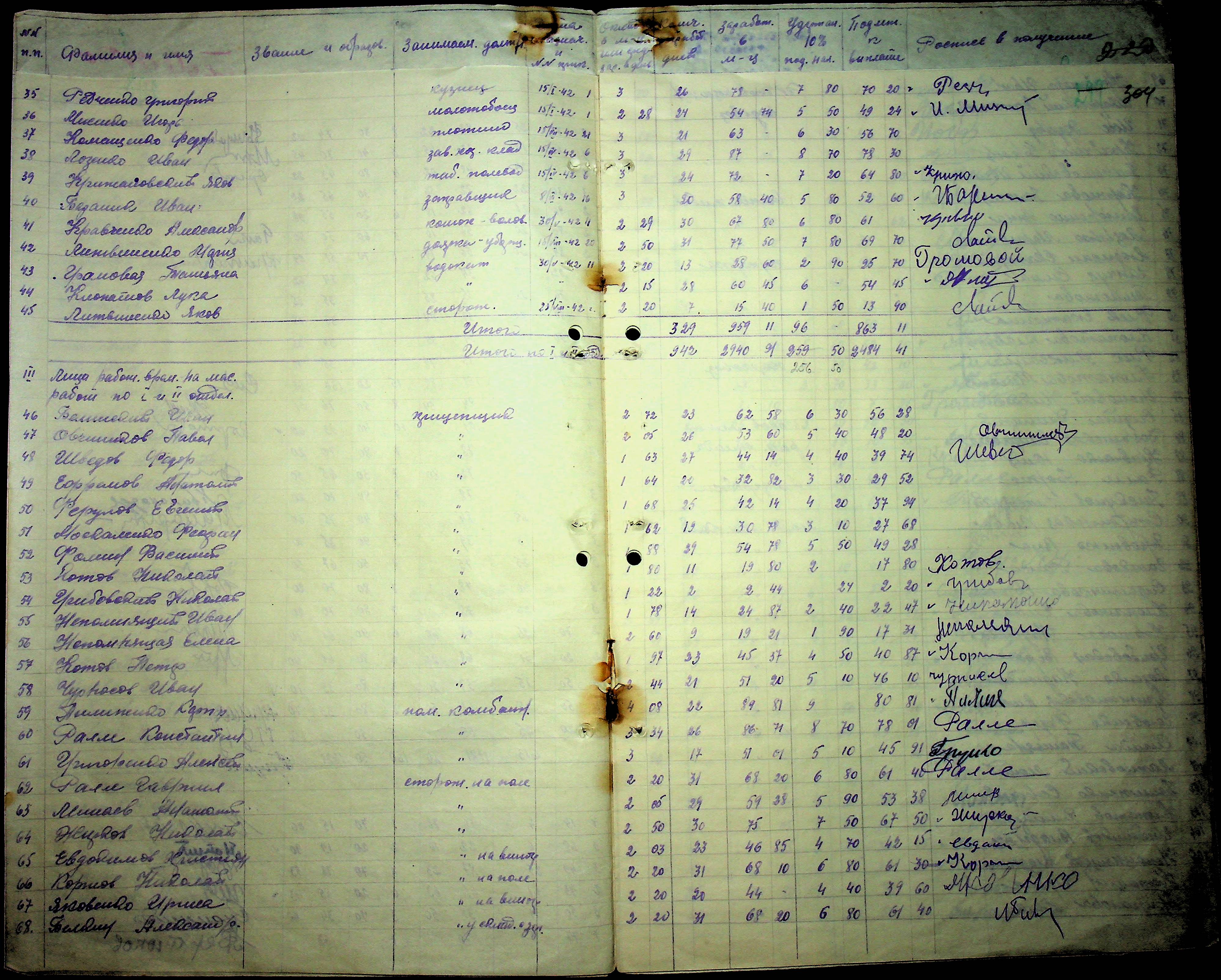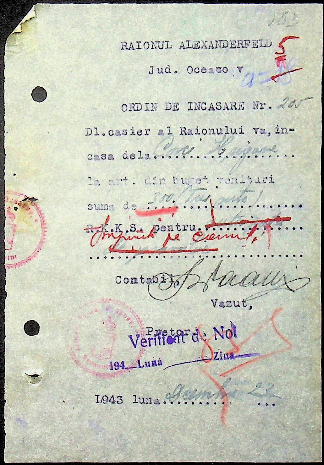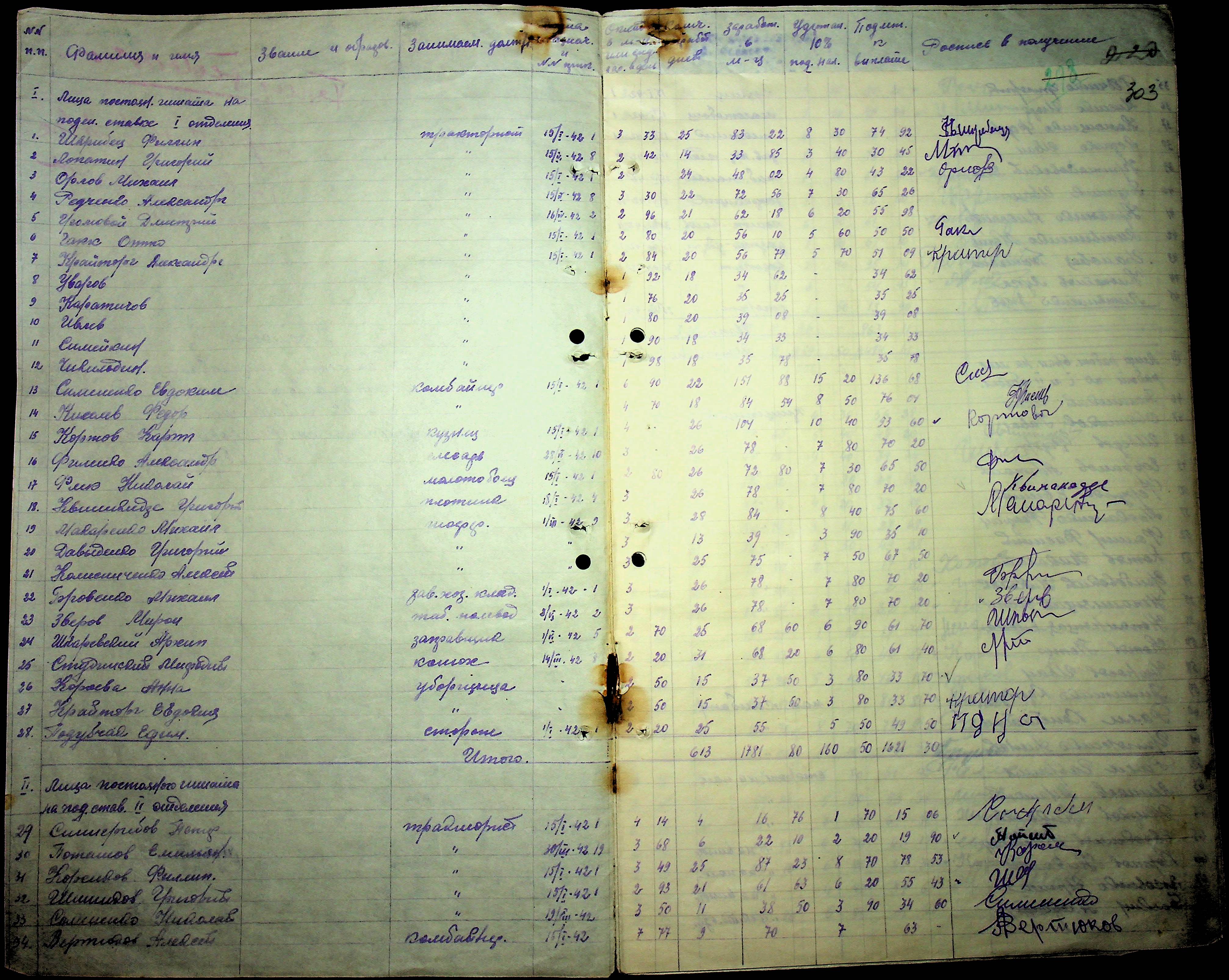 • • • • Справа № 109 “Відомості по заробітній платі штатних робітників та службовців Александерфельдського району за 1942-1943 роки”