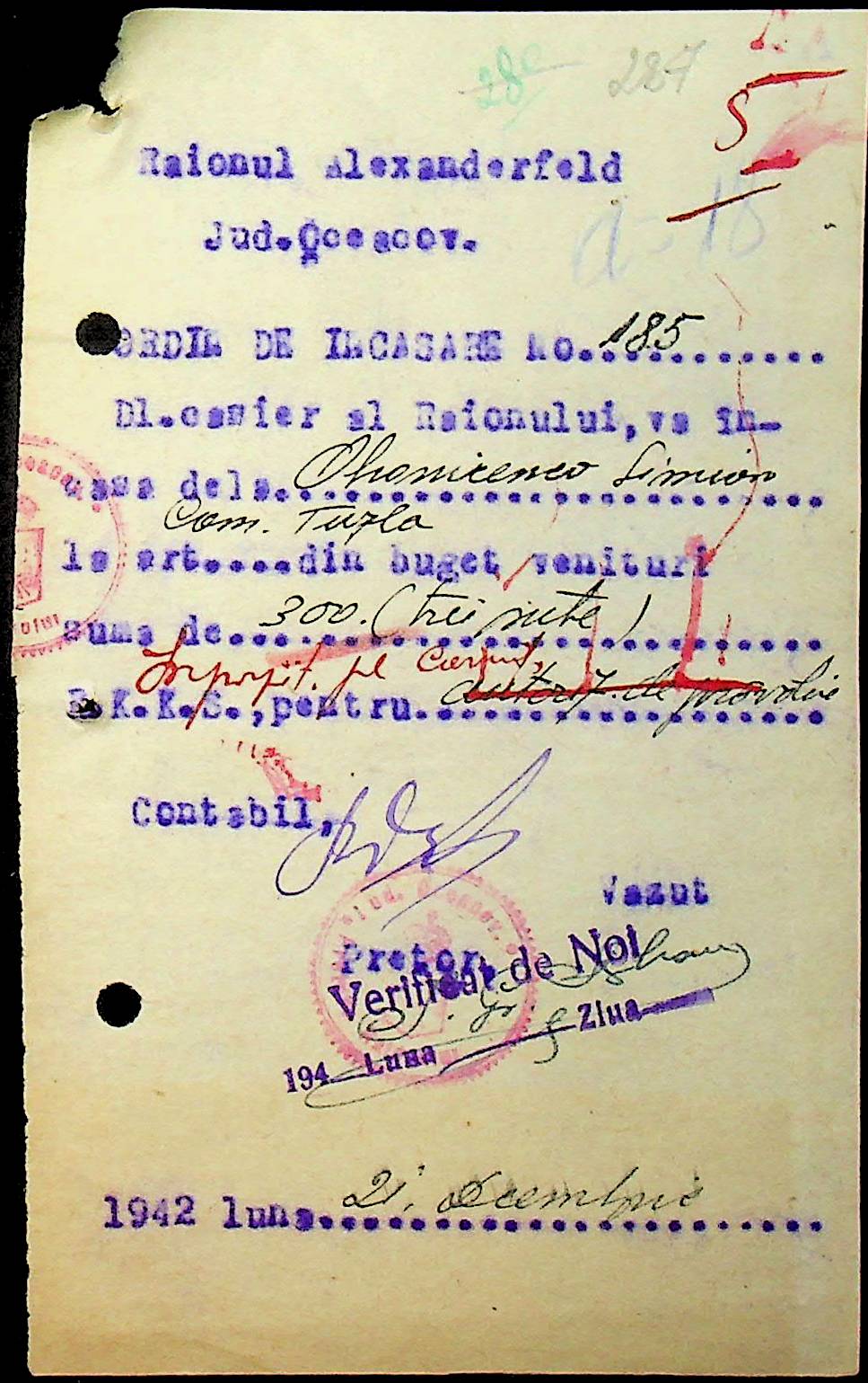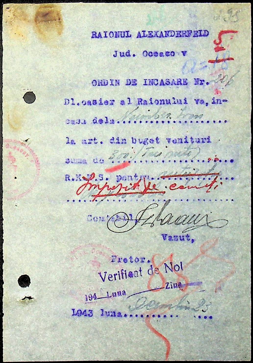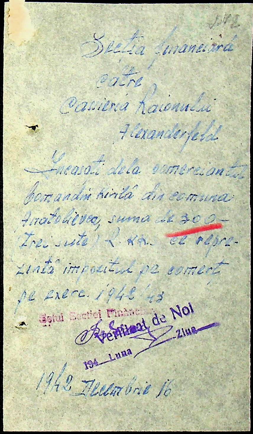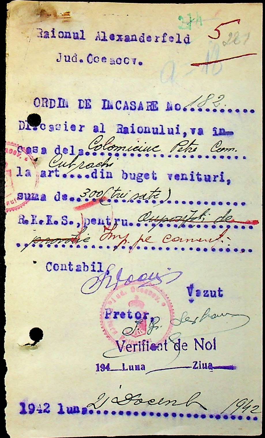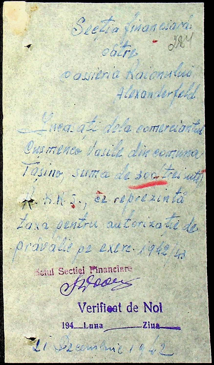 • • • • Справа № 109 “Відомості по заробітній платі штатних робітників та службовців Александерфельдського району за 1942-1943 роки”