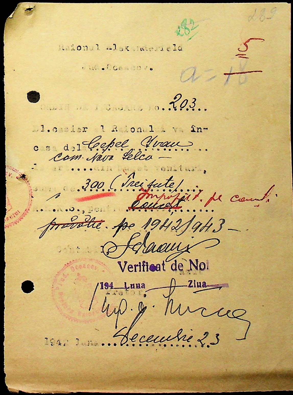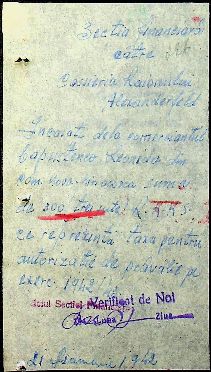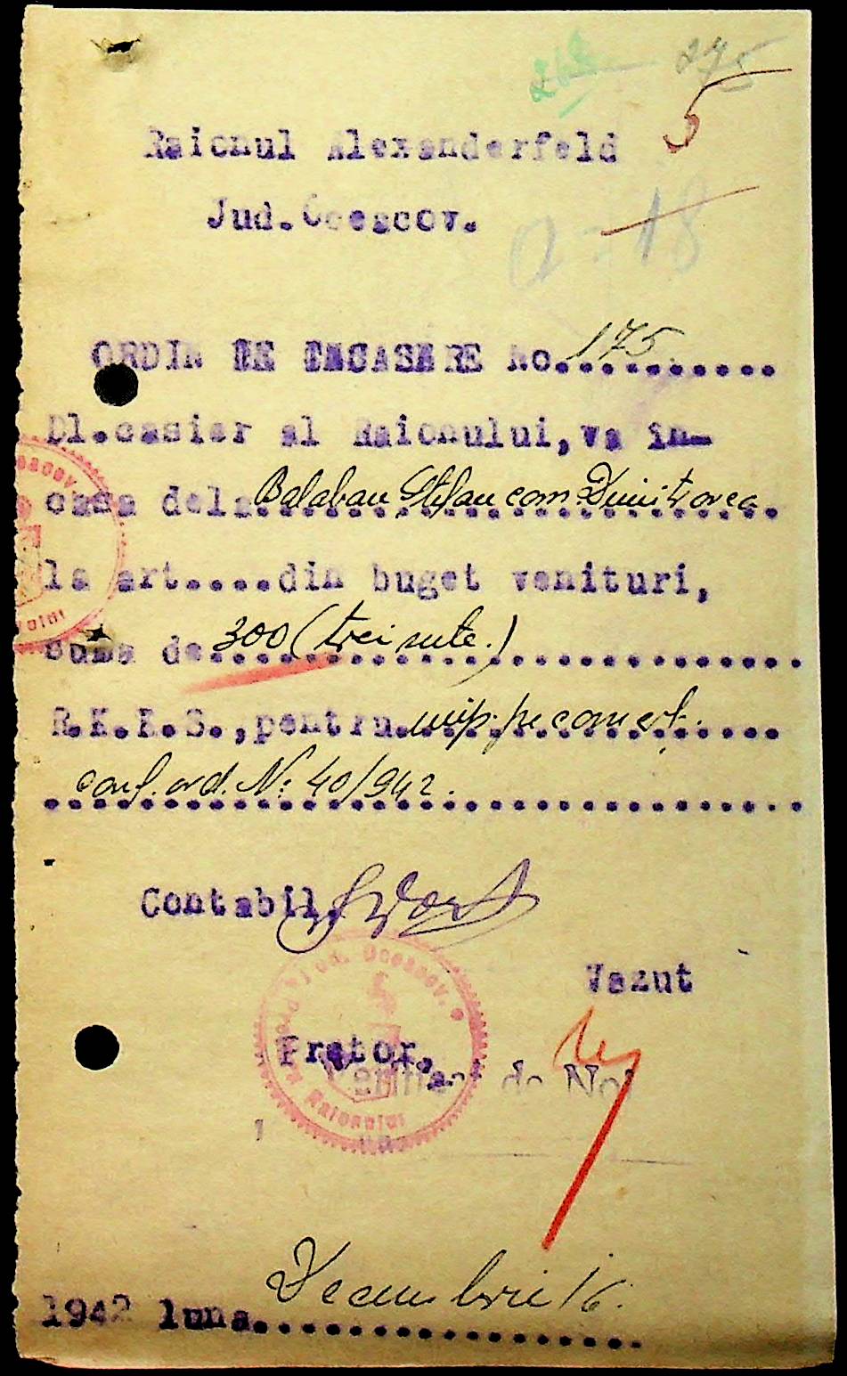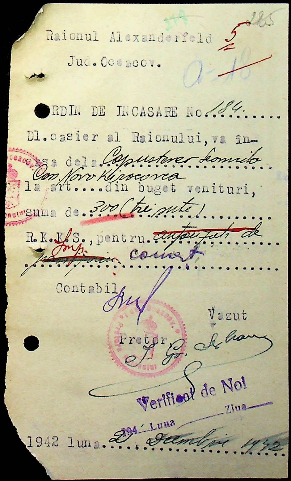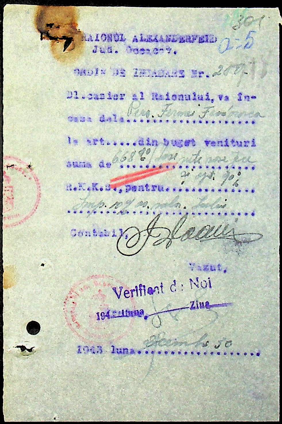 • • • • Справа № 109 “Відомості по заробітній платі штатних робітників та службовців Александерфельдського району за 1942-1943 роки”