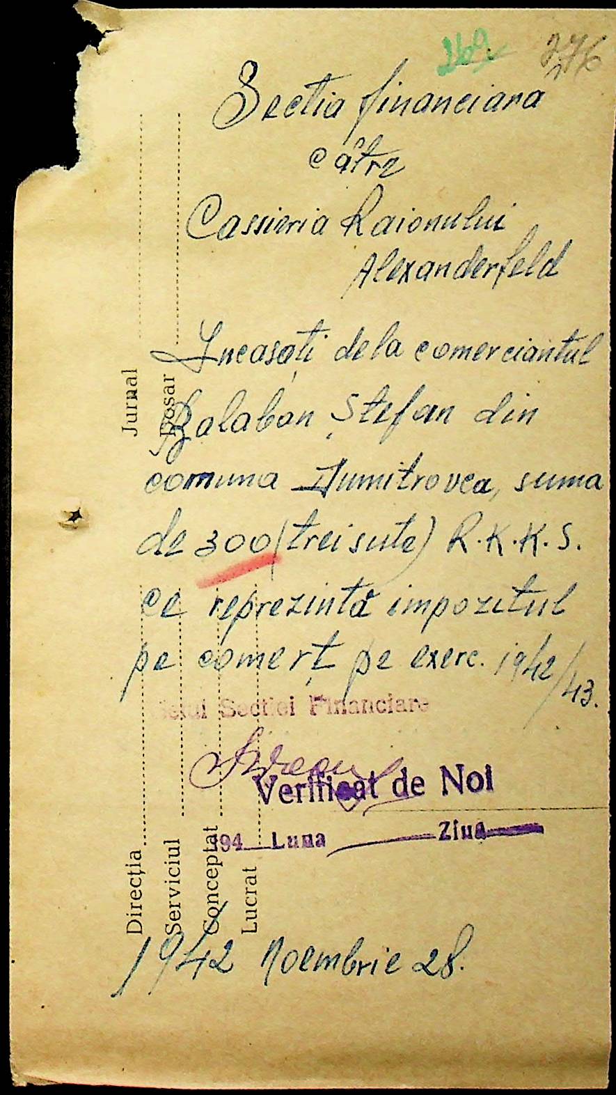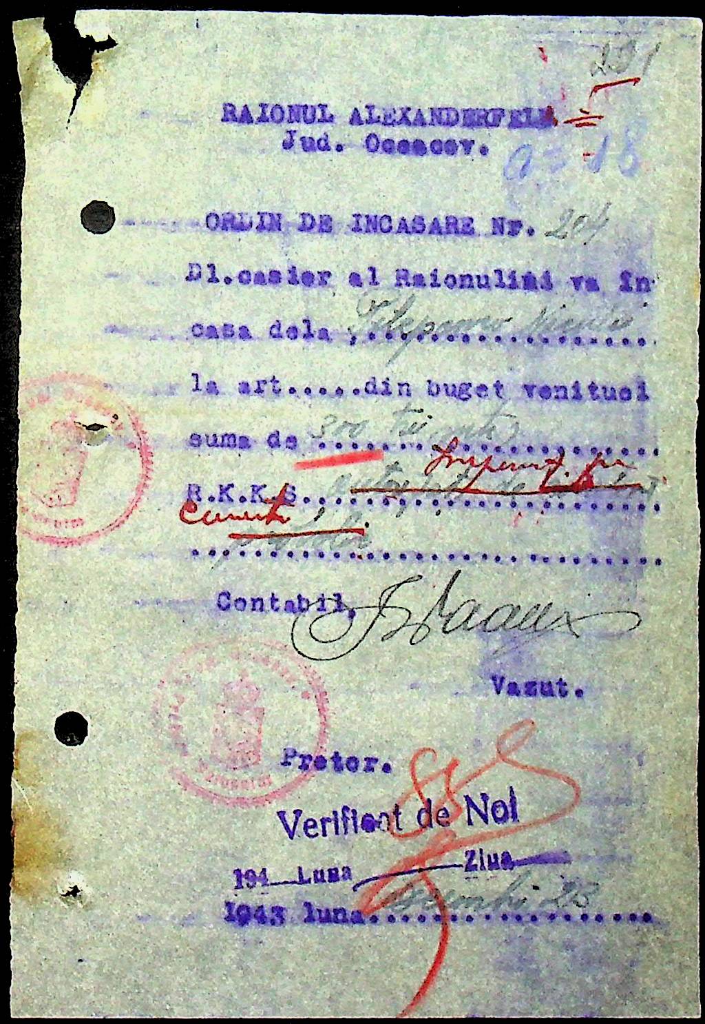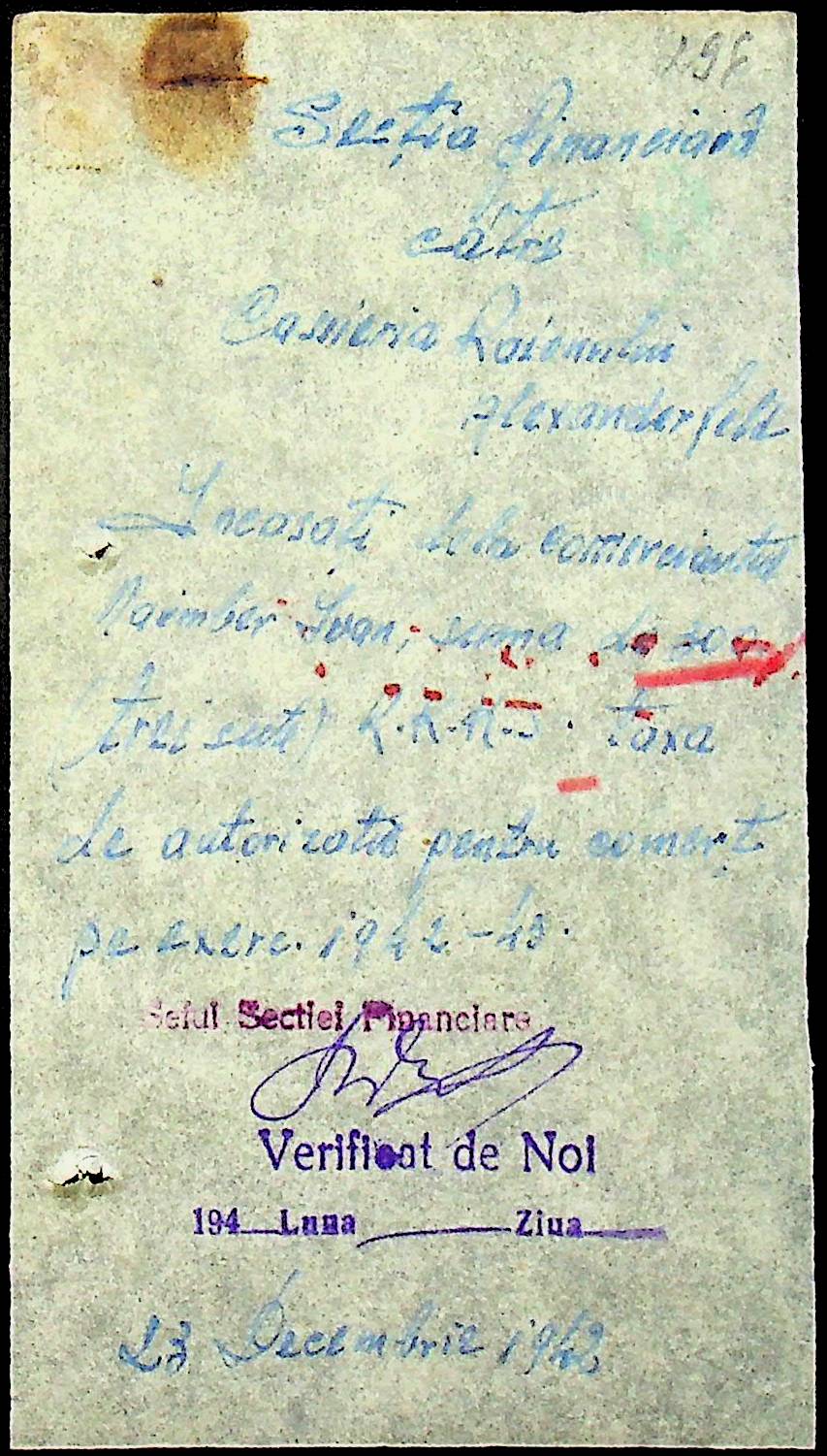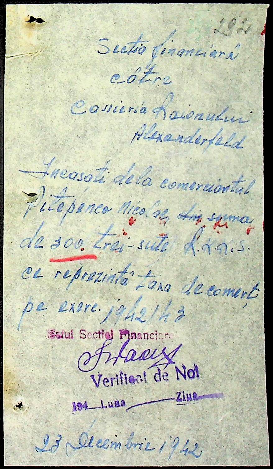 • • • • Справа № 109 “Відомості по заробітній платі штатних робітників та службовців Александерфельдського району за 1942-1943 роки”