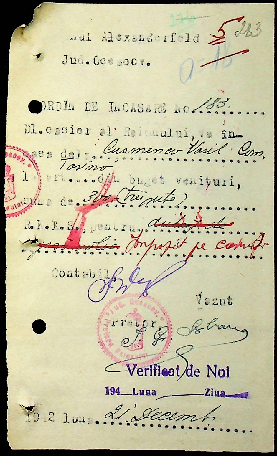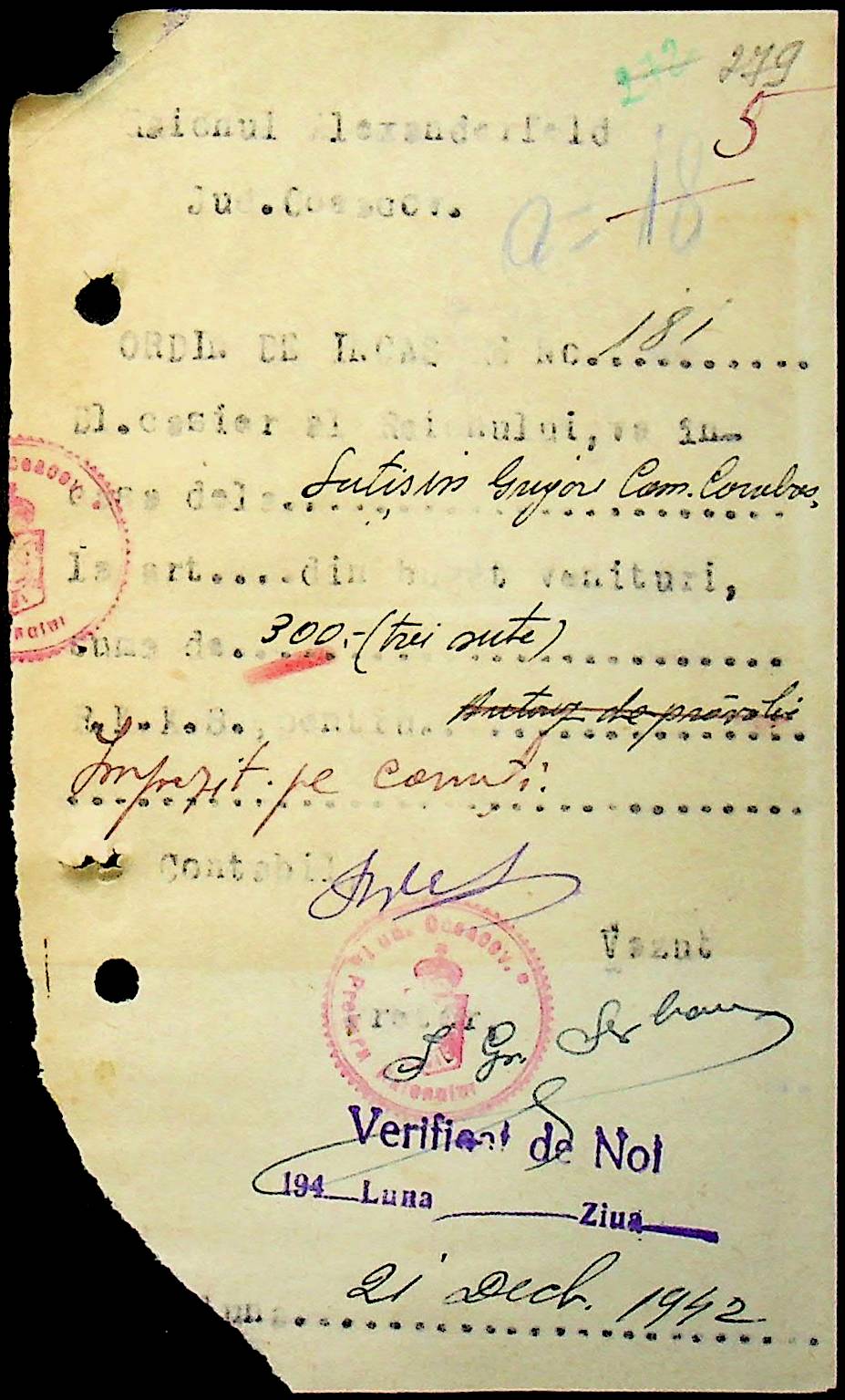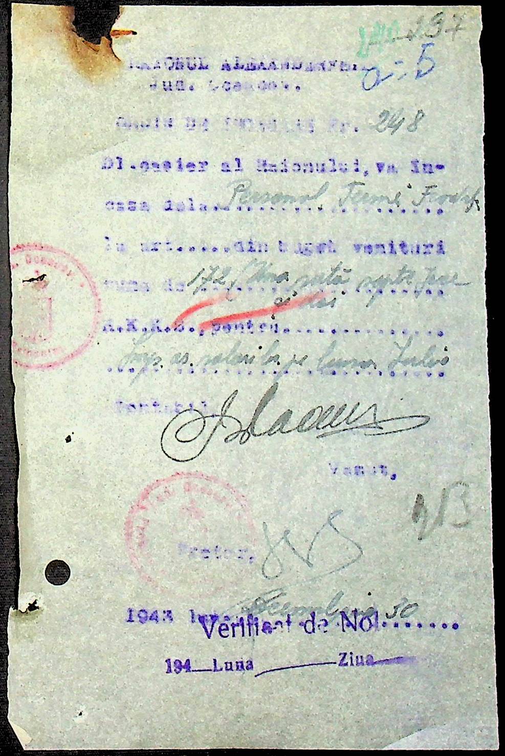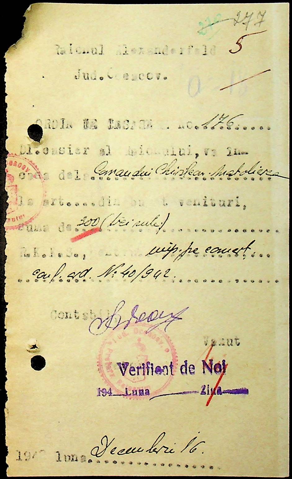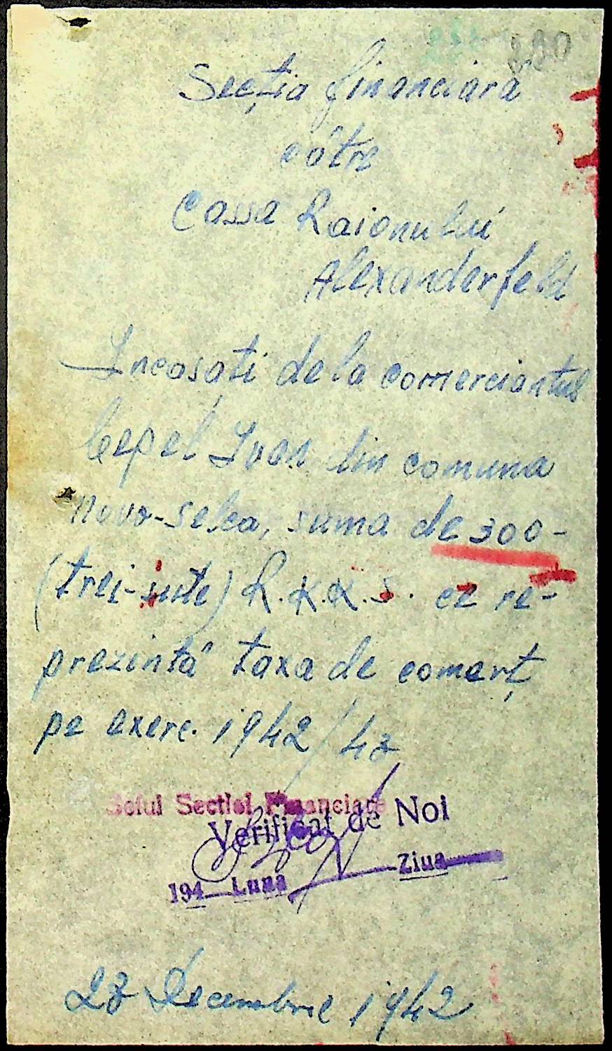 • • • • Справа № 109 “Відомості по заробітній платі штатних робітників та службовців Александерфельдського району за 1942-1943 роки”