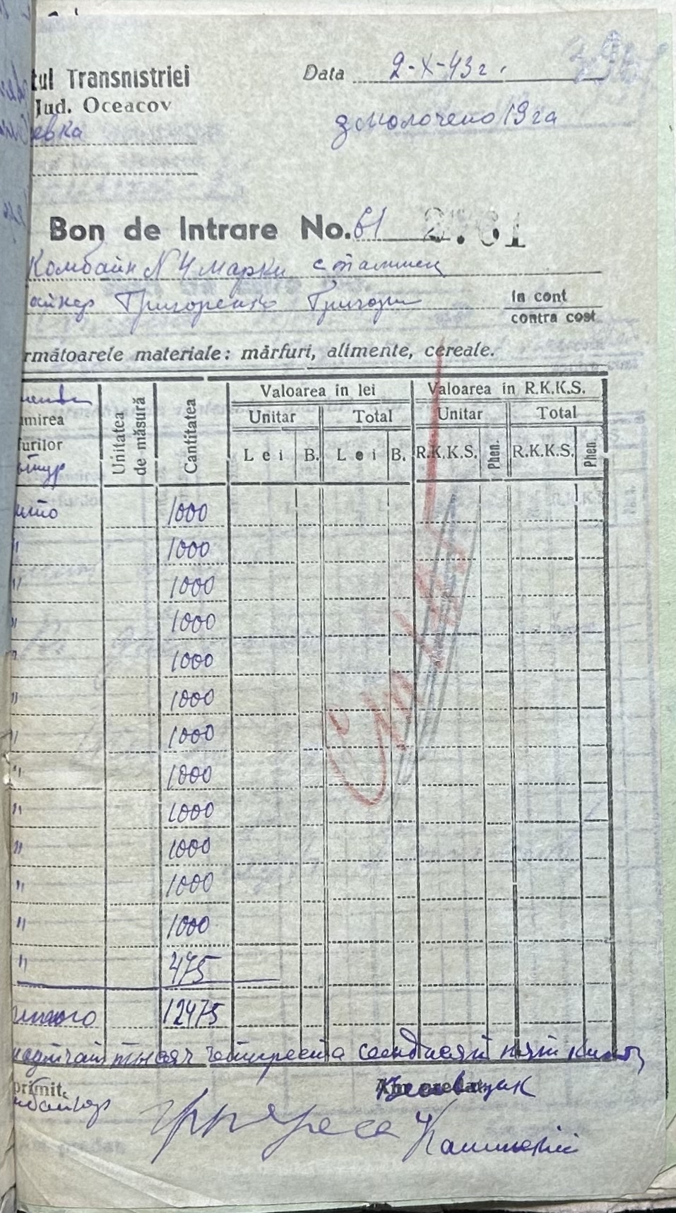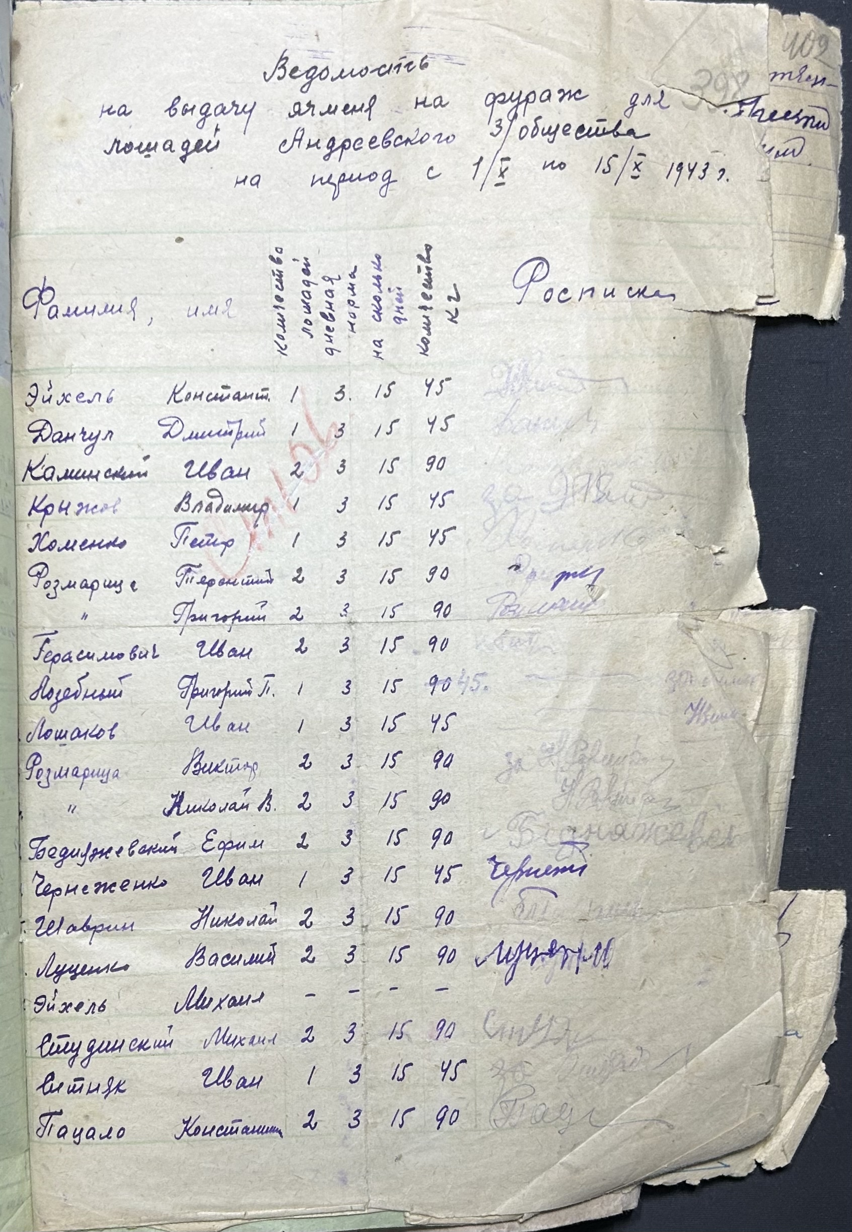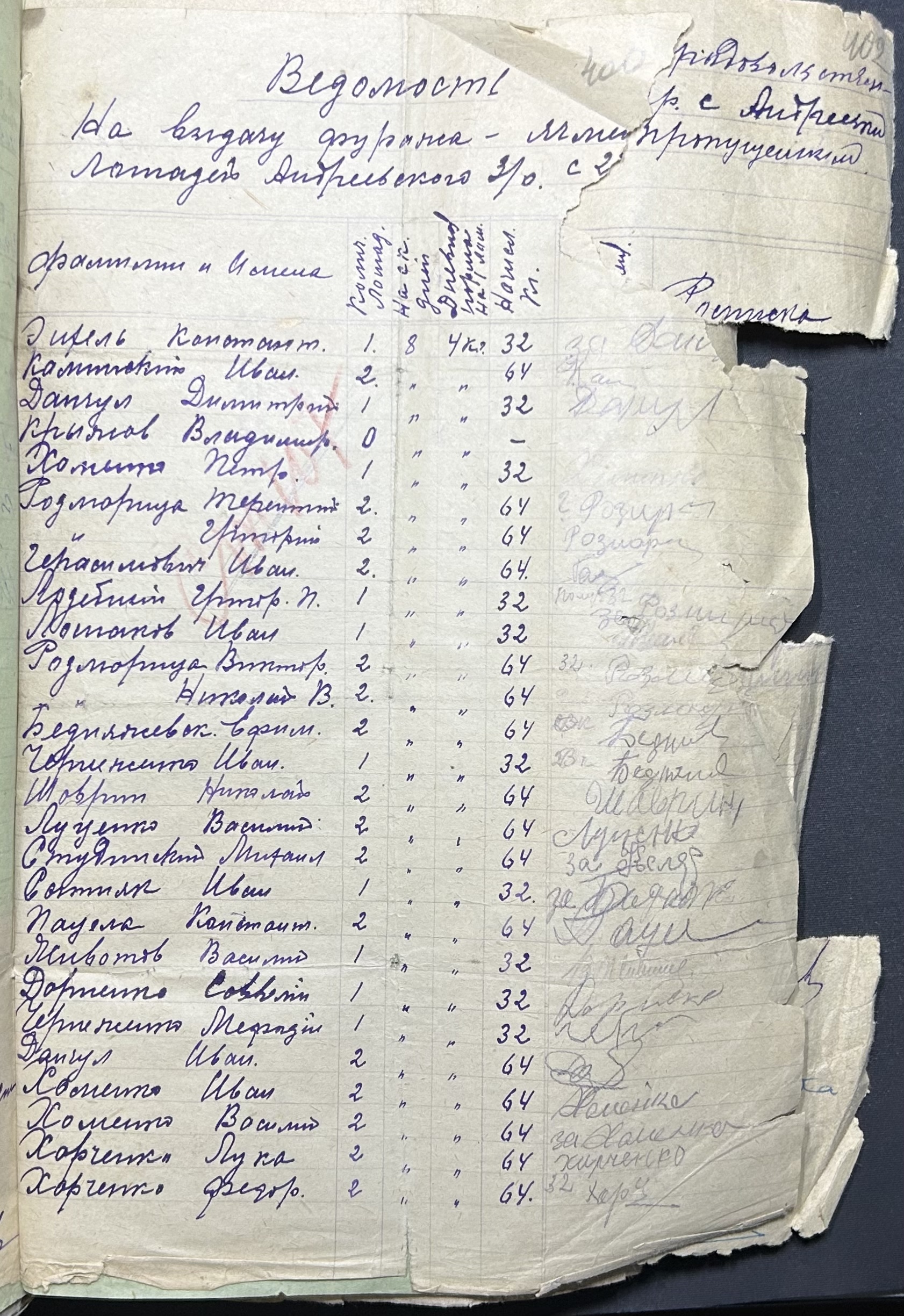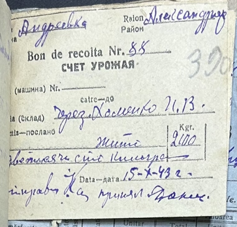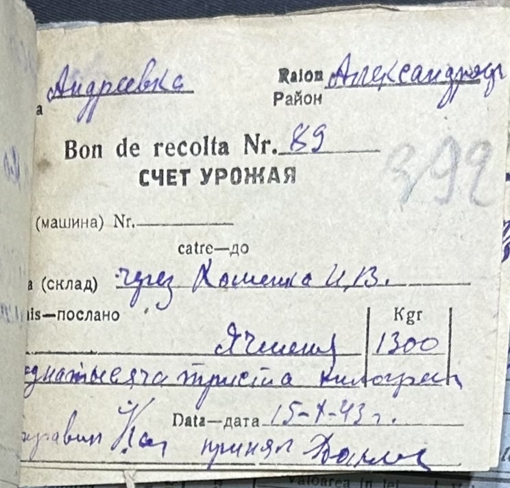 • • • • Справа № 116 “Відомості та рахунки щодо приходу та витрат зернових продуктів по Андріївському земельному товариству”