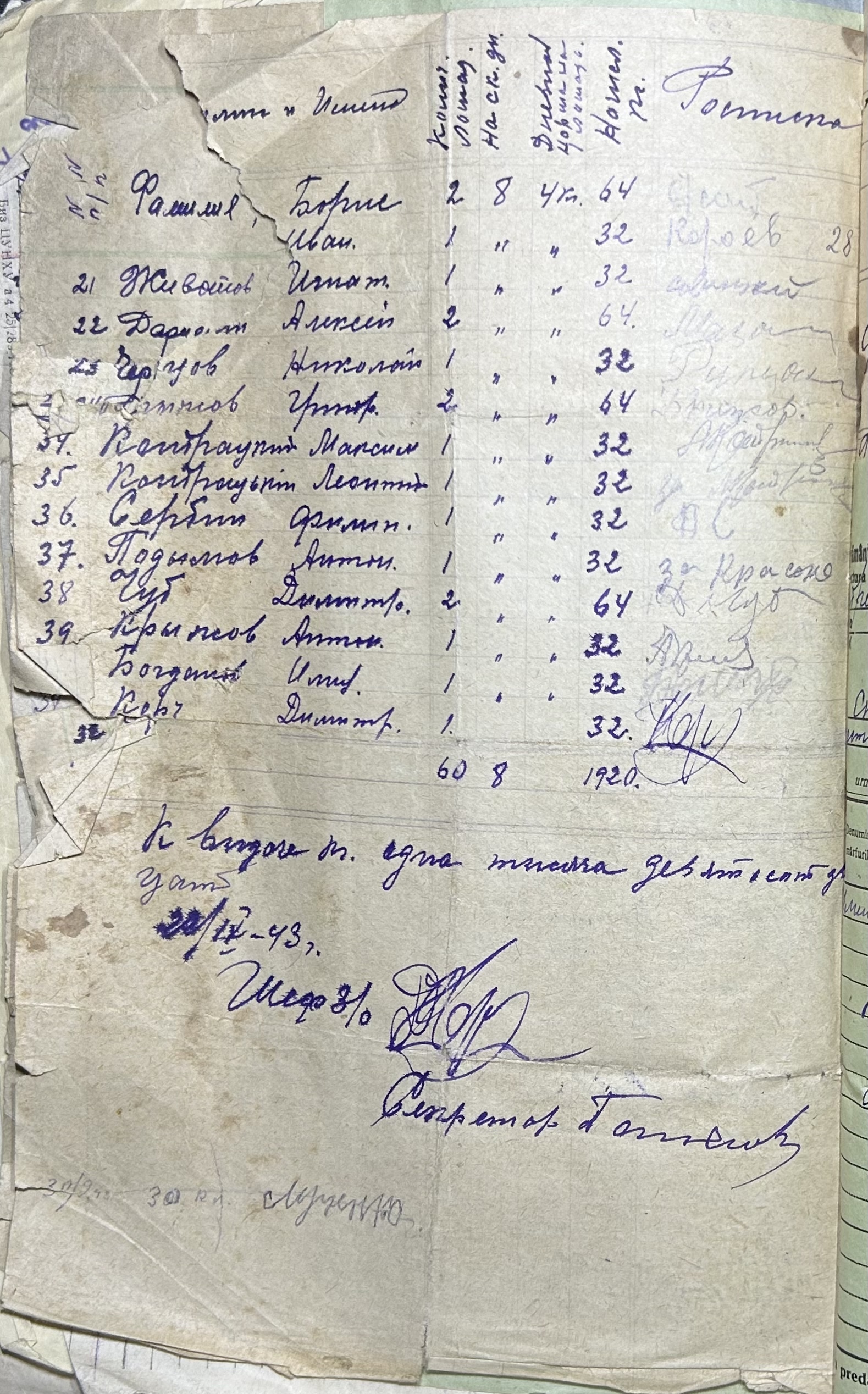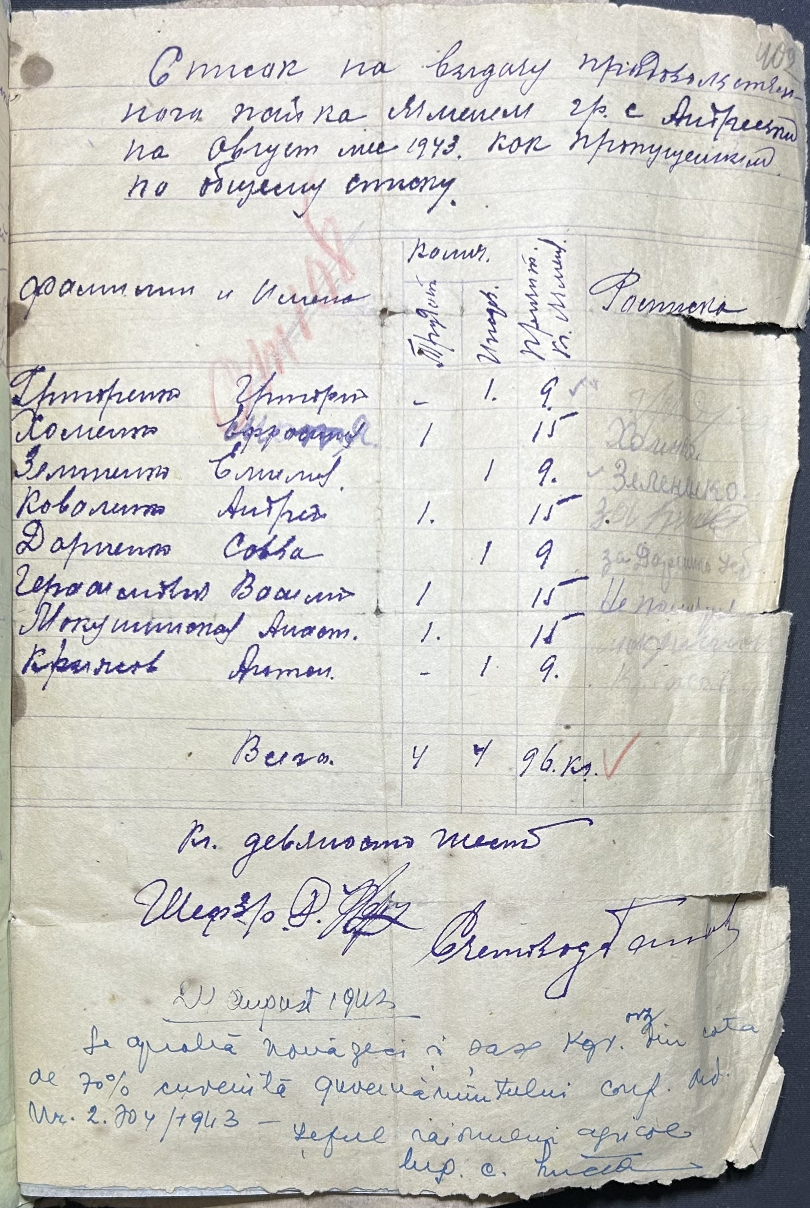◦ ◦ ◦ Опис № 1 справ постійного зберігання за 1941–1944 роки