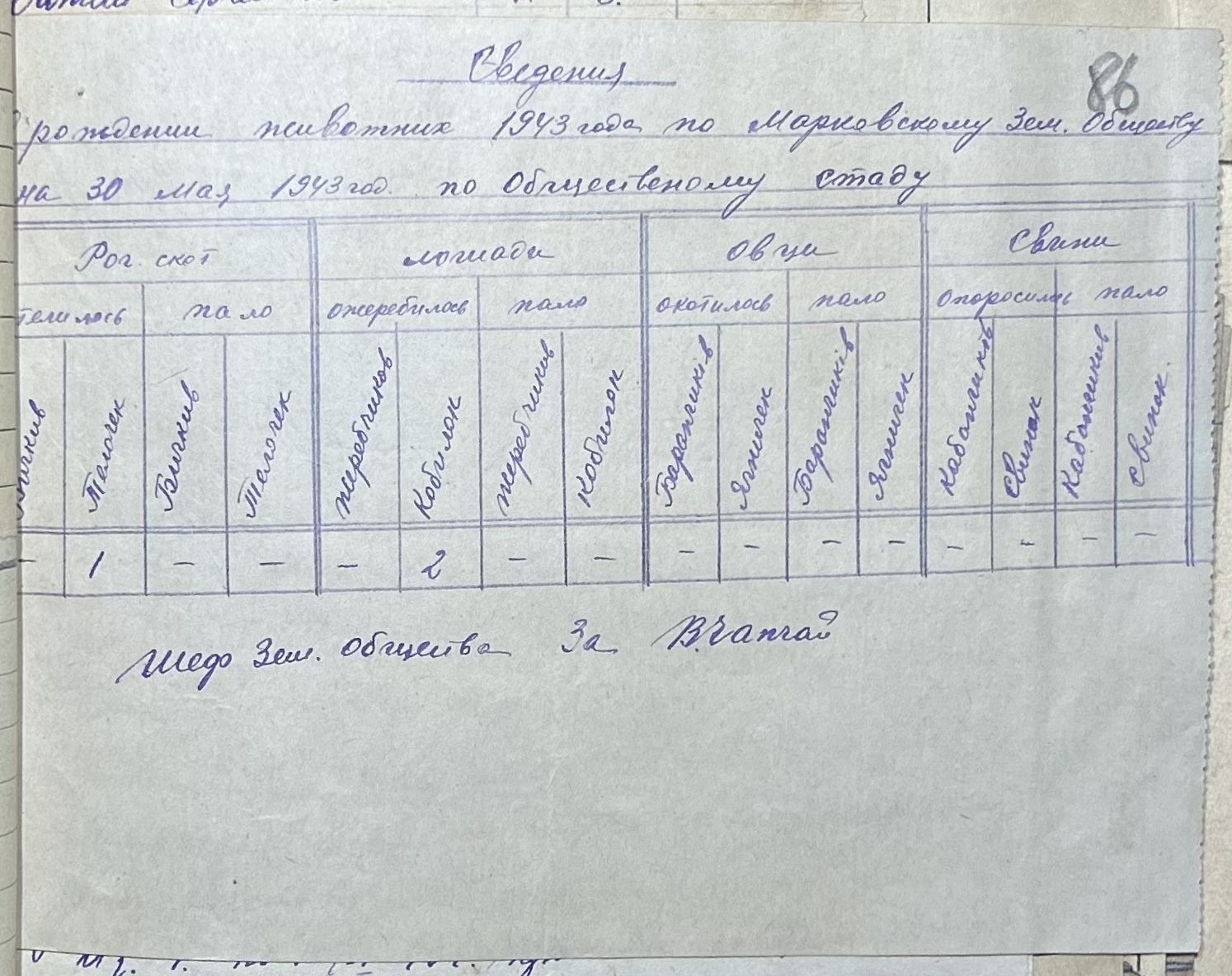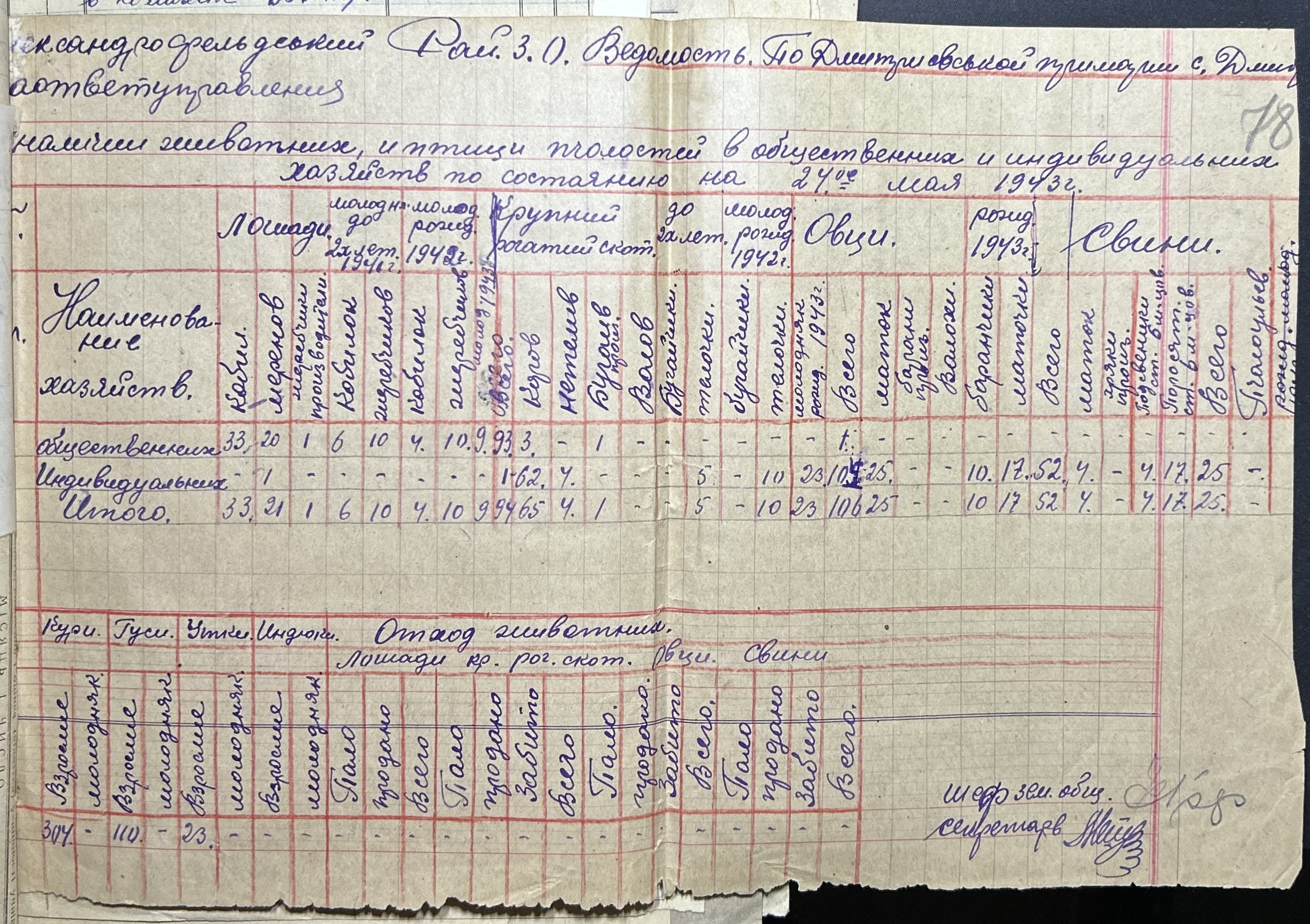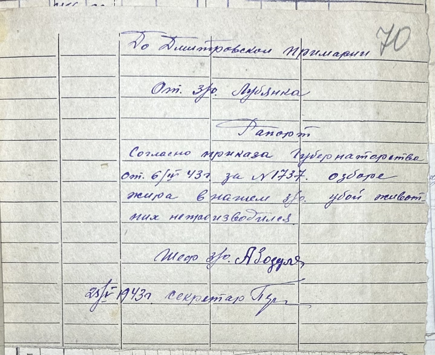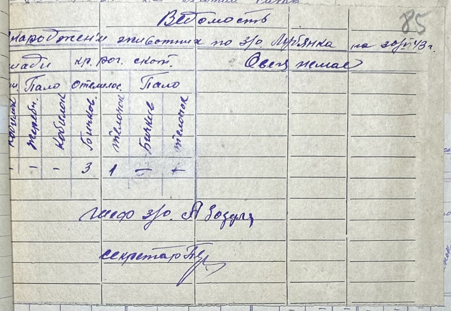 • • • • Справа № 140 “Відомості про наявність великої рогатої худоби, коней, овець, свиней та птиці по селах Дмитрівської примарії”