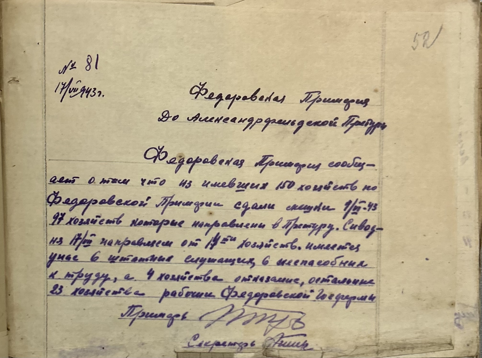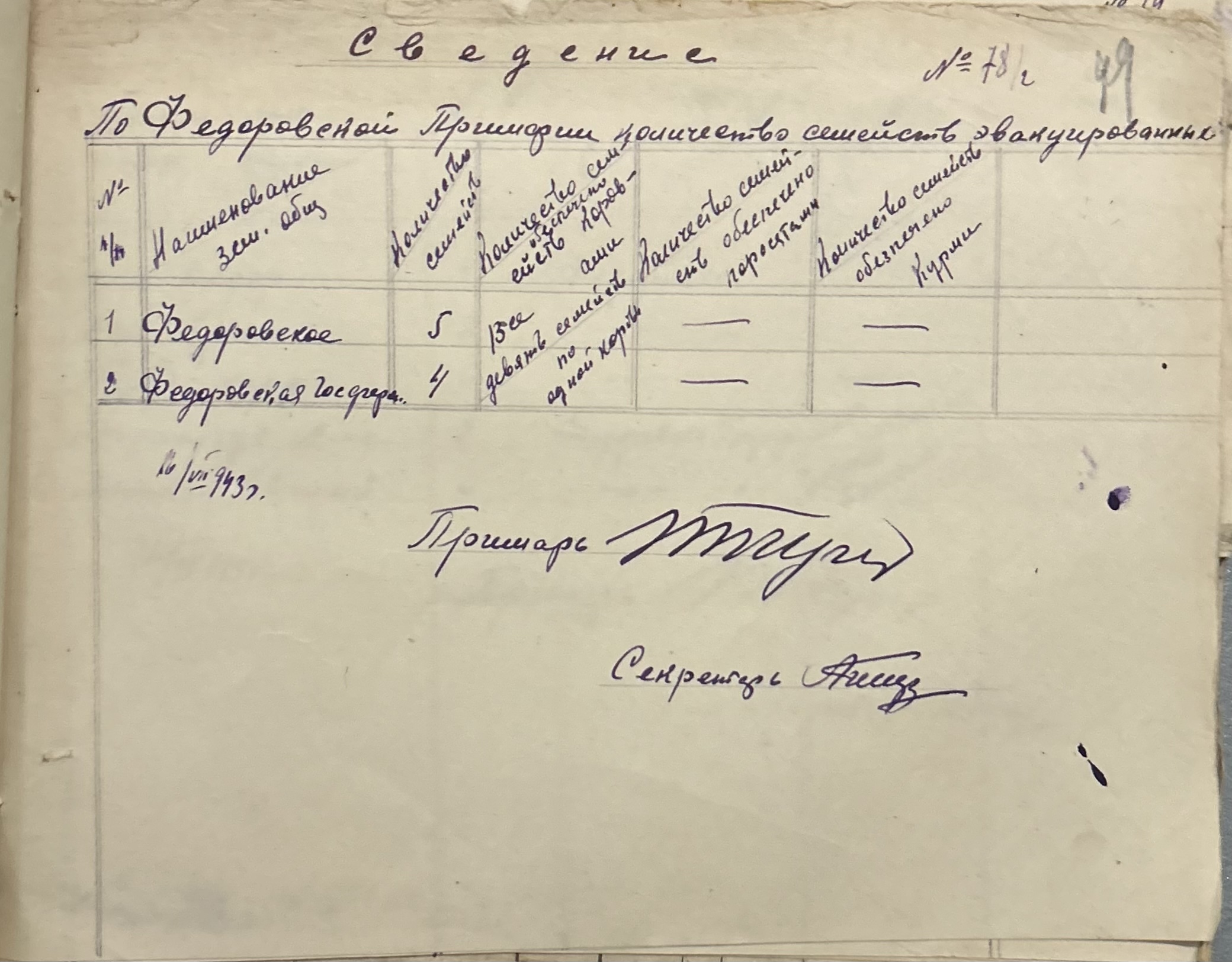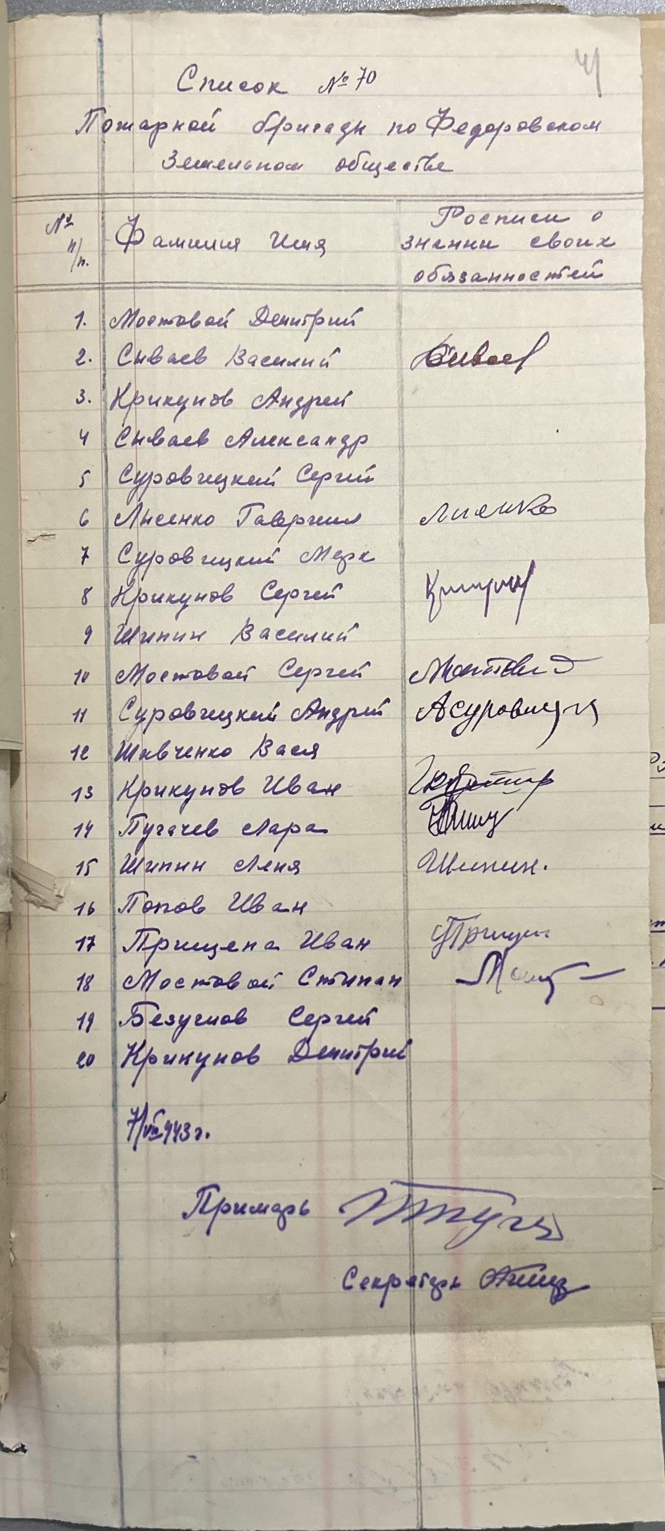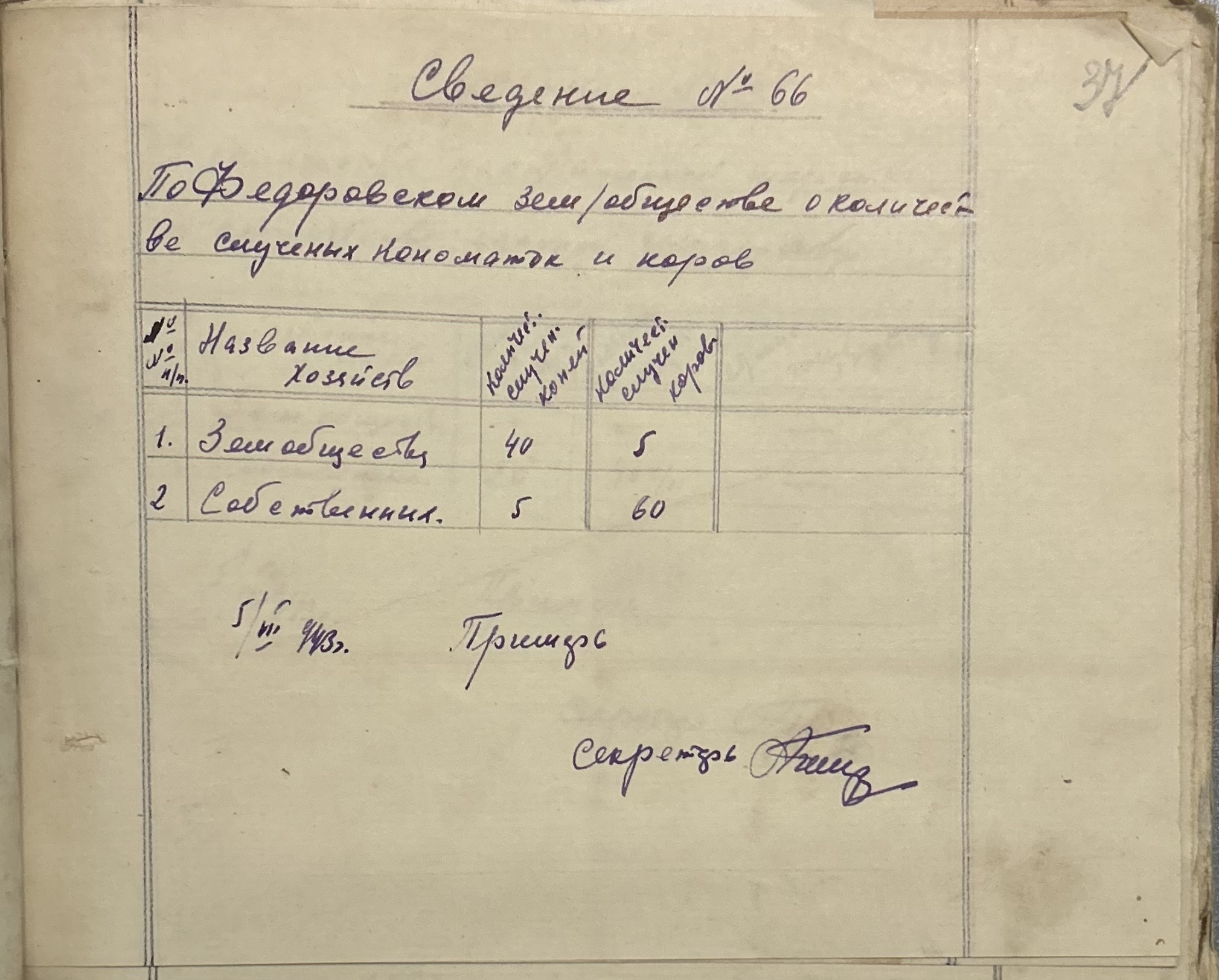 • • • • Справа № 152 “Відомості про реквізицію та евакуацію коней і великої рогатої худоби. Списки поліцейських, пожежників та церковного комітету Федорівської примарії”