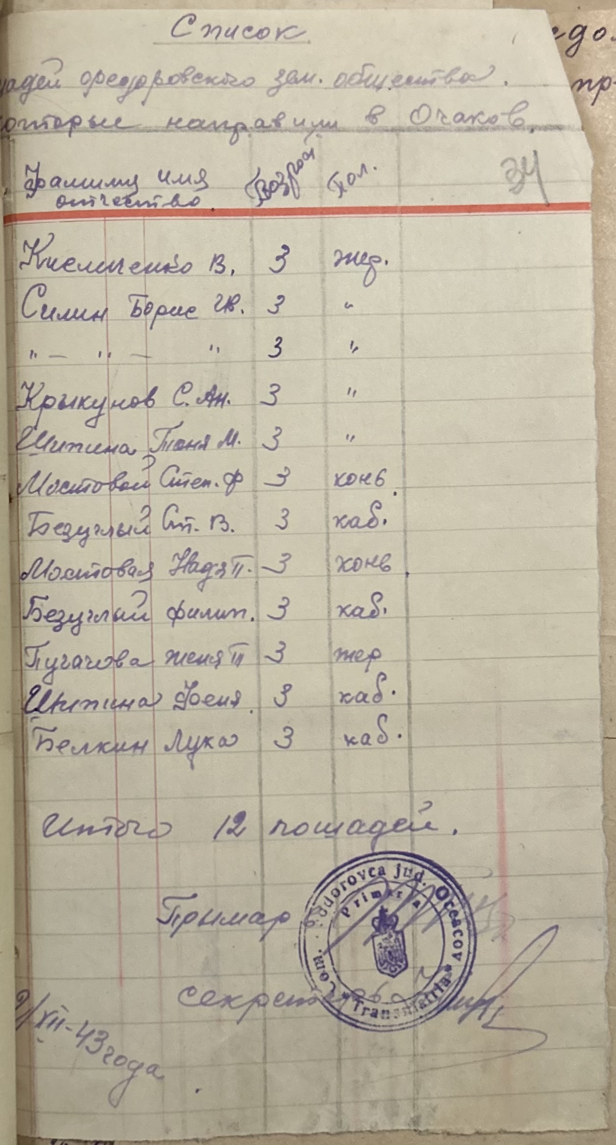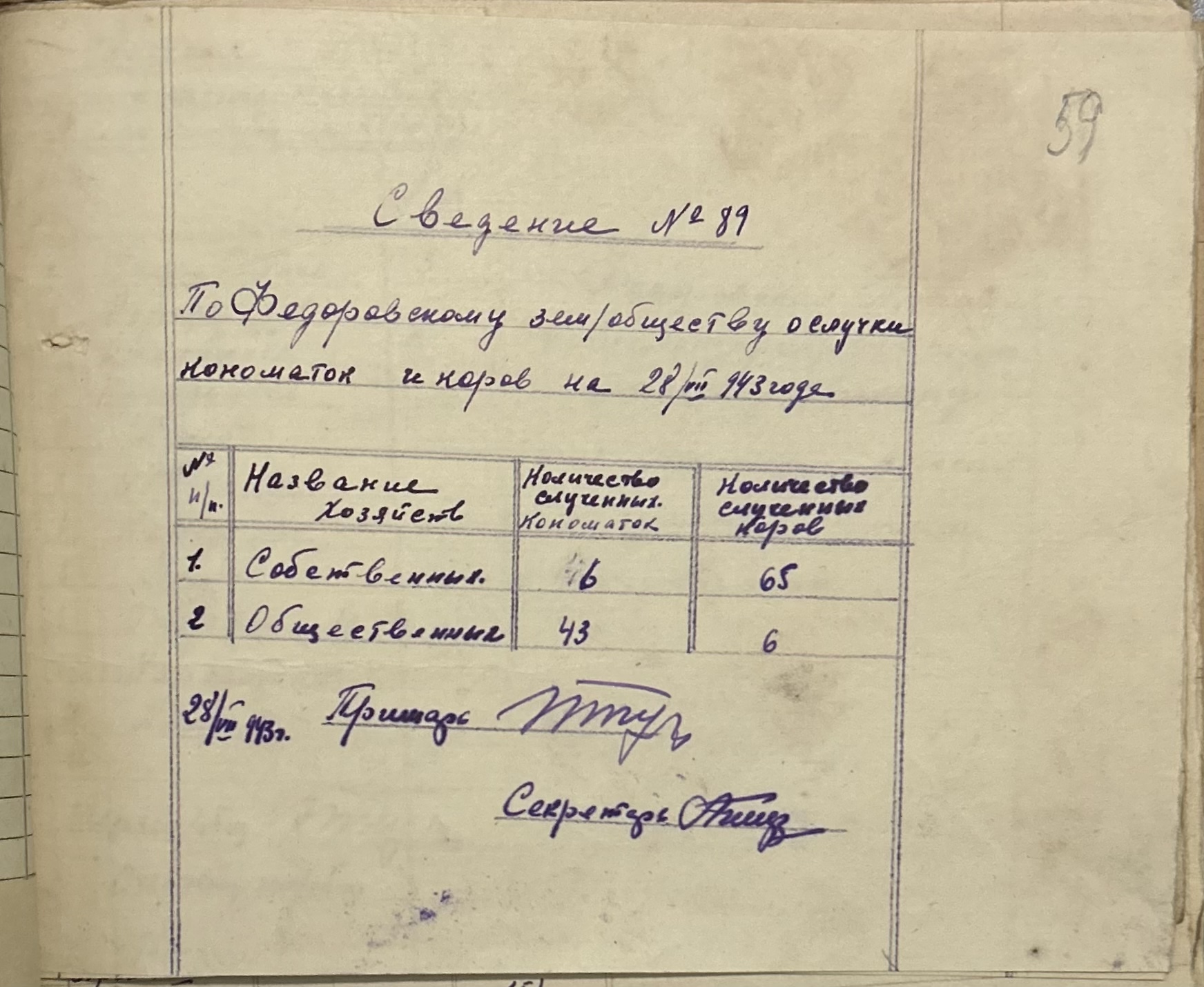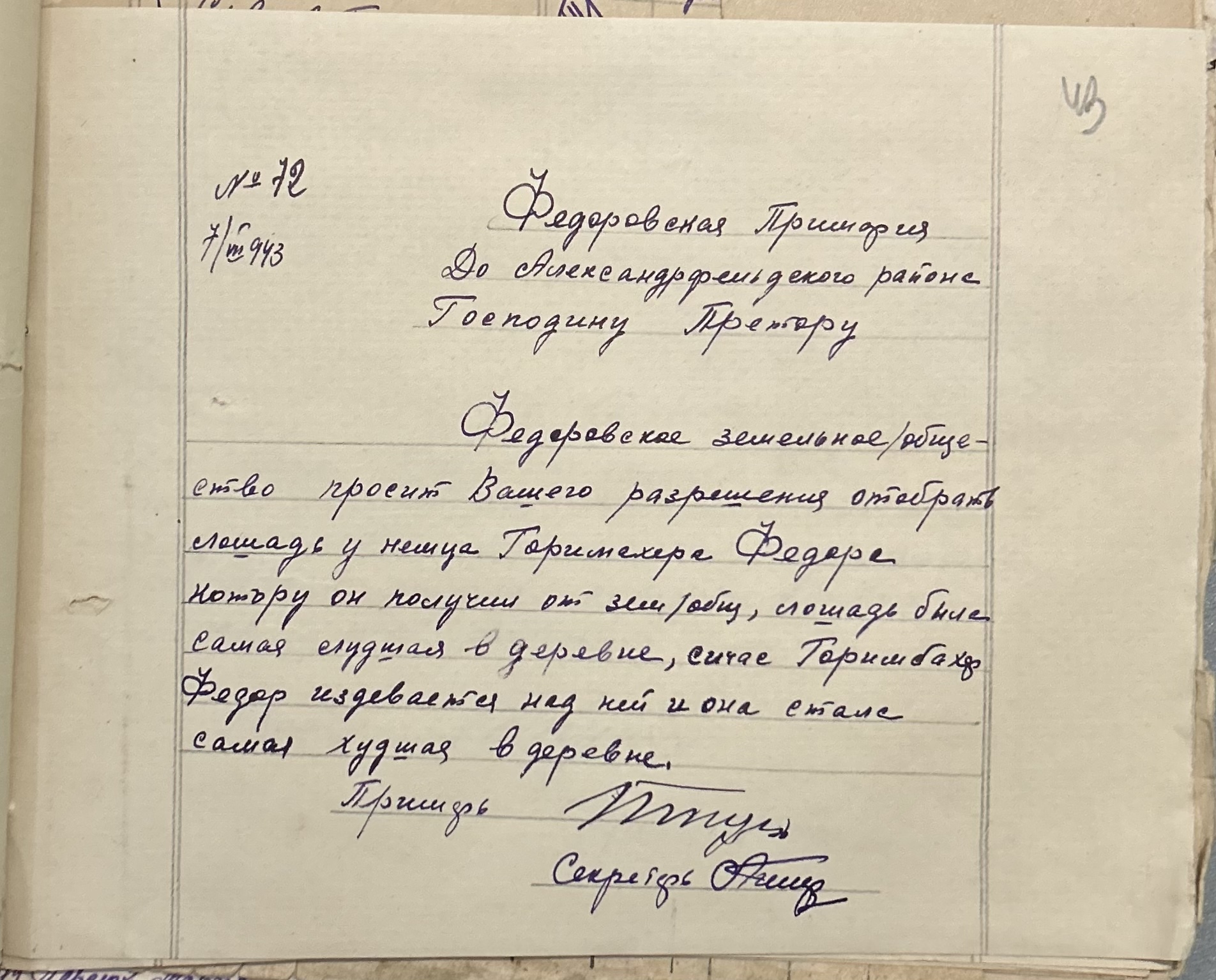• • • • Справа № 152 “Відомості про реквізицію та евакуацію коней і великої рогатої худоби. Списки поліцейських, пожежників та церковного комітету Федорівської примарії”