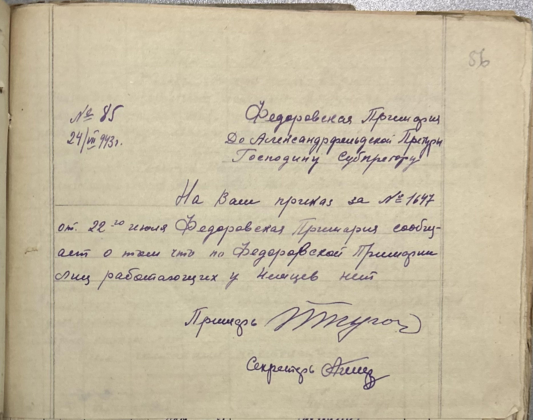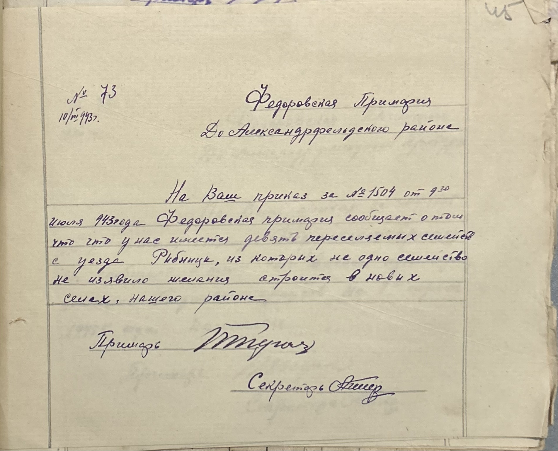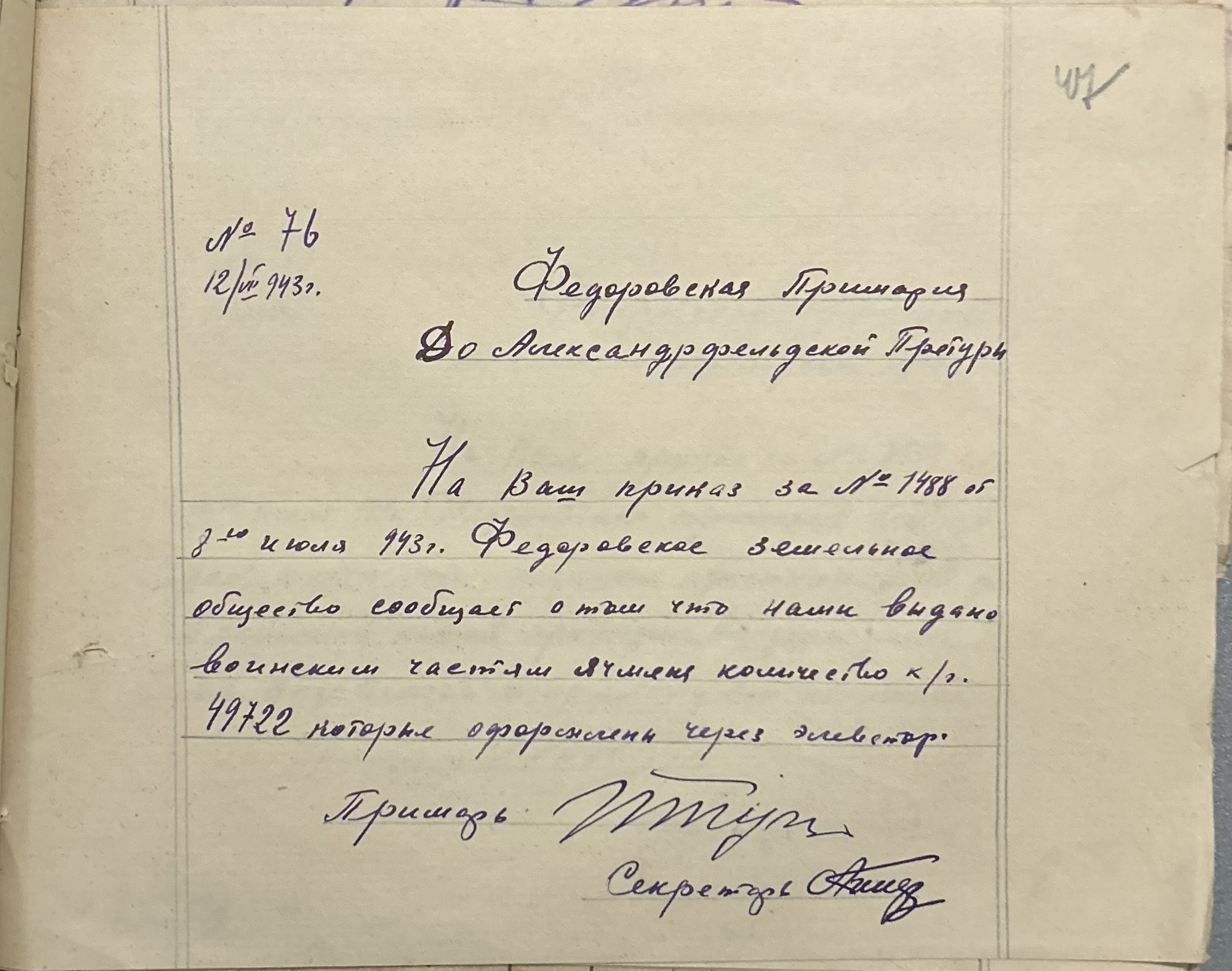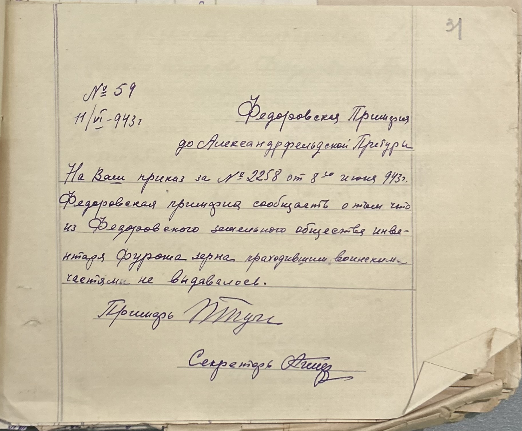 • • • • Справа № 152 “Відомості про реквізицію та евакуацію коней і великої рогатої худоби. Списки поліцейських, пожежників та церковного комітету Федорівської примарії”