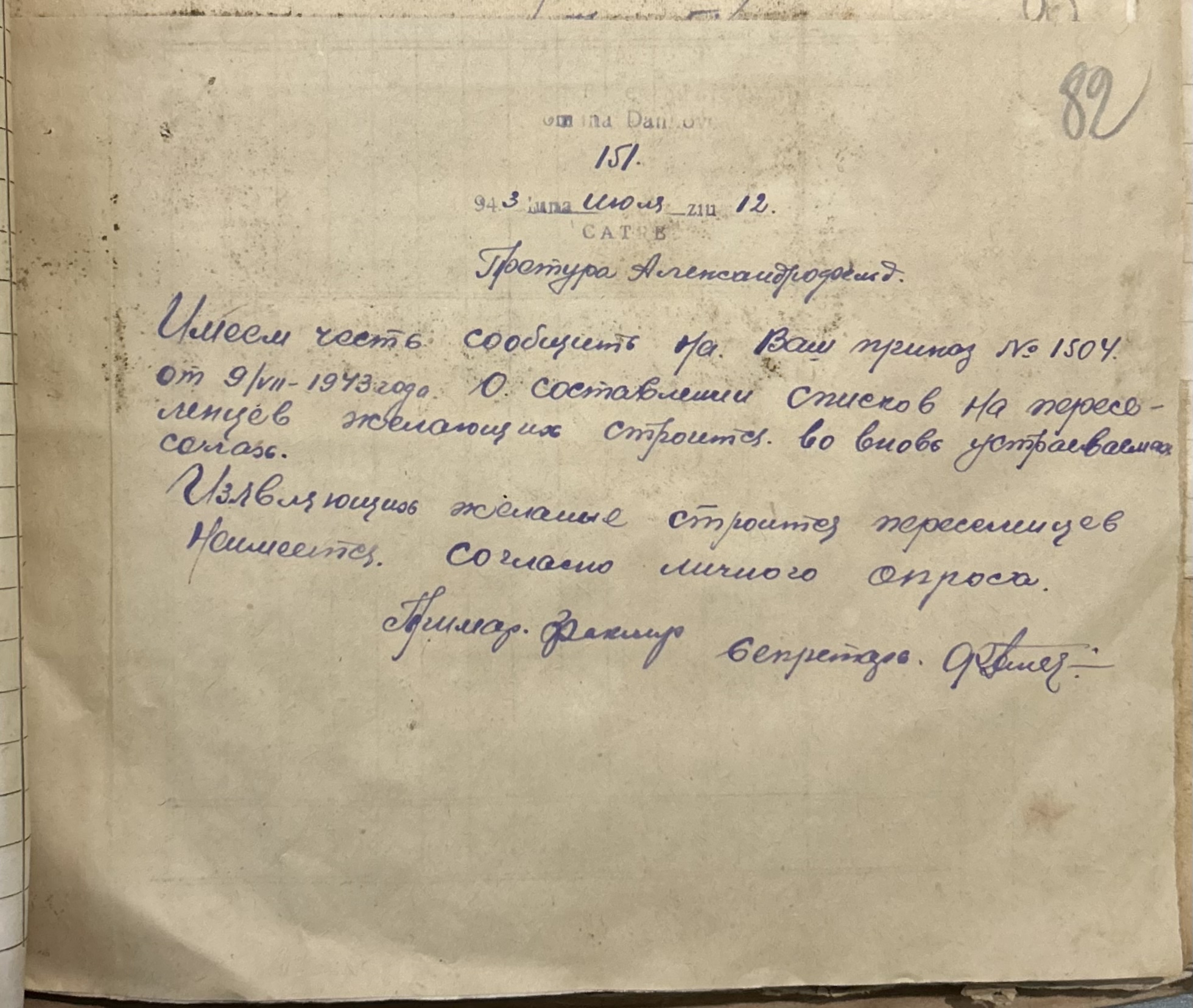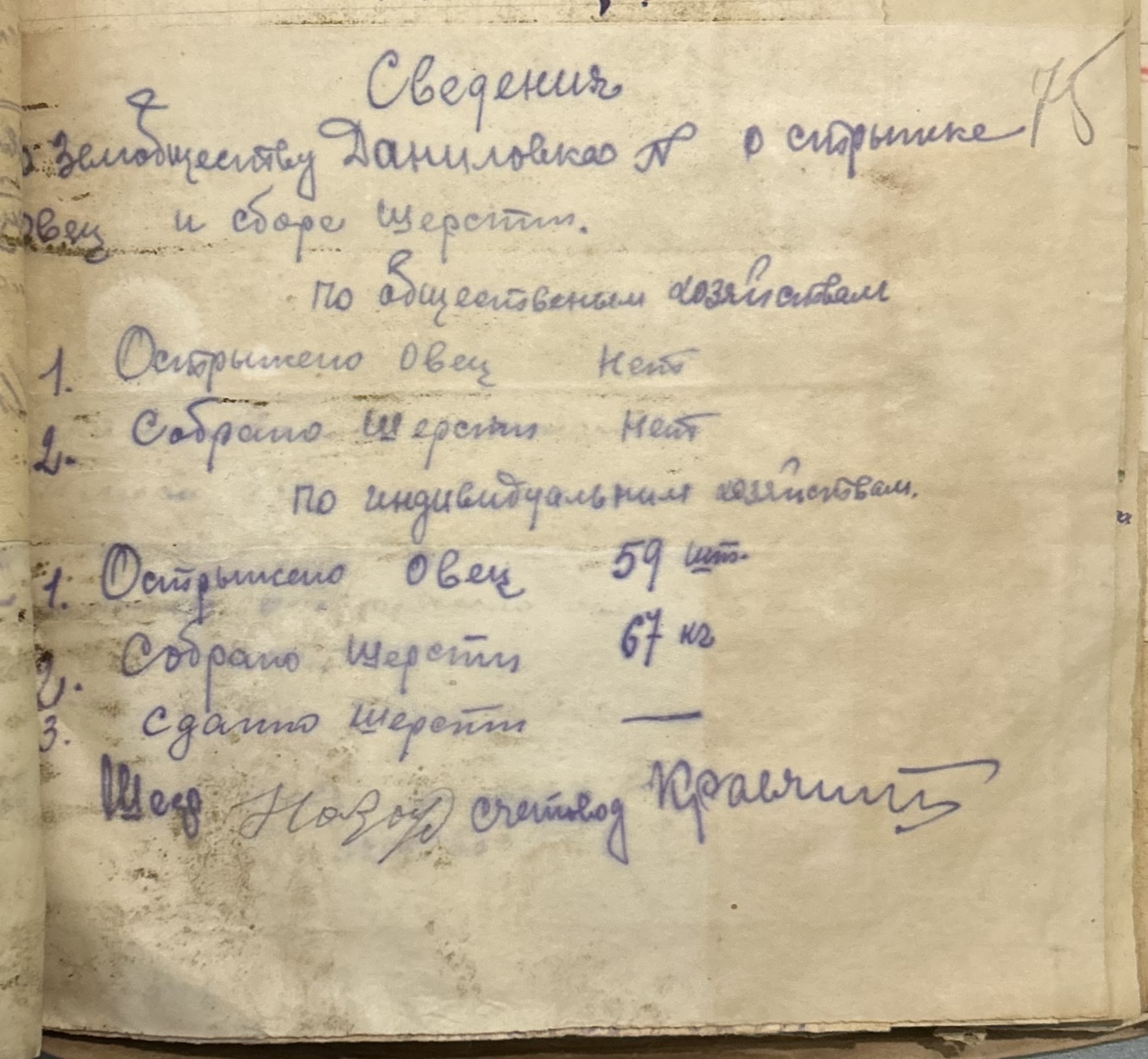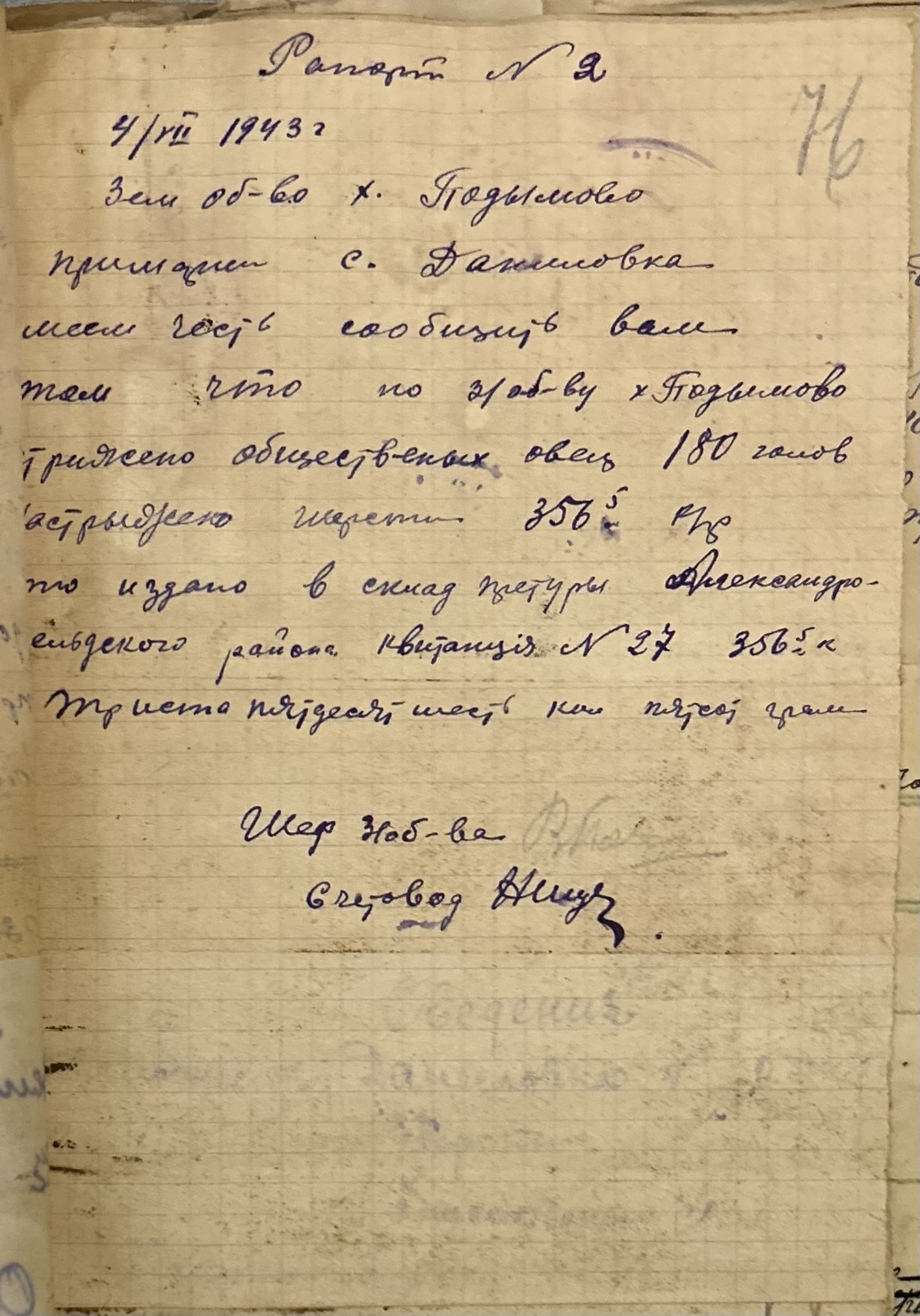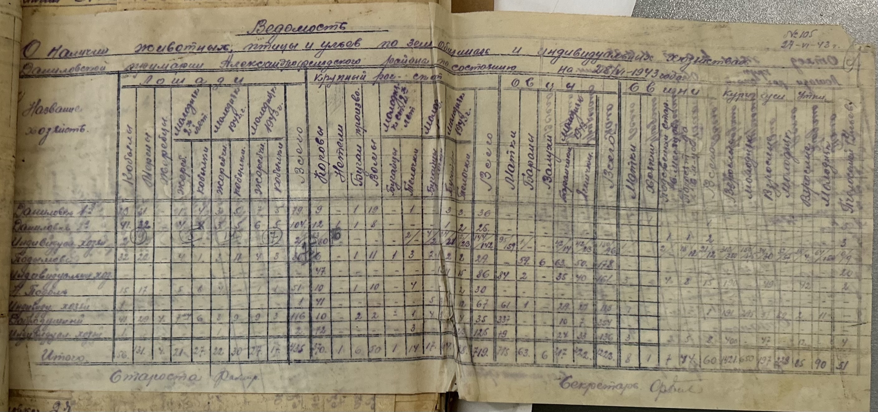• • • • Справа № 157 “Відомості про спеціалістів земельних товариств Александерфельдської претури, наявність тварин, птиці та вуликів”