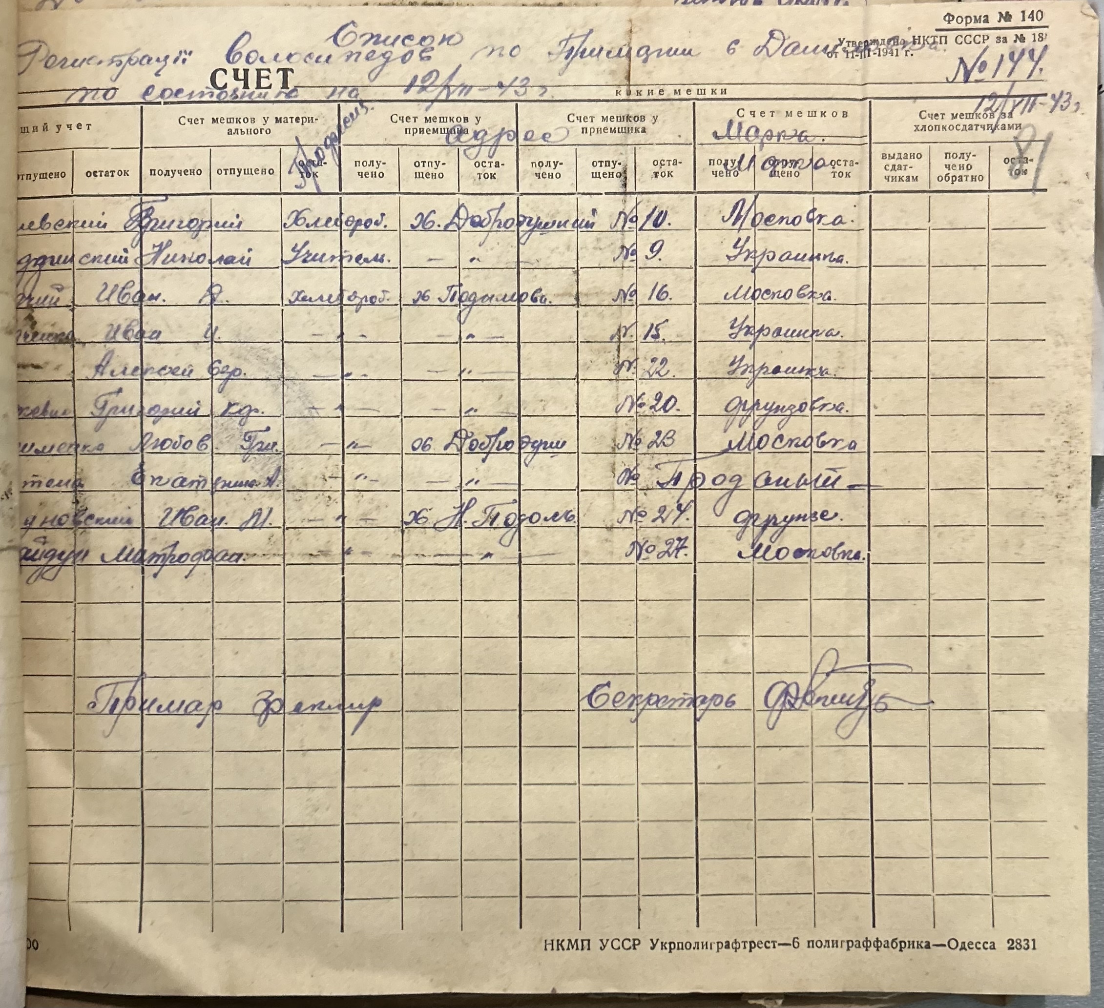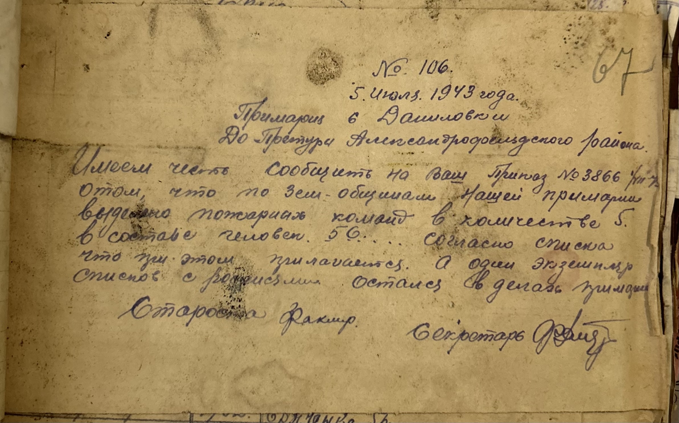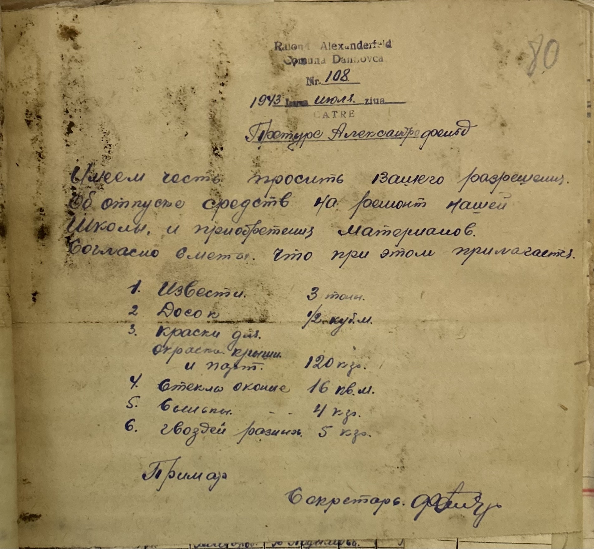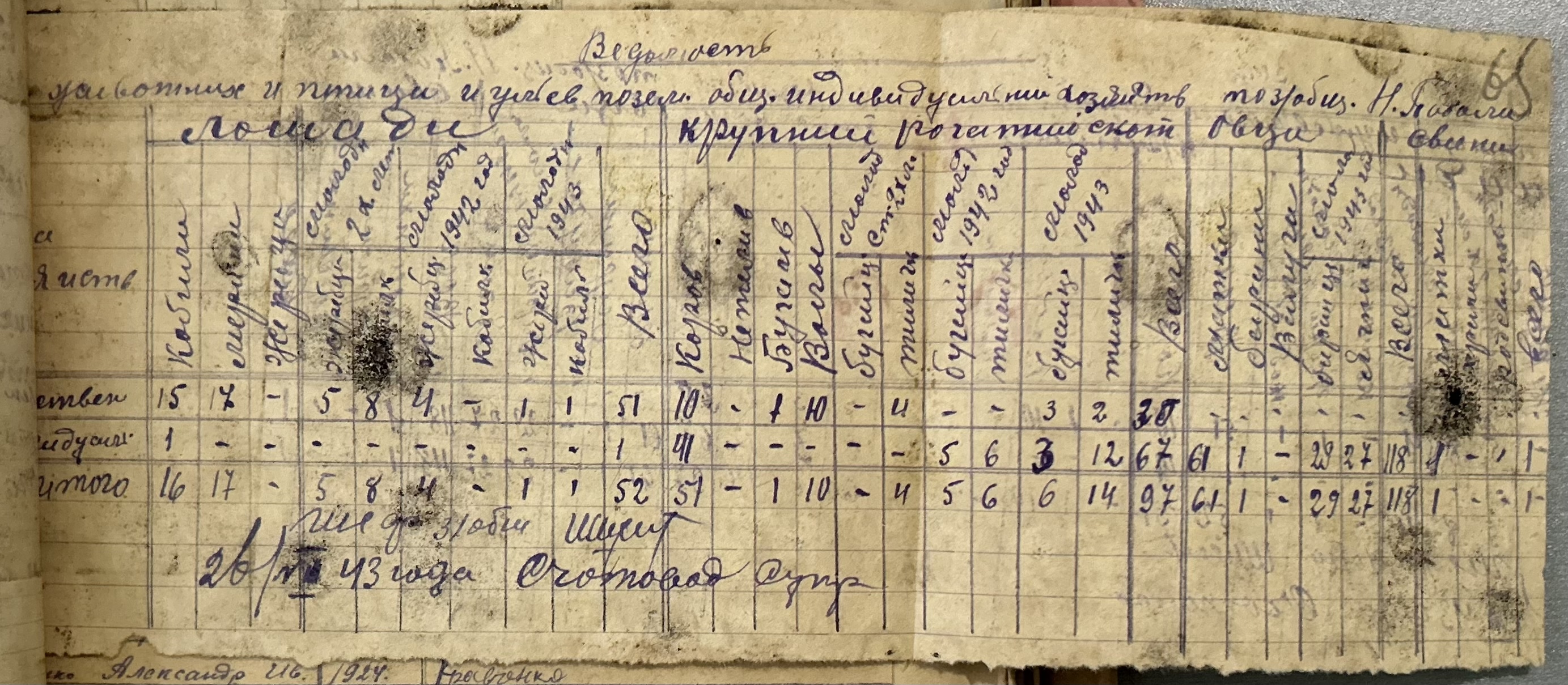 • • • • Справа № 157 “Відомості про спеціалістів земельних товариств Александерфельдської претури, наявність тварин, птиці та вуликів”