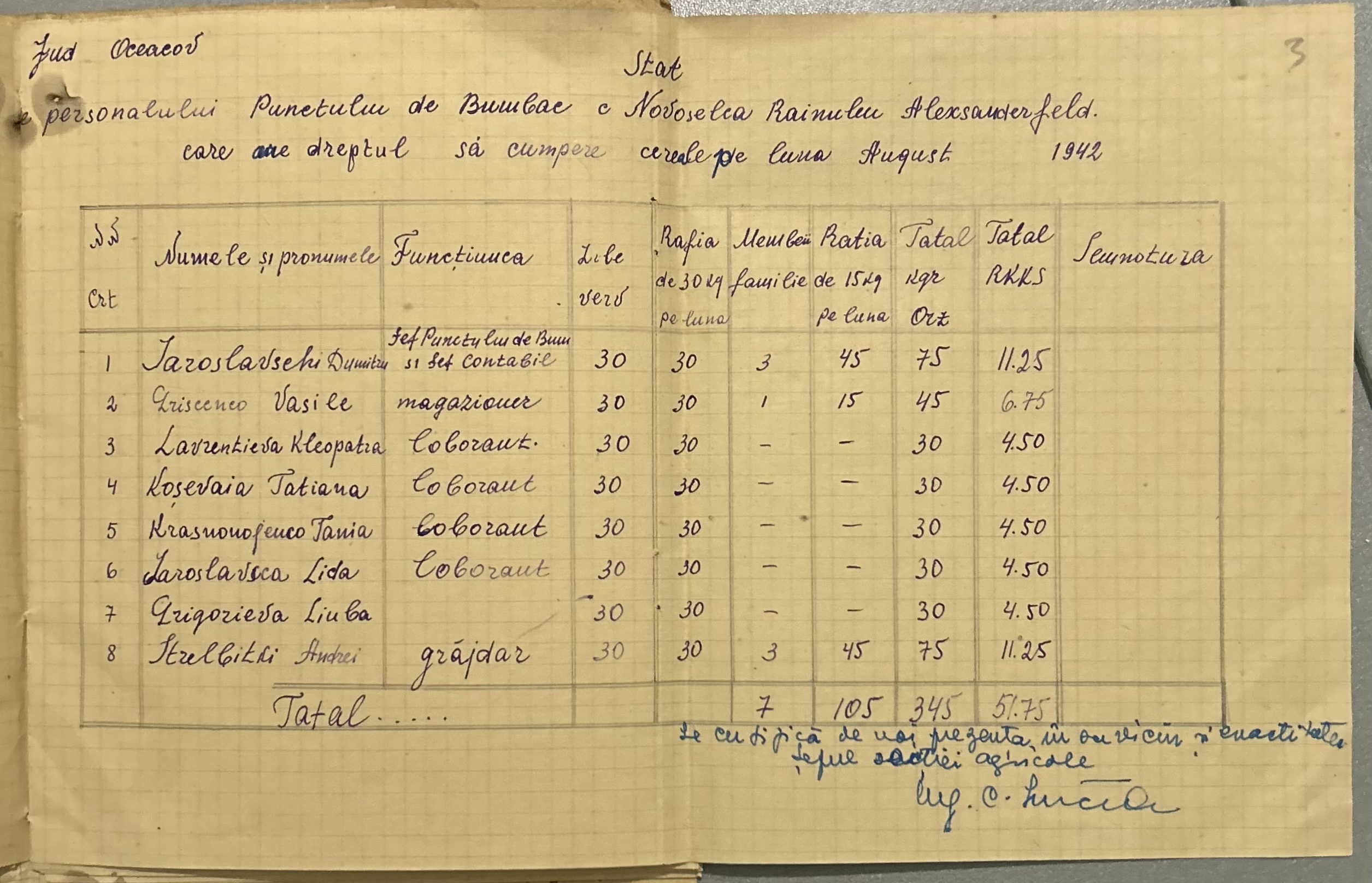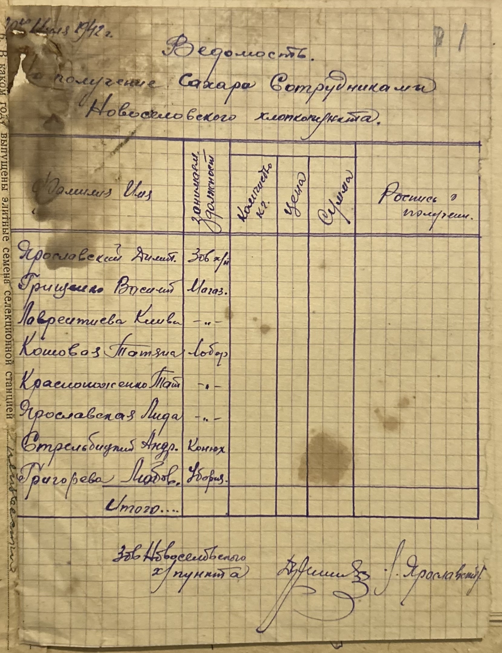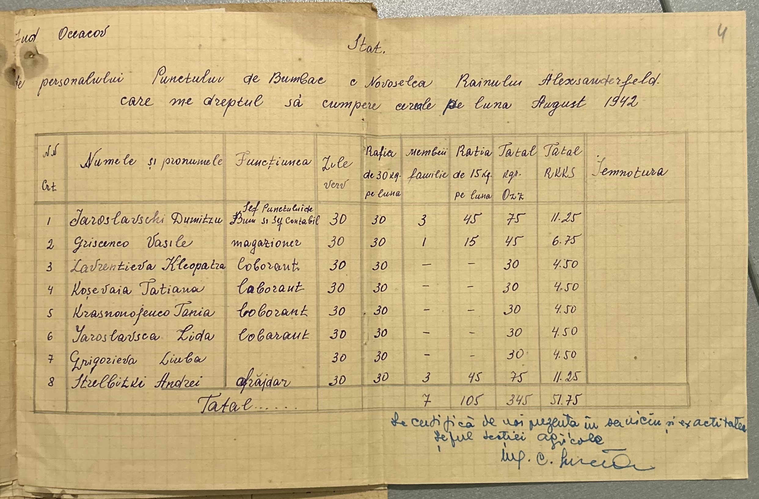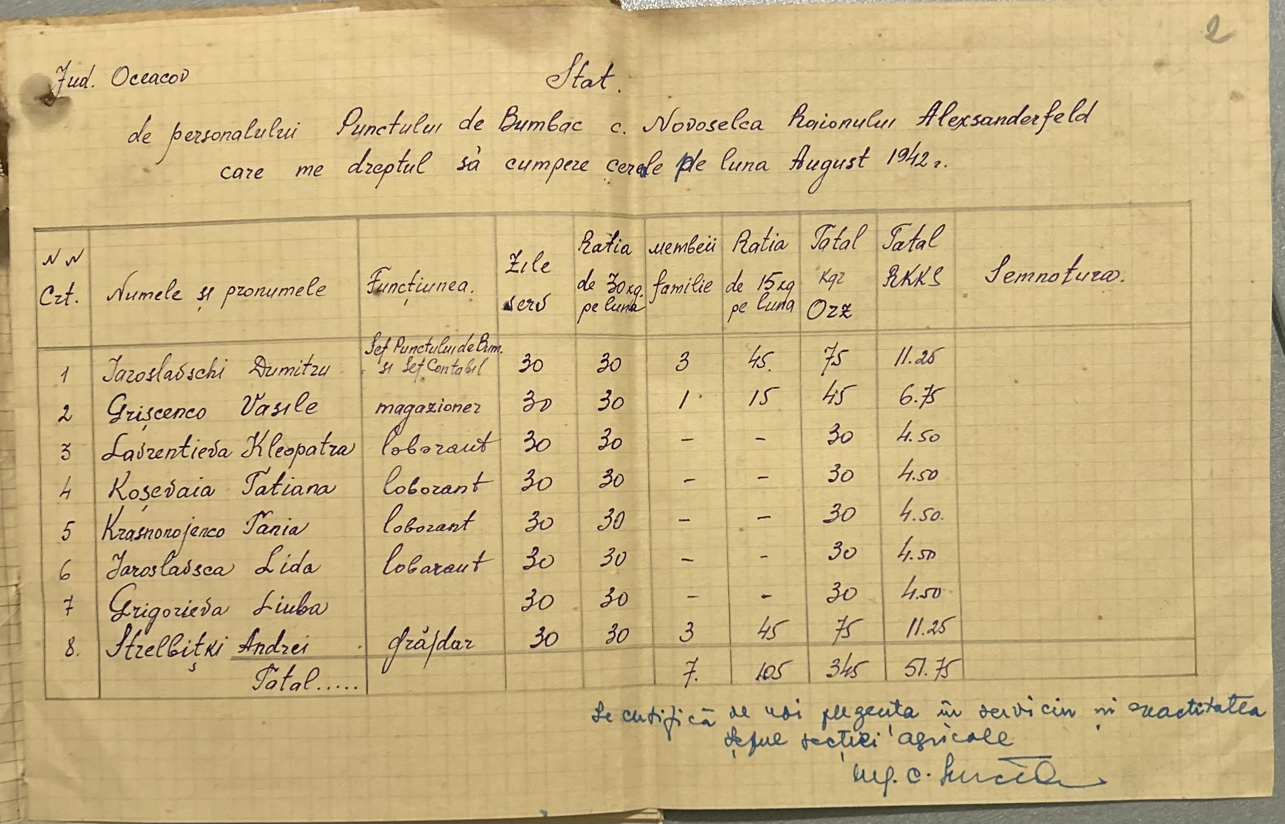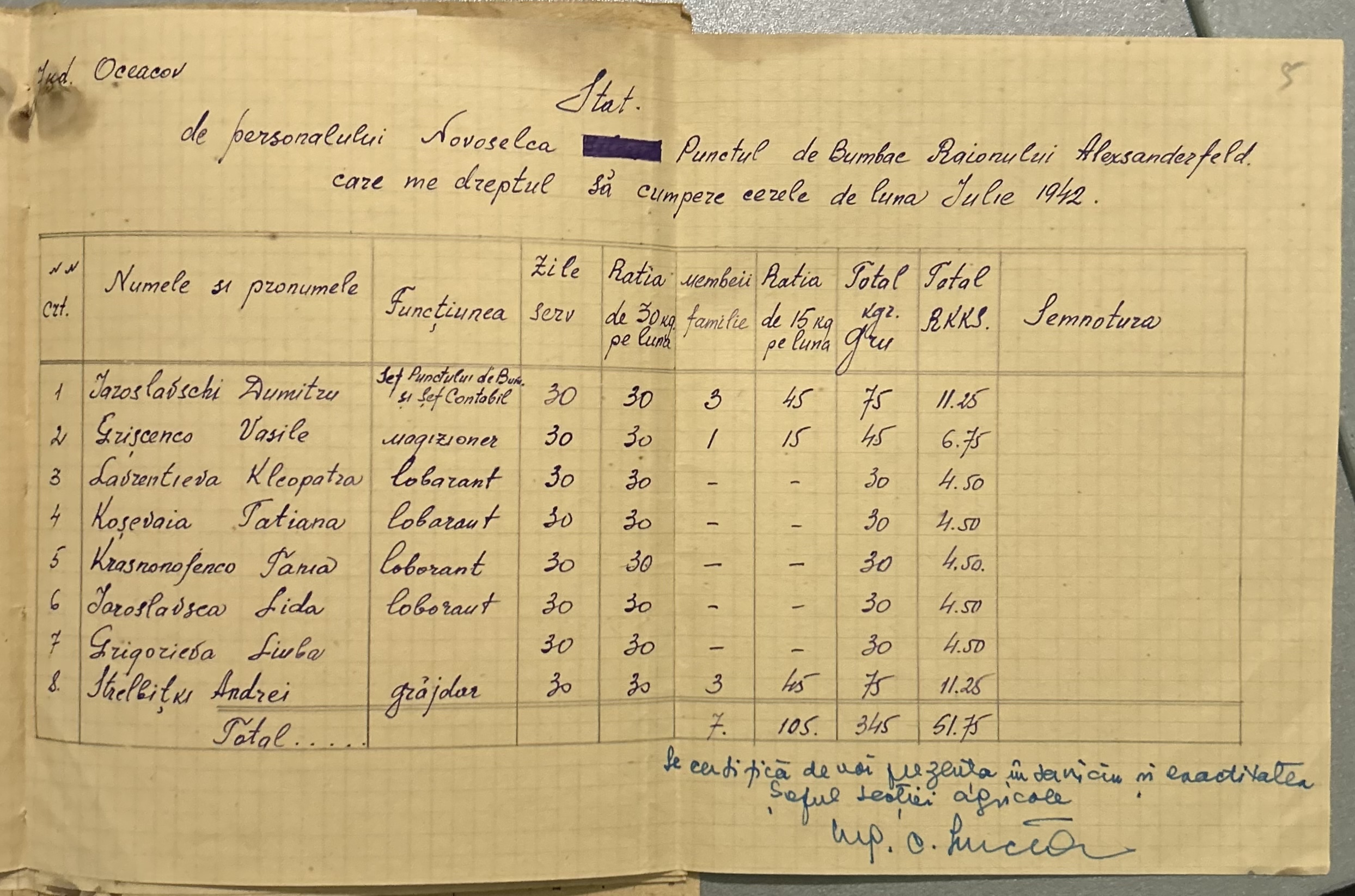 • • • • Справа № 4 “Списки працівників Новоселівського бавовняного пункту на отримання цукру за липень 1942 року”