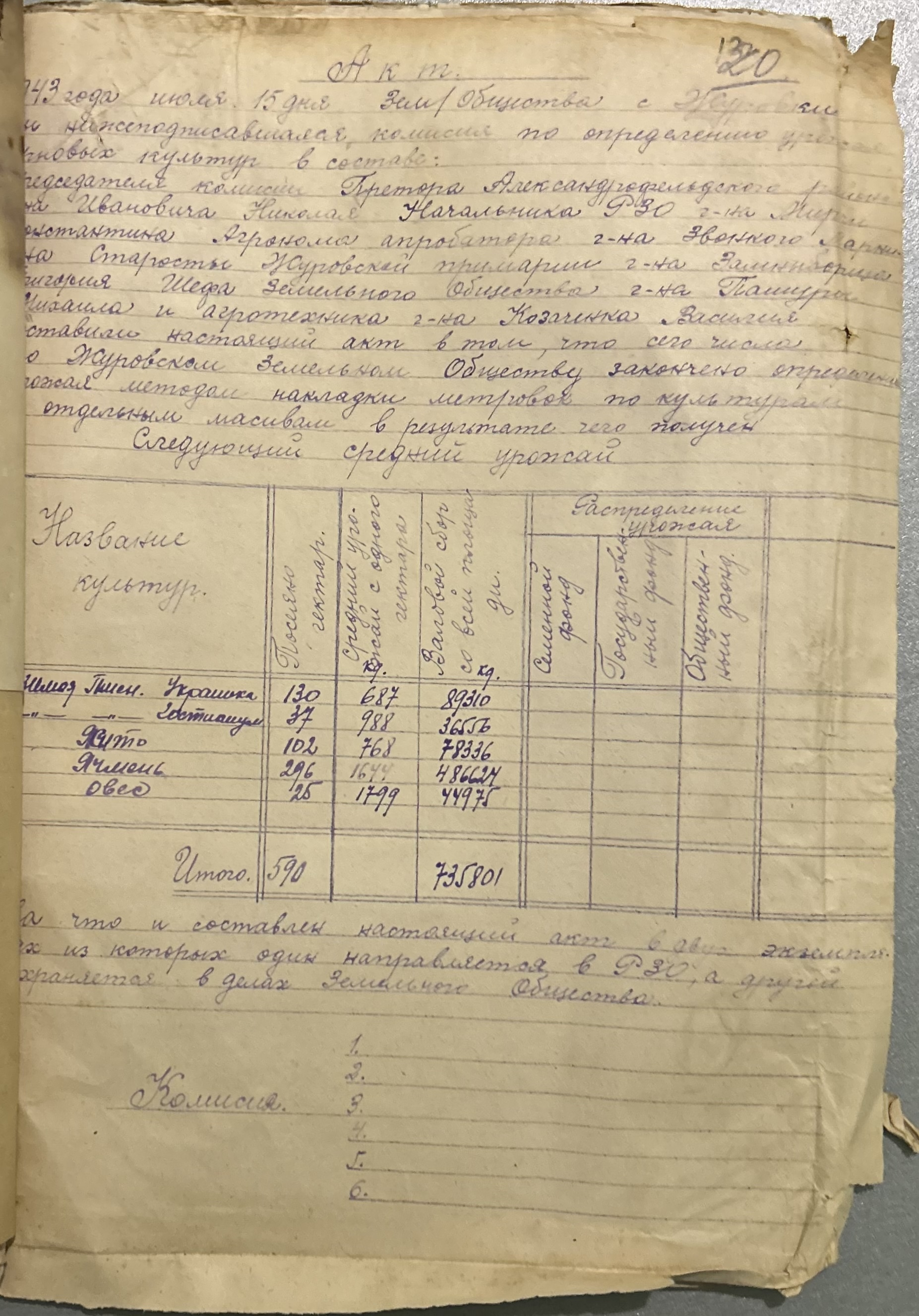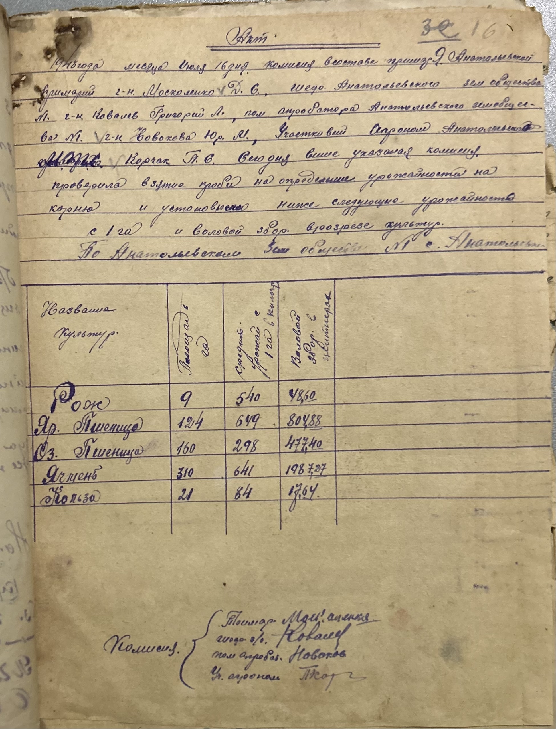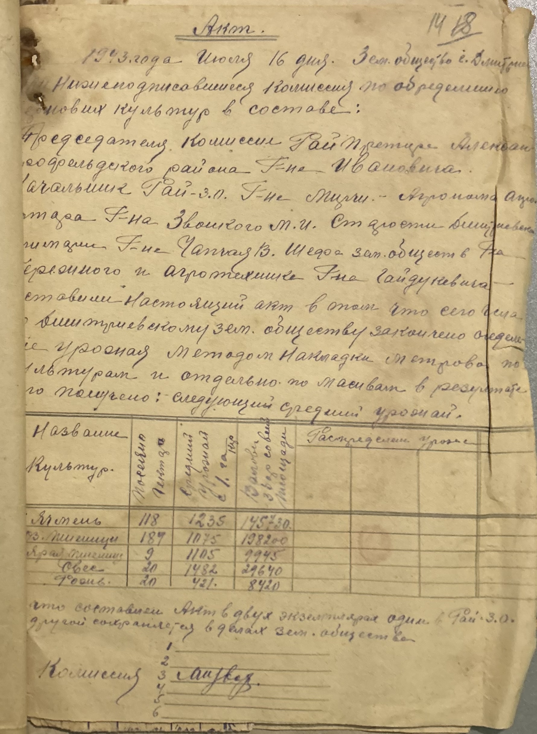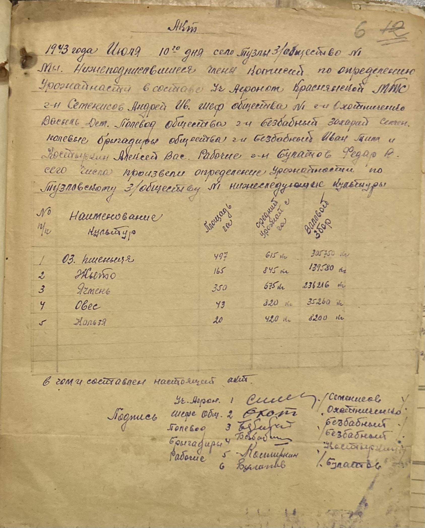 • • • • Справа № 6 “Акти визначення врожайності зернових культур у земельних товариствах Александерфельдського району”