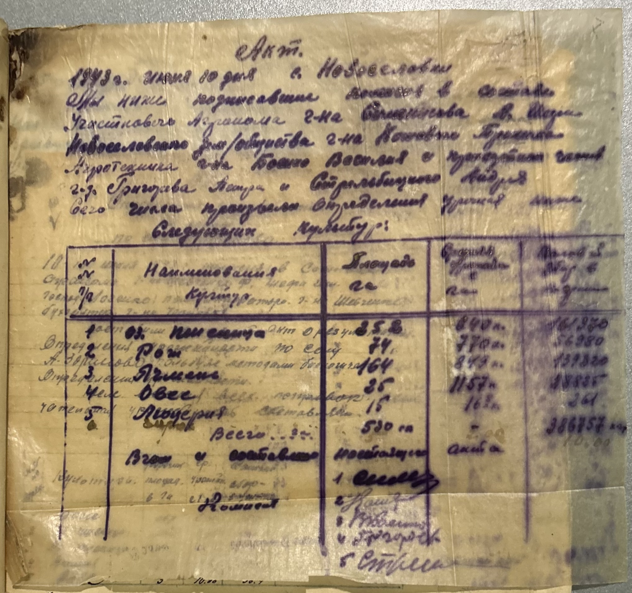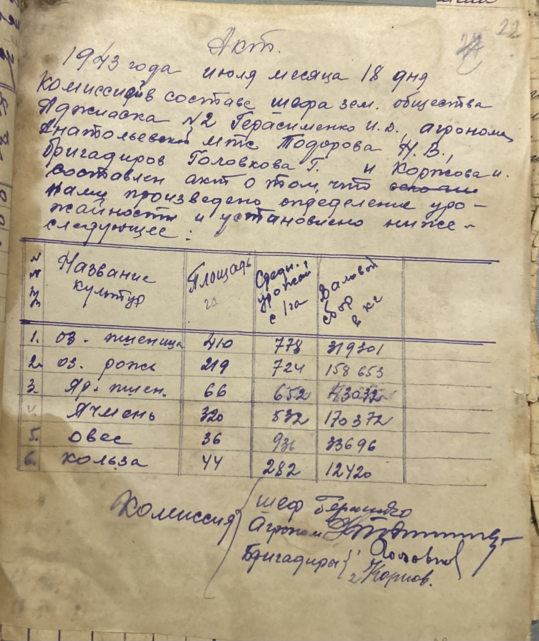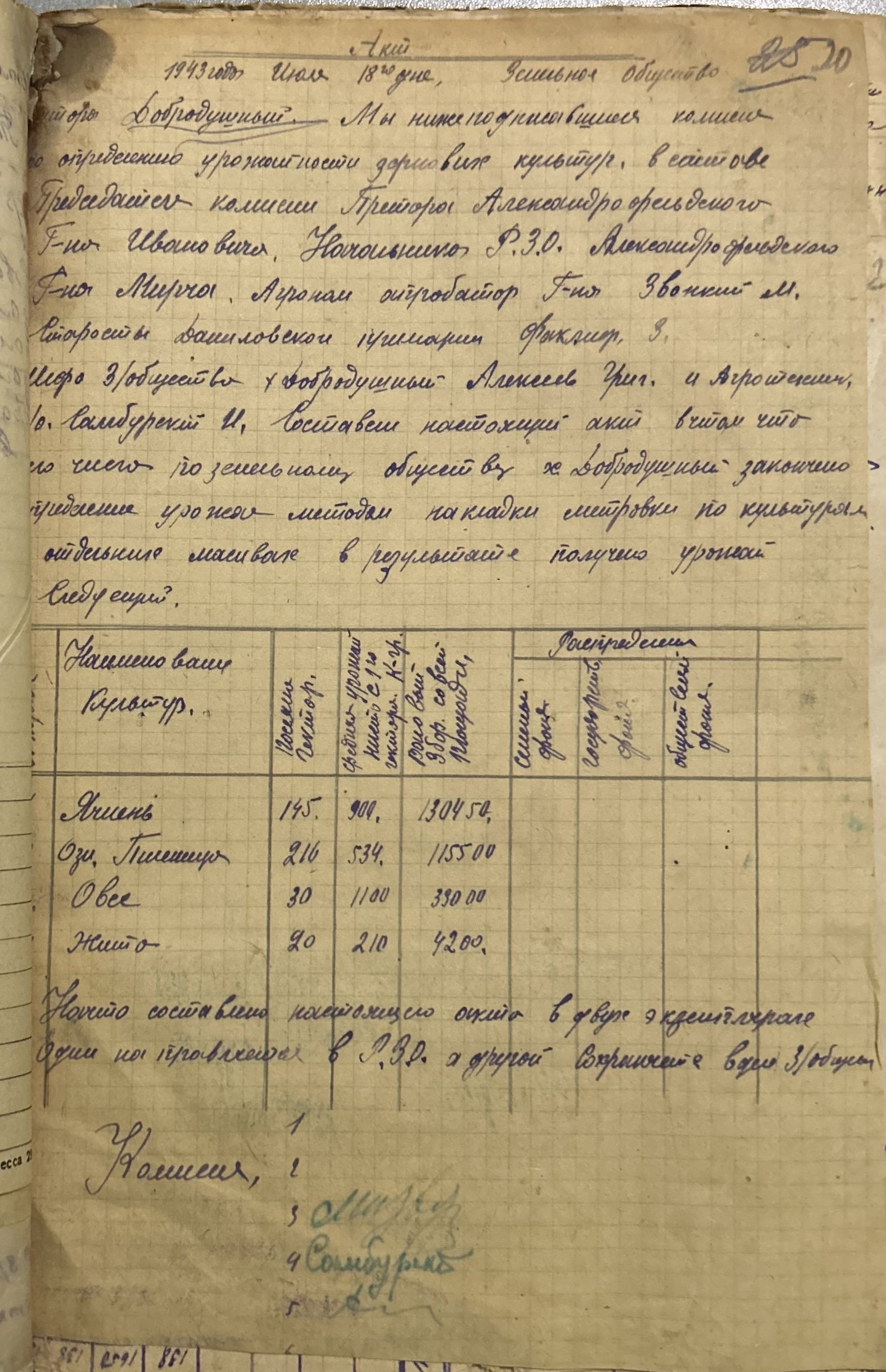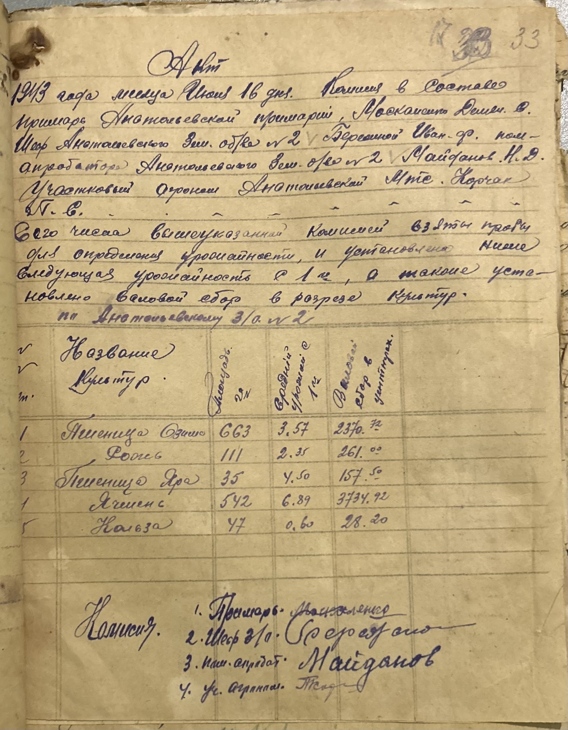• • • • Справа № 6 “Акти визначення врожайності зернових культур у земельних товариствах Александерфельдського району”