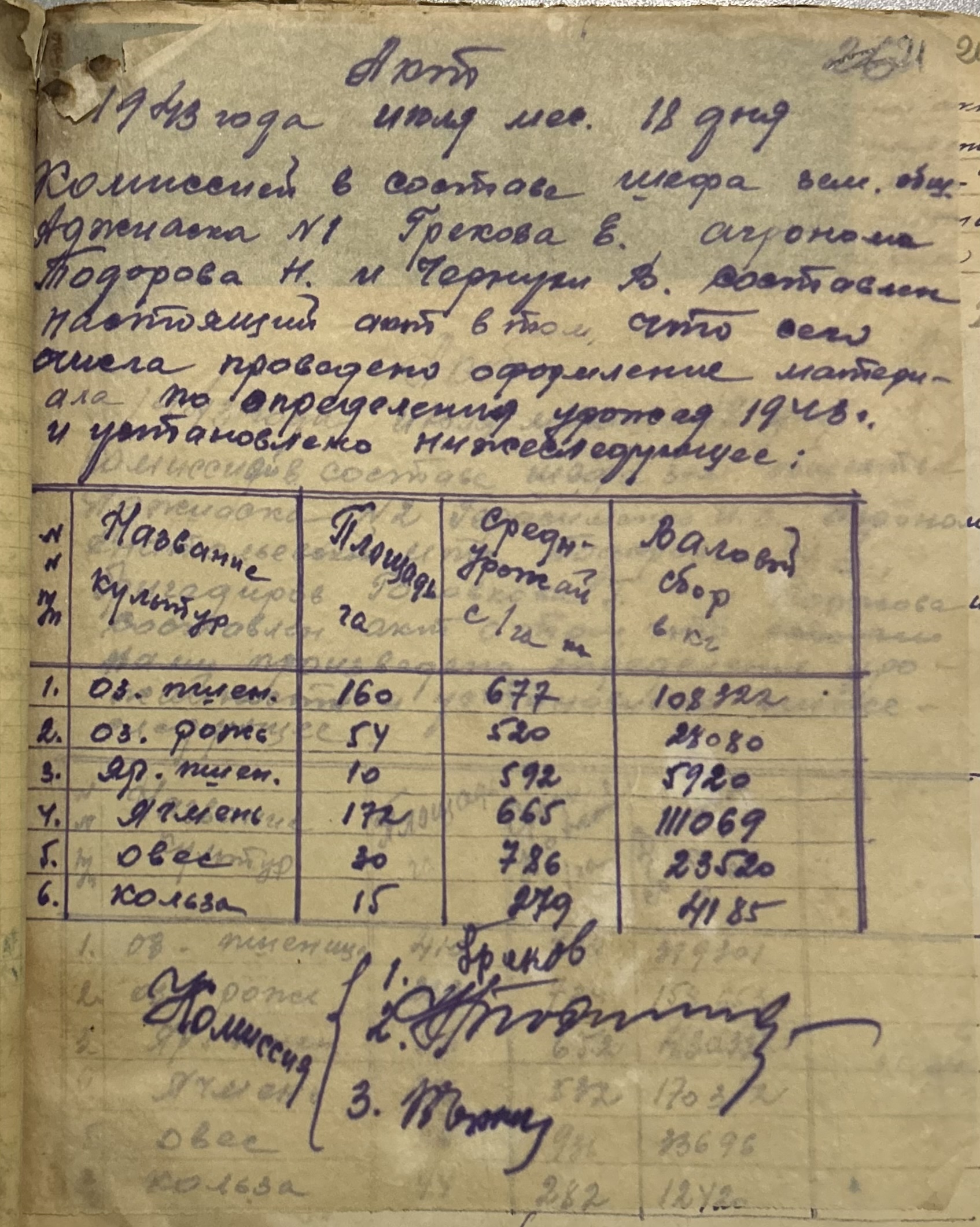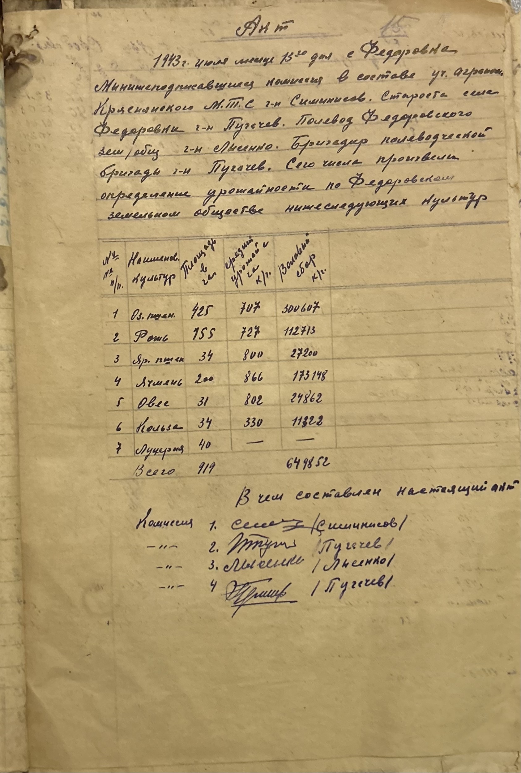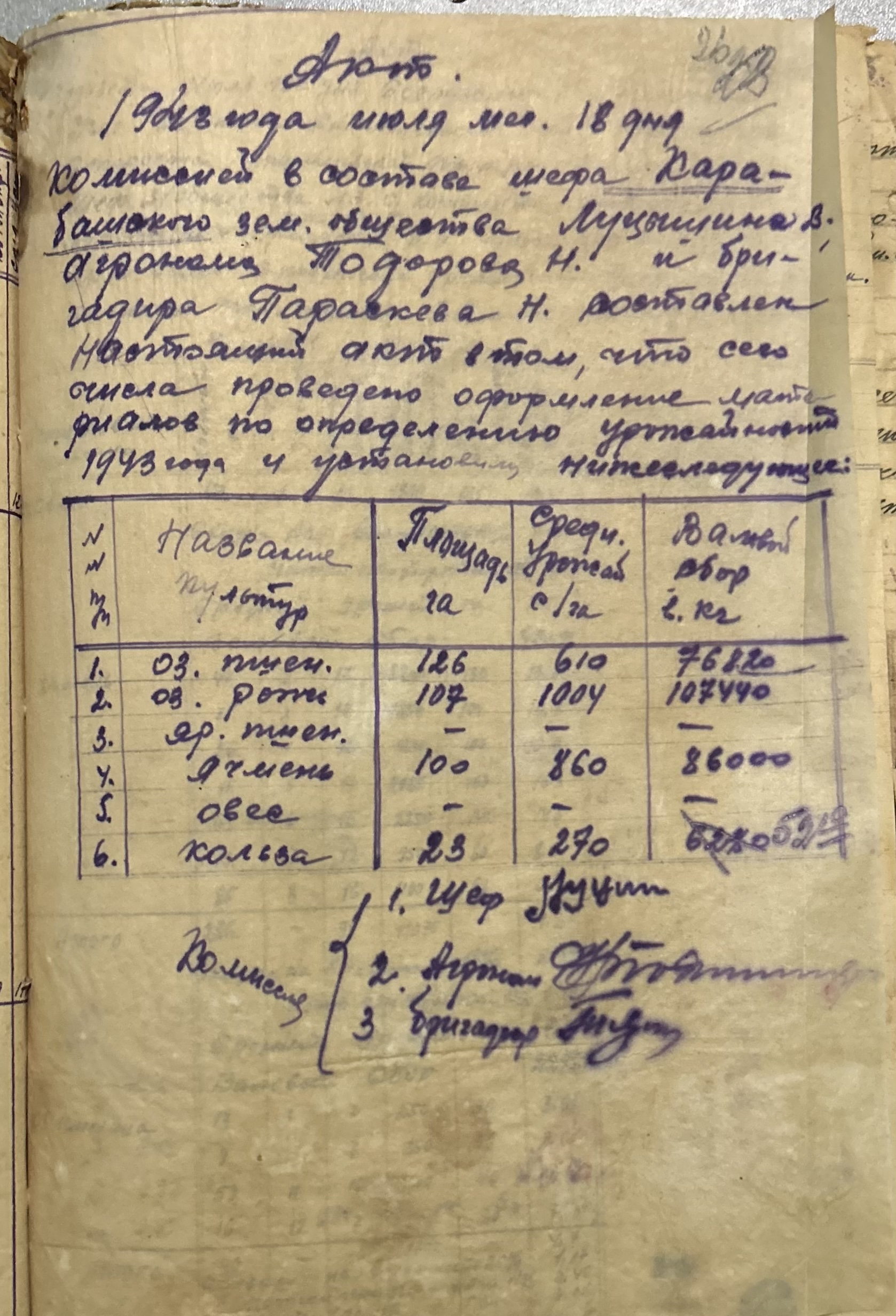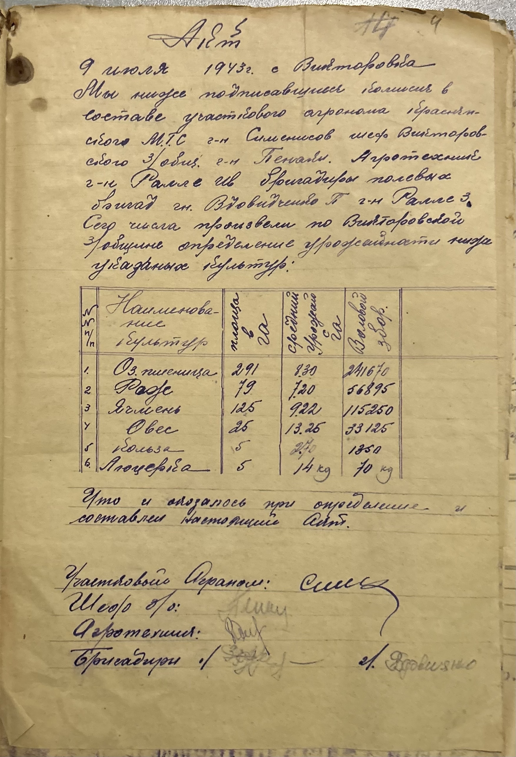 • • • • Справа № 6 “Акти визначення врожайності зернових культур у земельних товариствах Александерфельдського району”