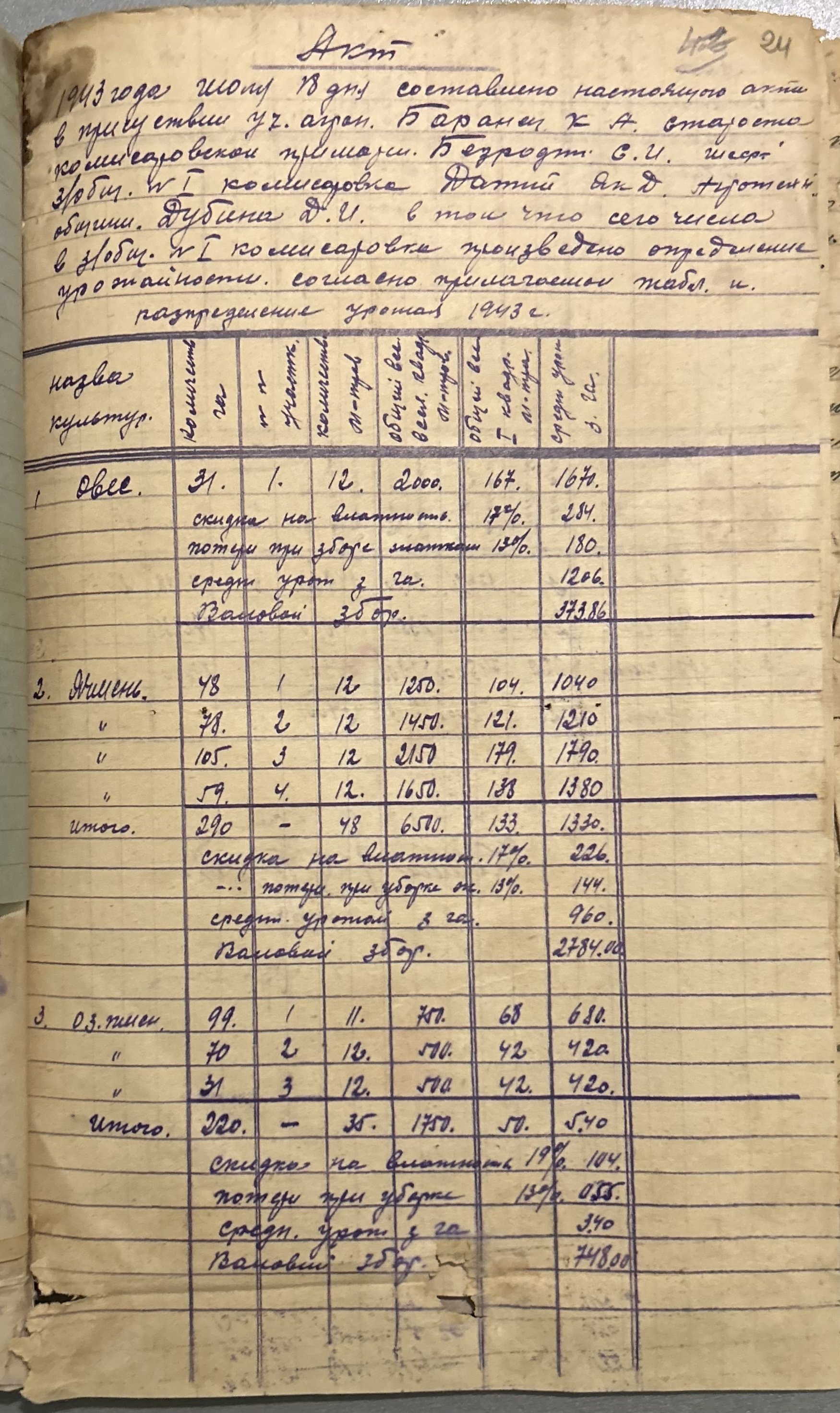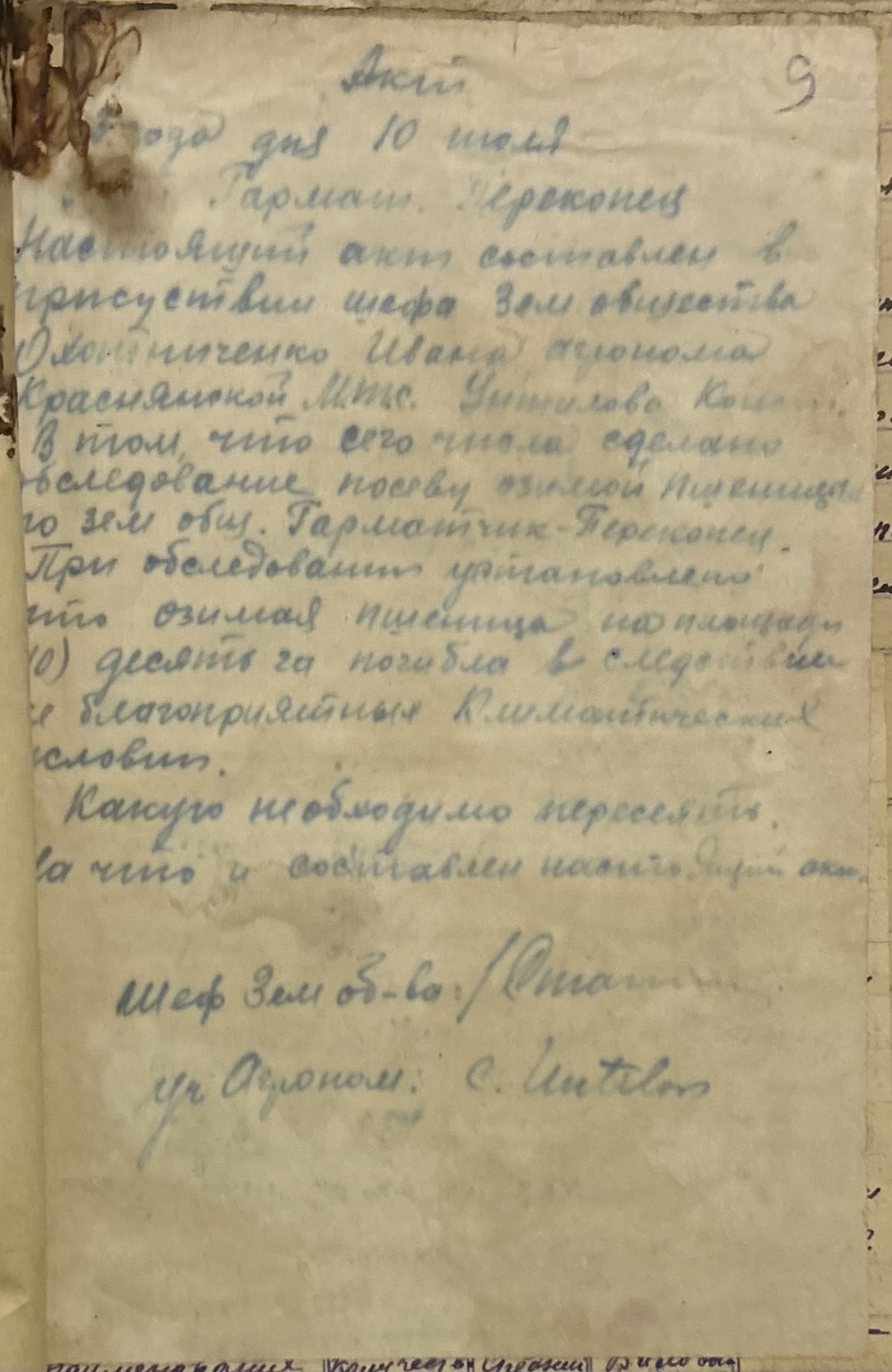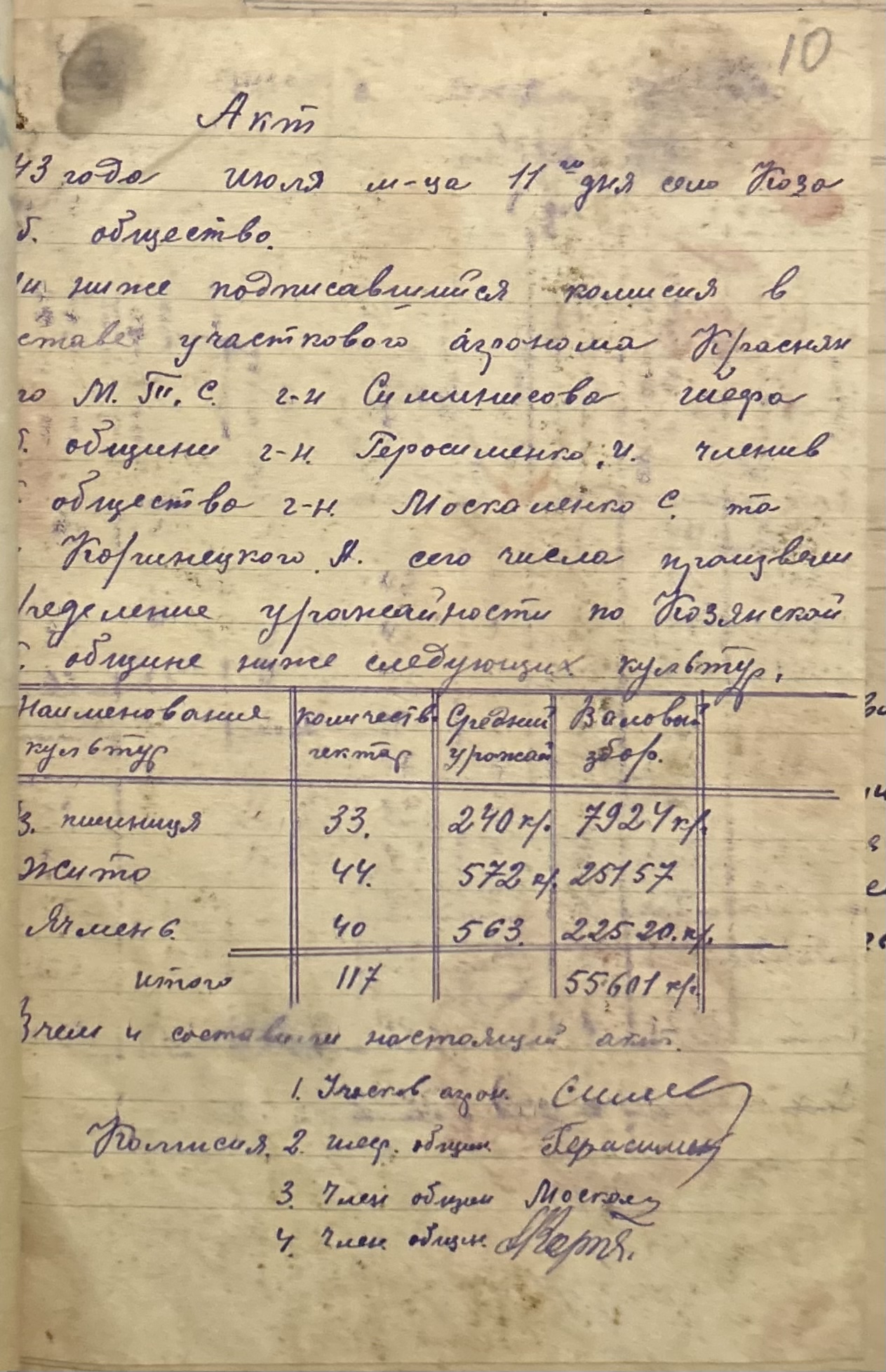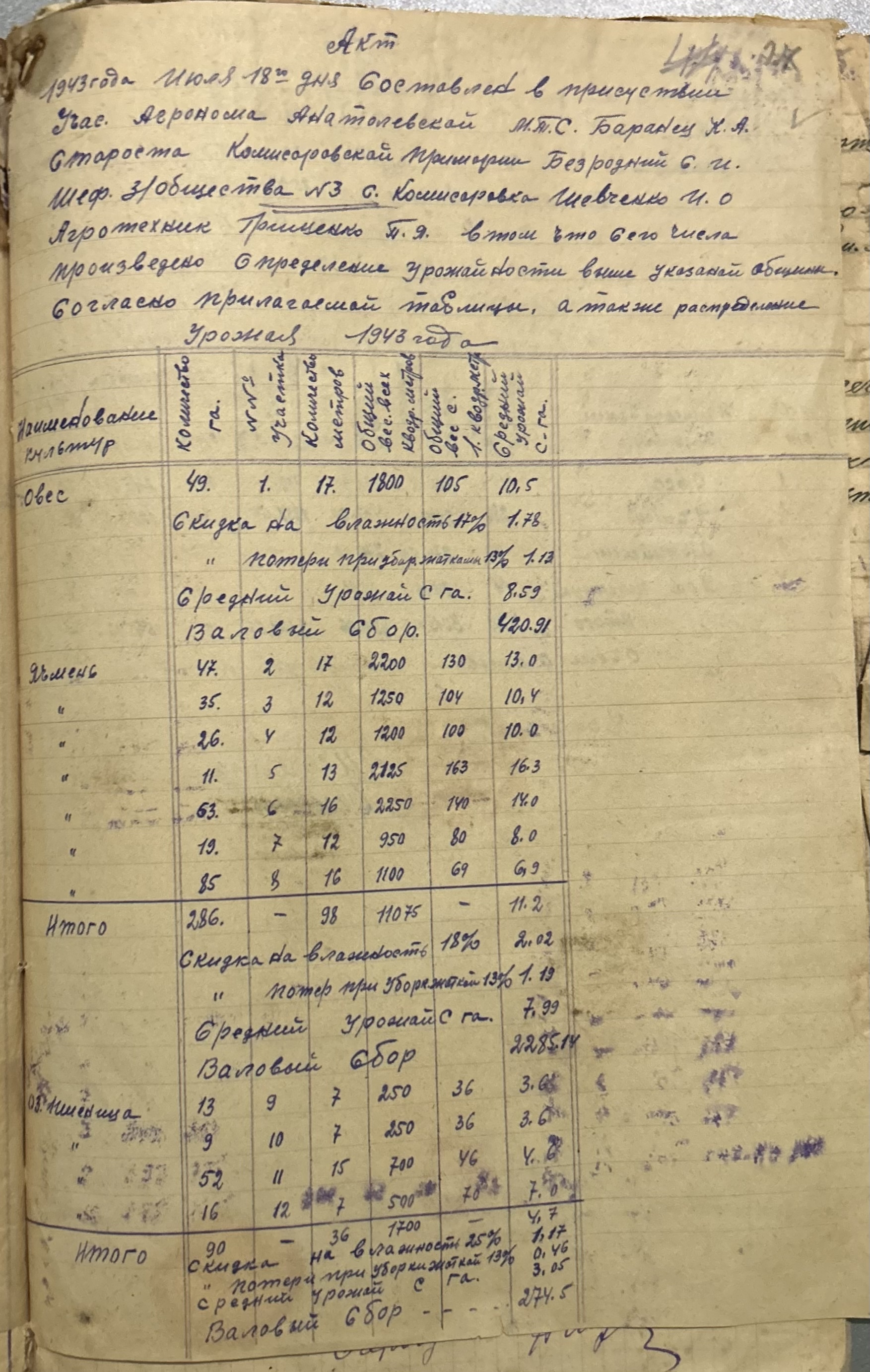 • • • • Справа № 6 “Акти визначення врожайності зернових культур у земельних товариствах Александерфельдського району”