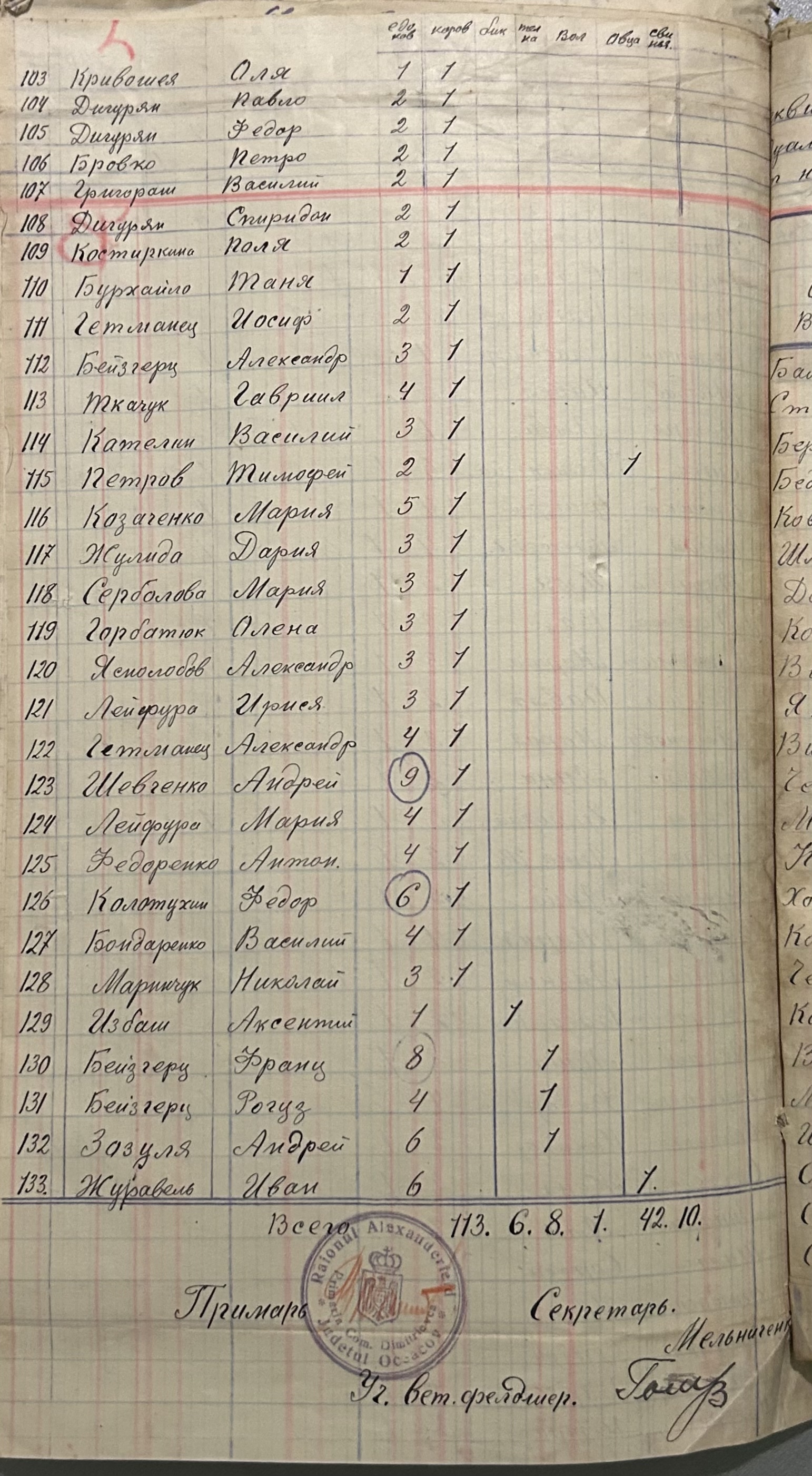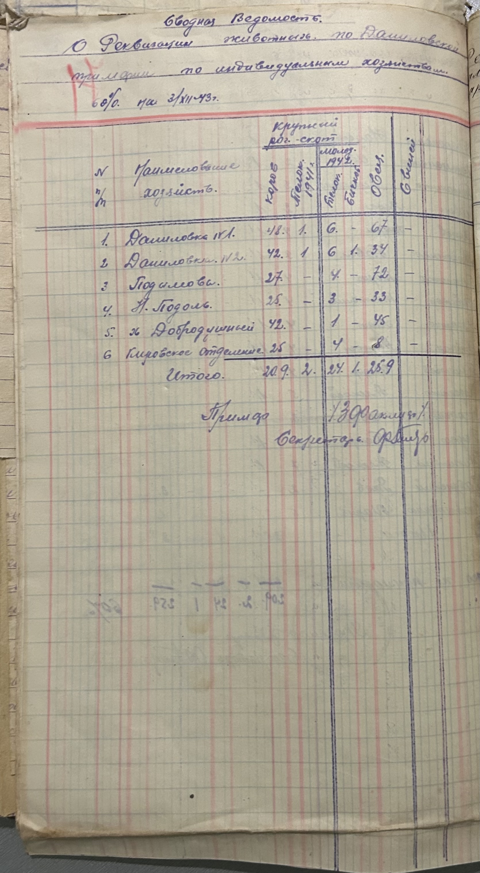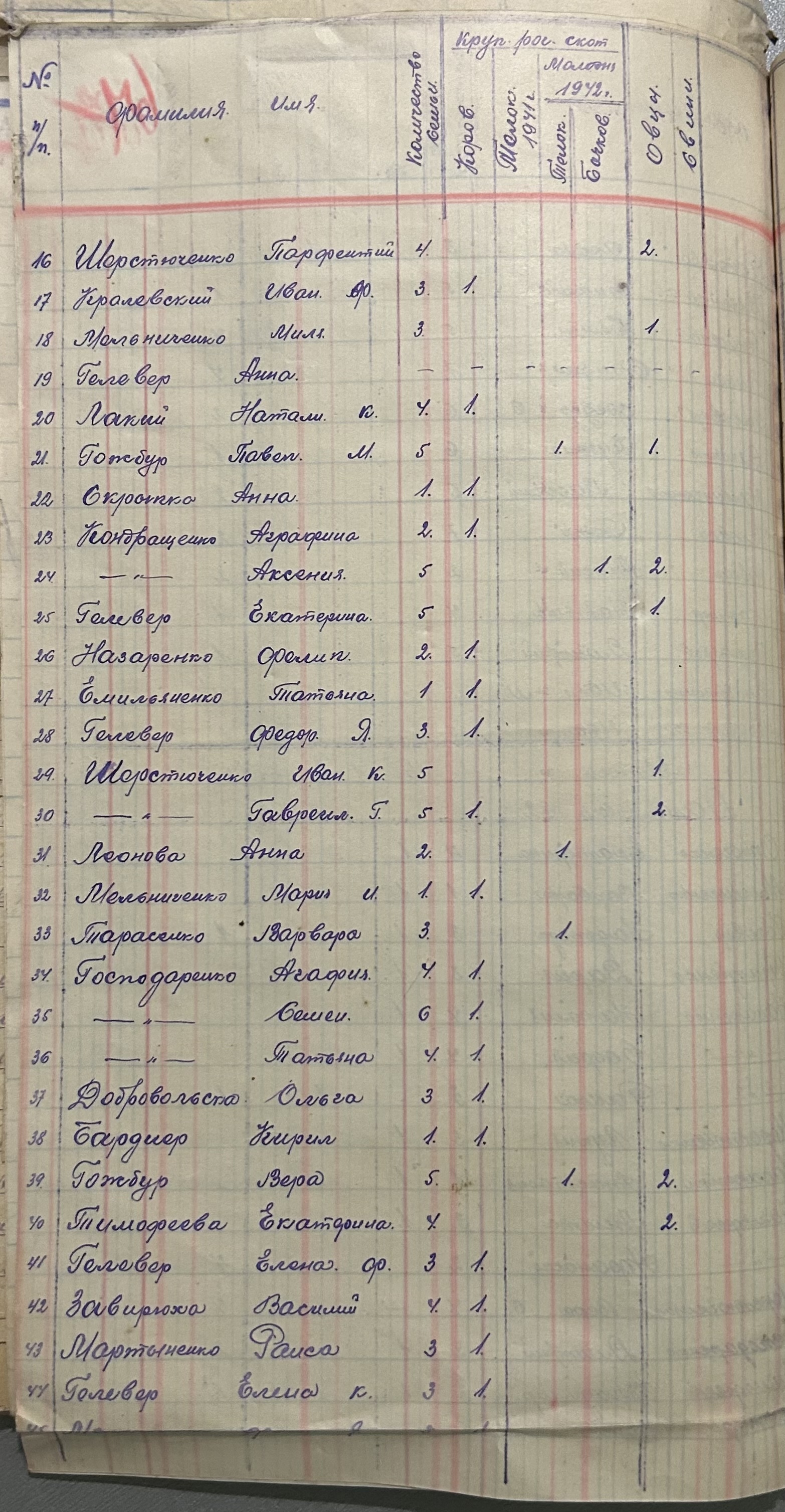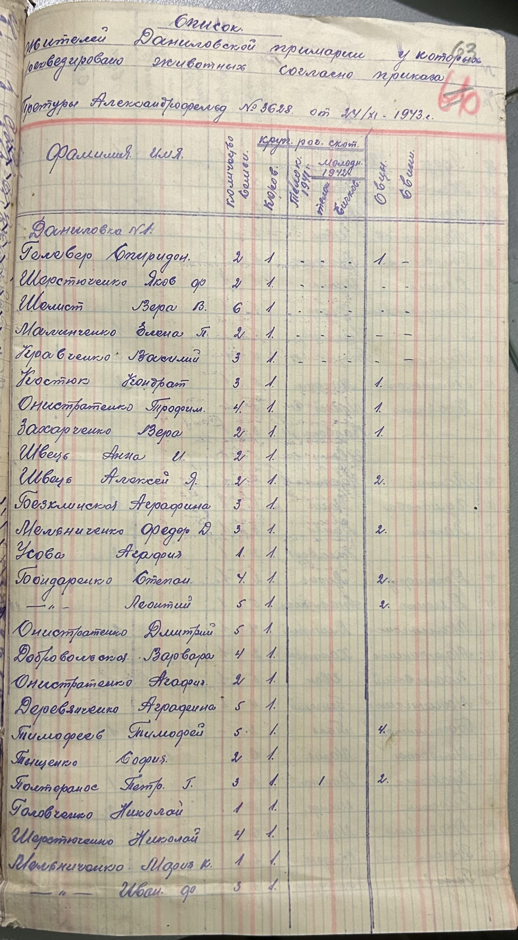 • • • • Справа № 8 “Списки реквізованої великої рогатої худоби по земельним товариствам Александерфельдського району за 1943 рік”
