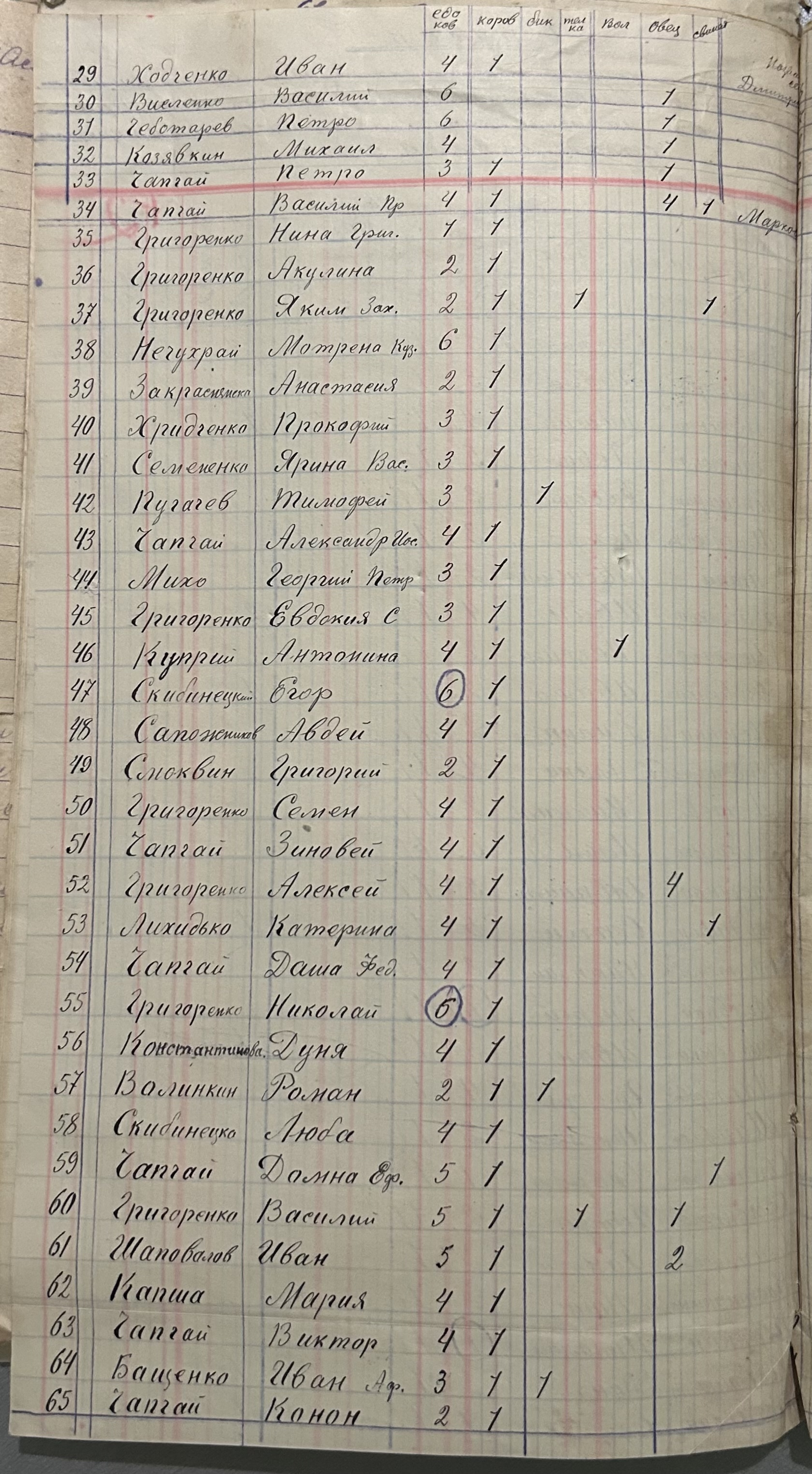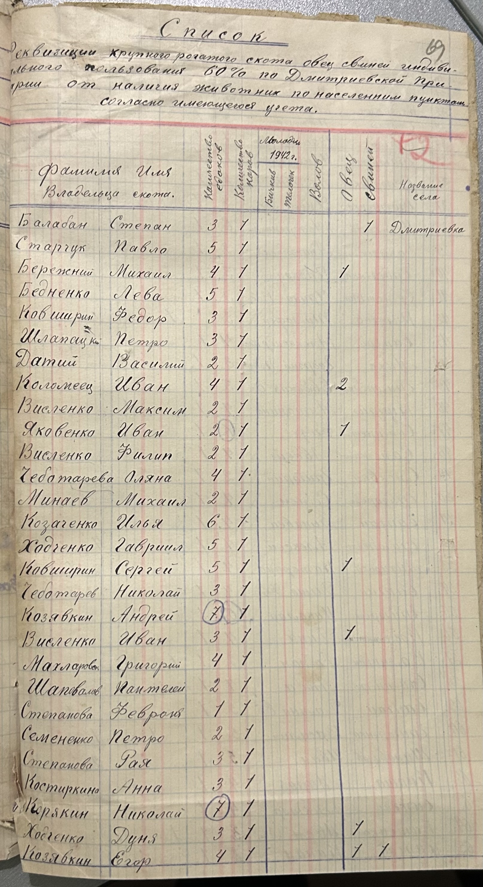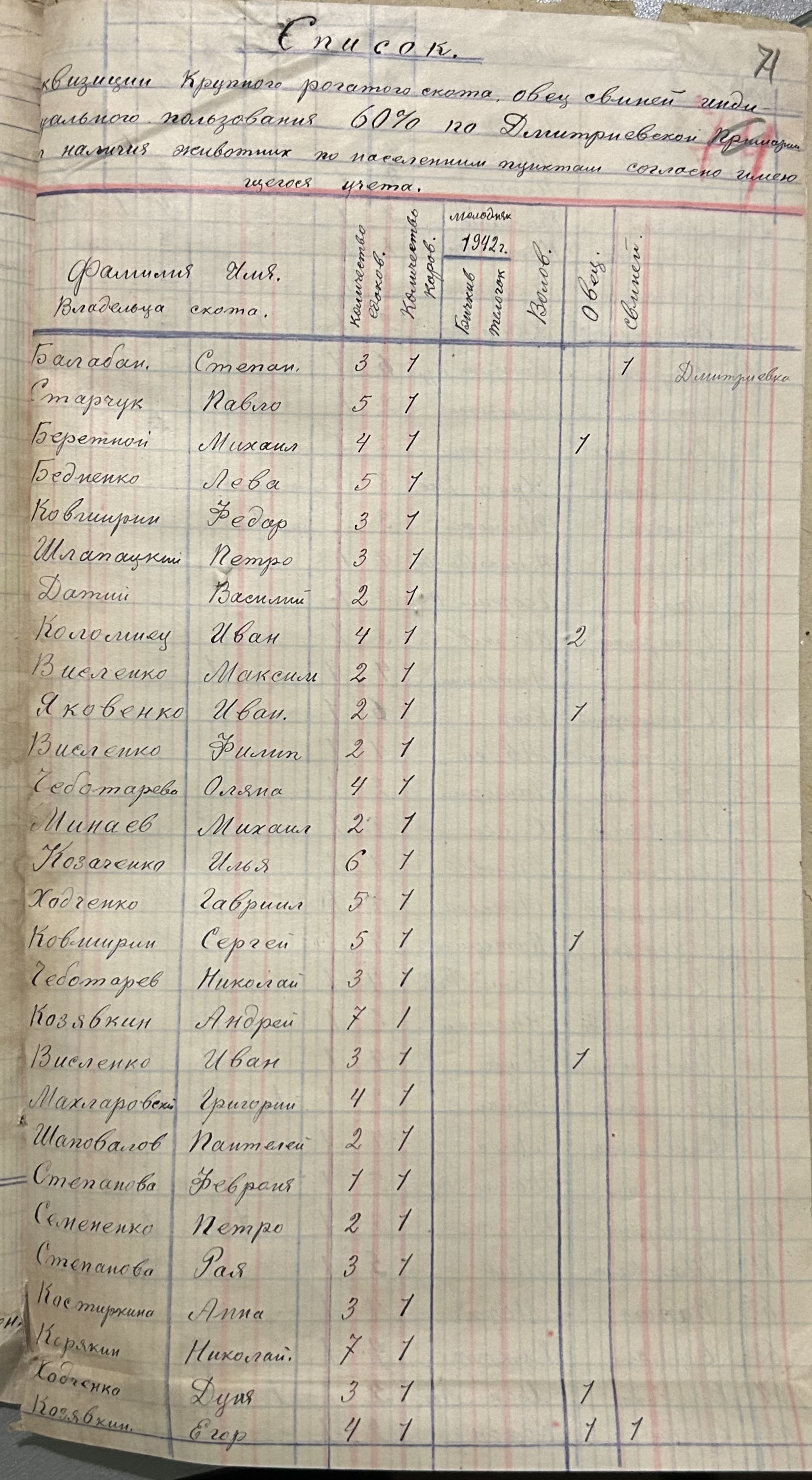 • • • • Справа № 8 “Списки реквізованої великої рогатої худоби по земельним товариствам Александерфельдського району за 1943 рік”