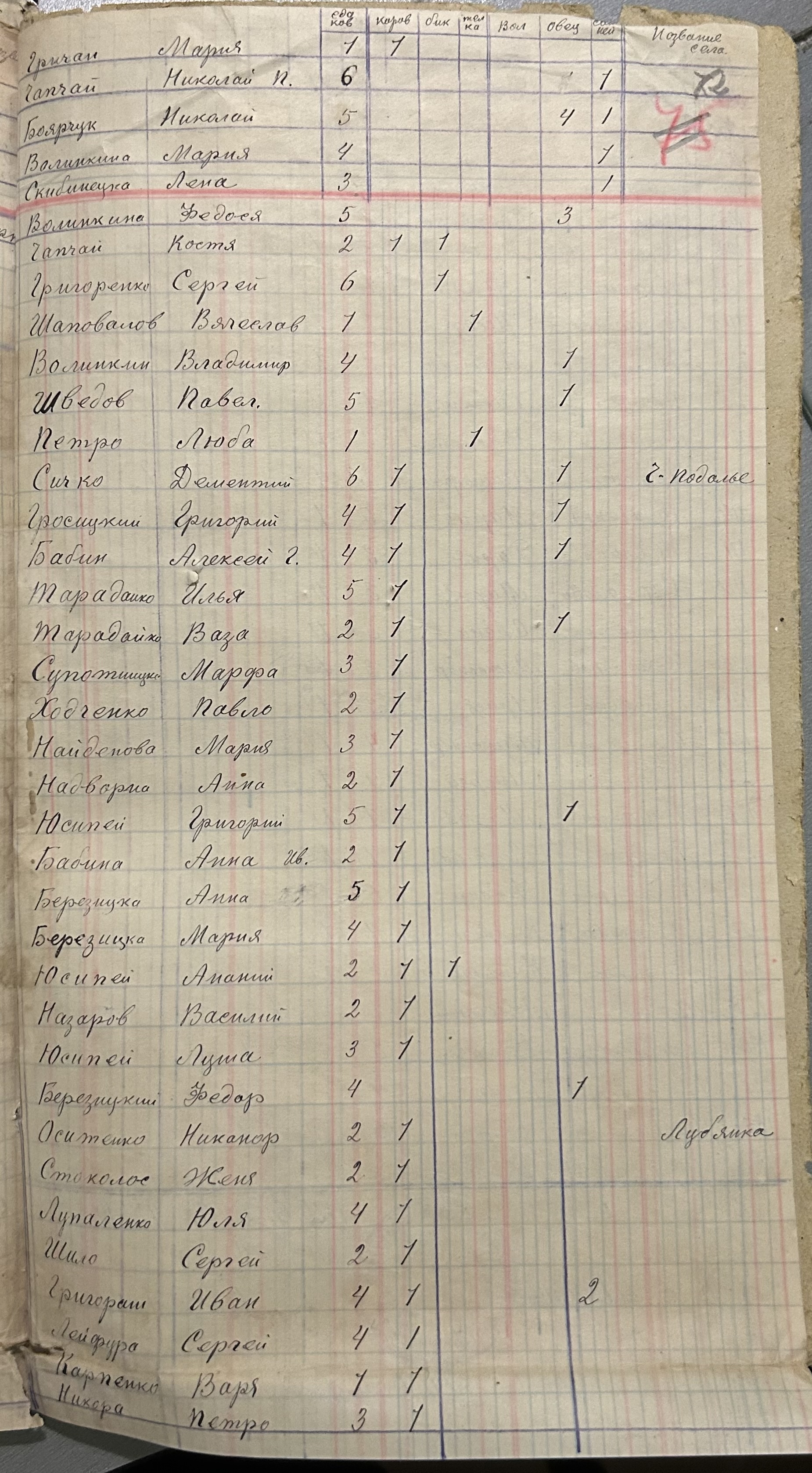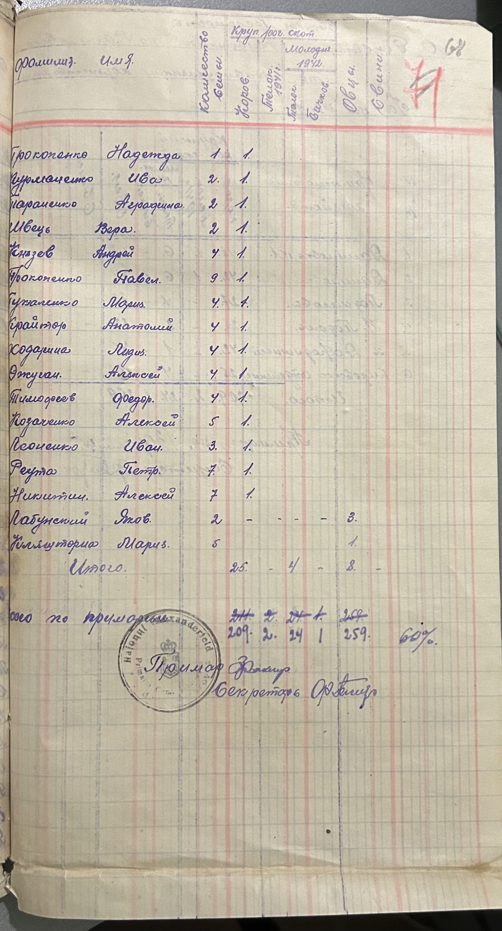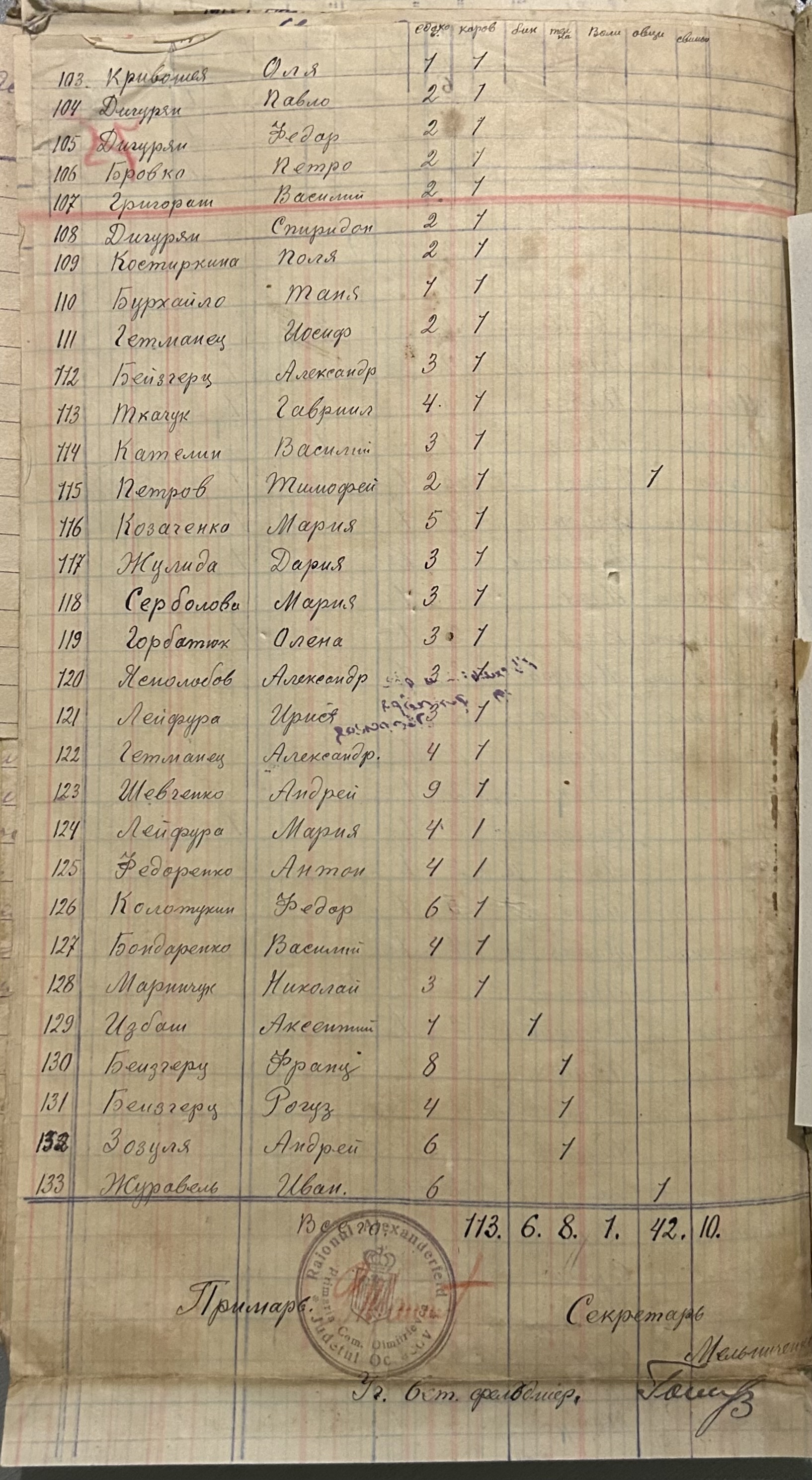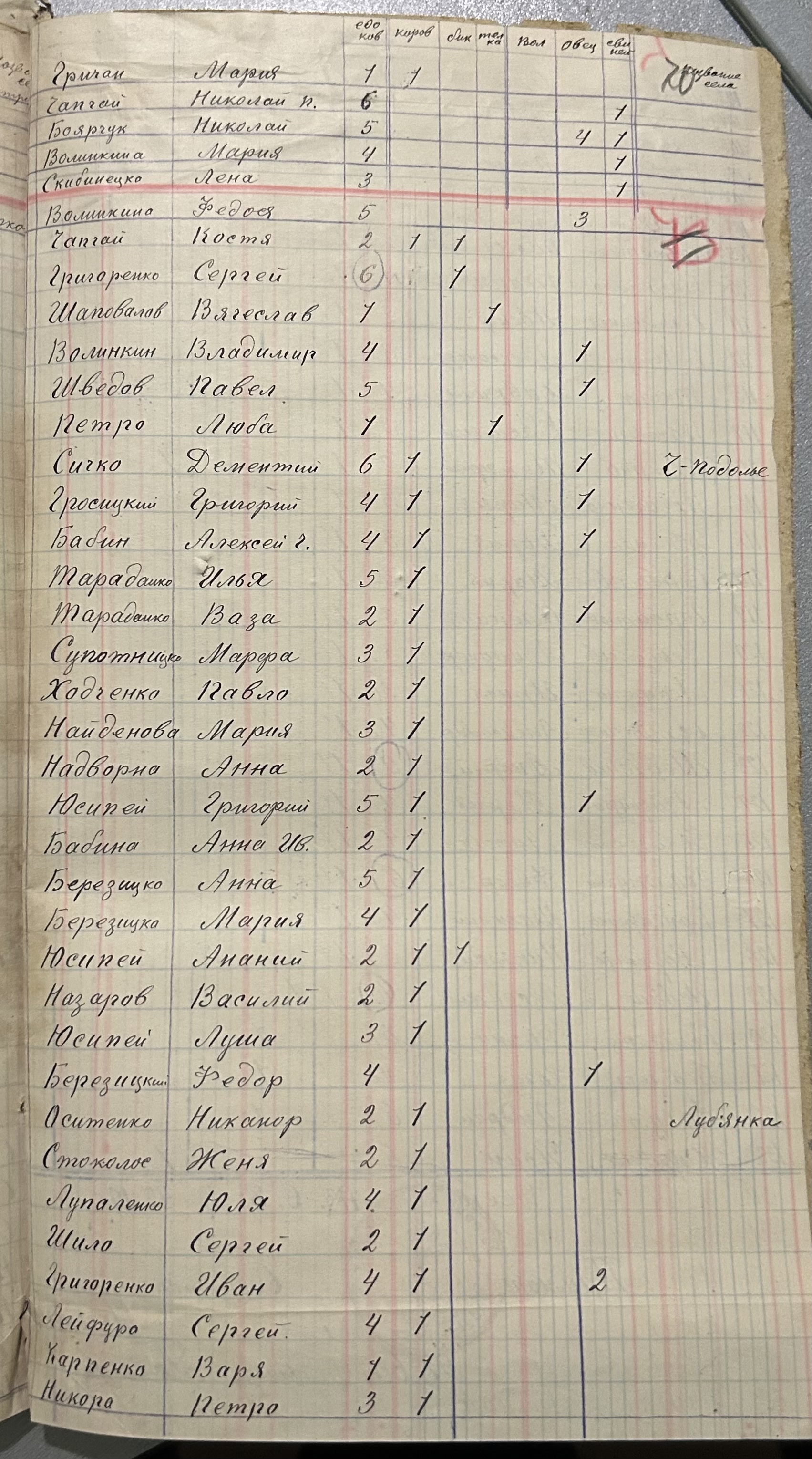 • • • • Справа № 8 “Списки реквізованої великої рогатої худоби по земельним товариствам Александерфельдського району за 1943 рік”