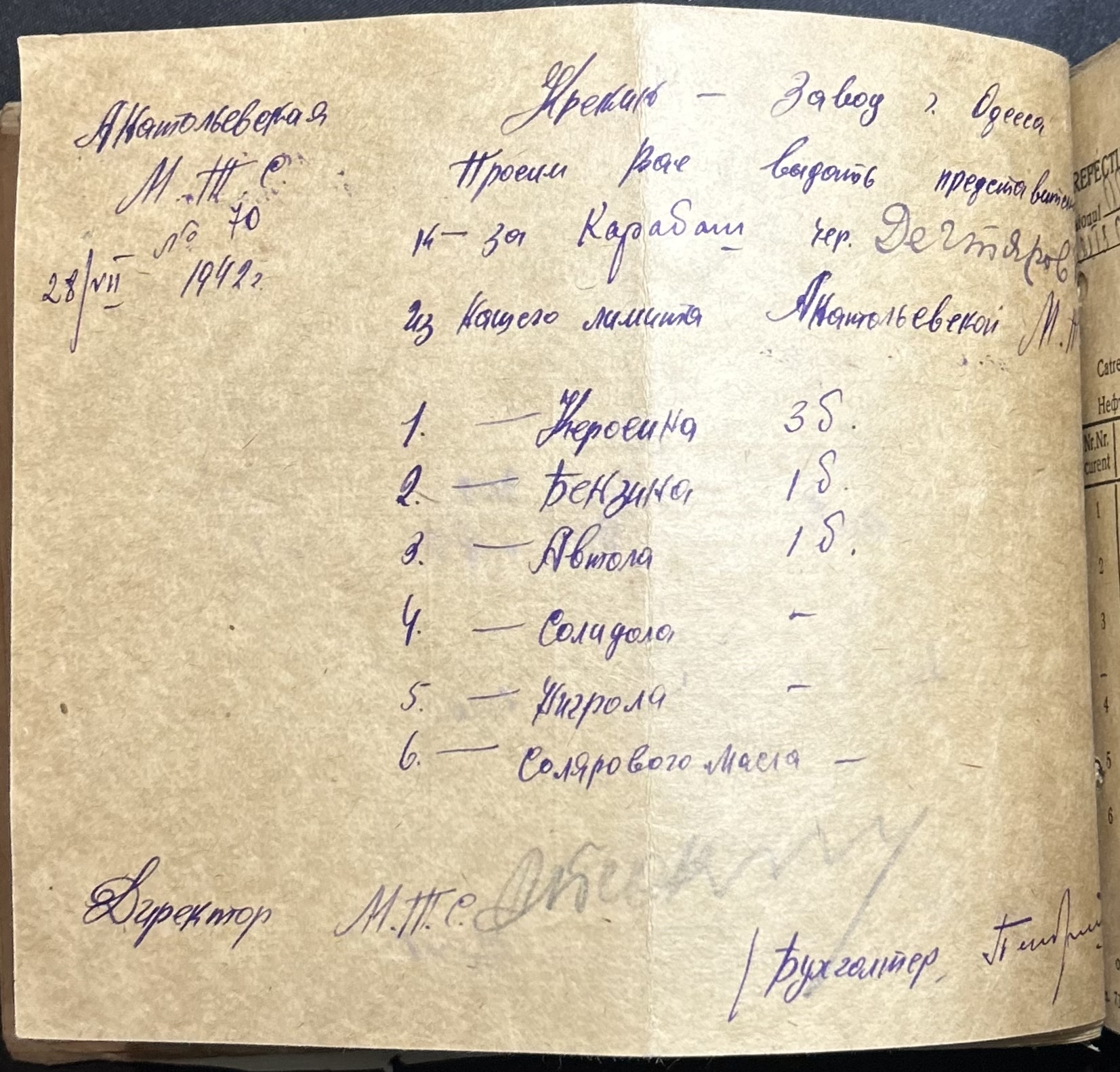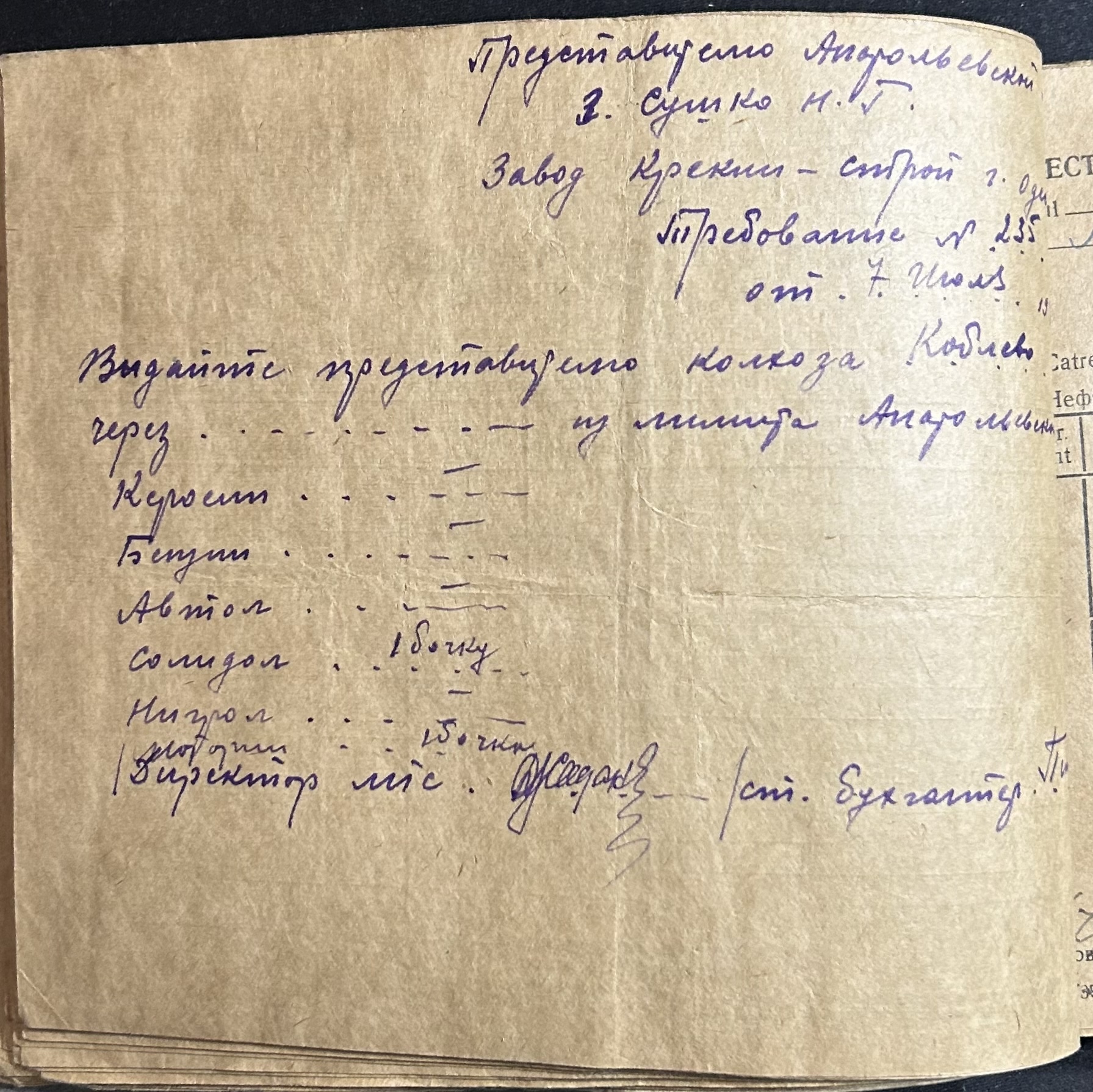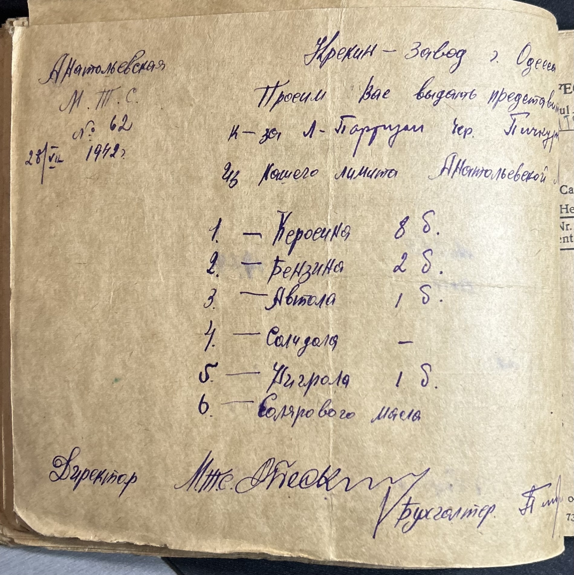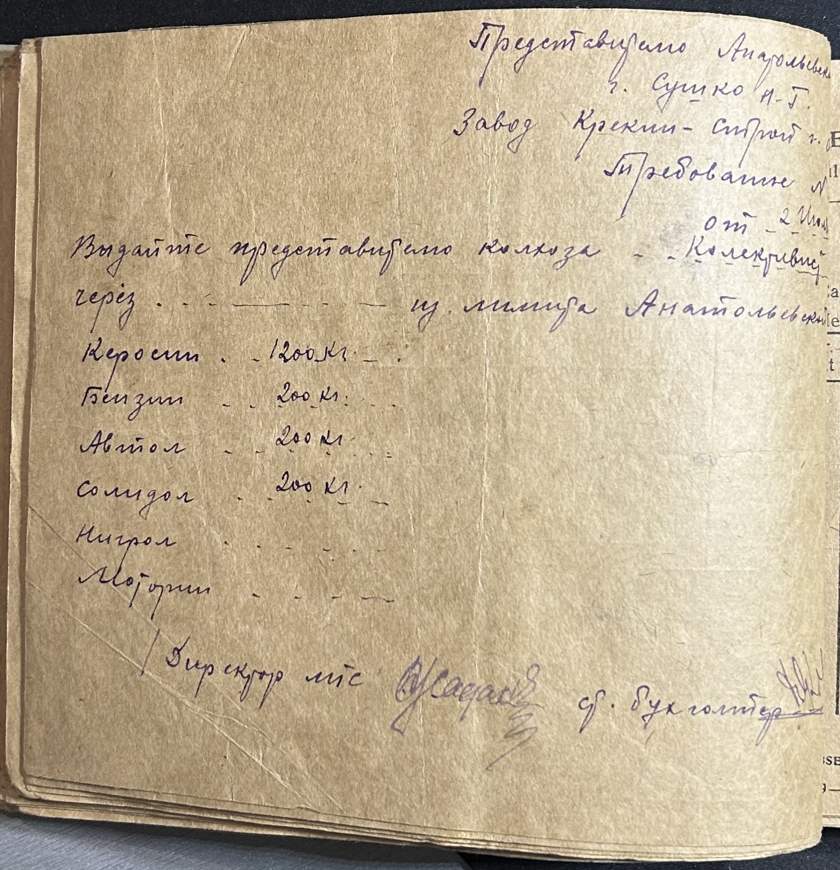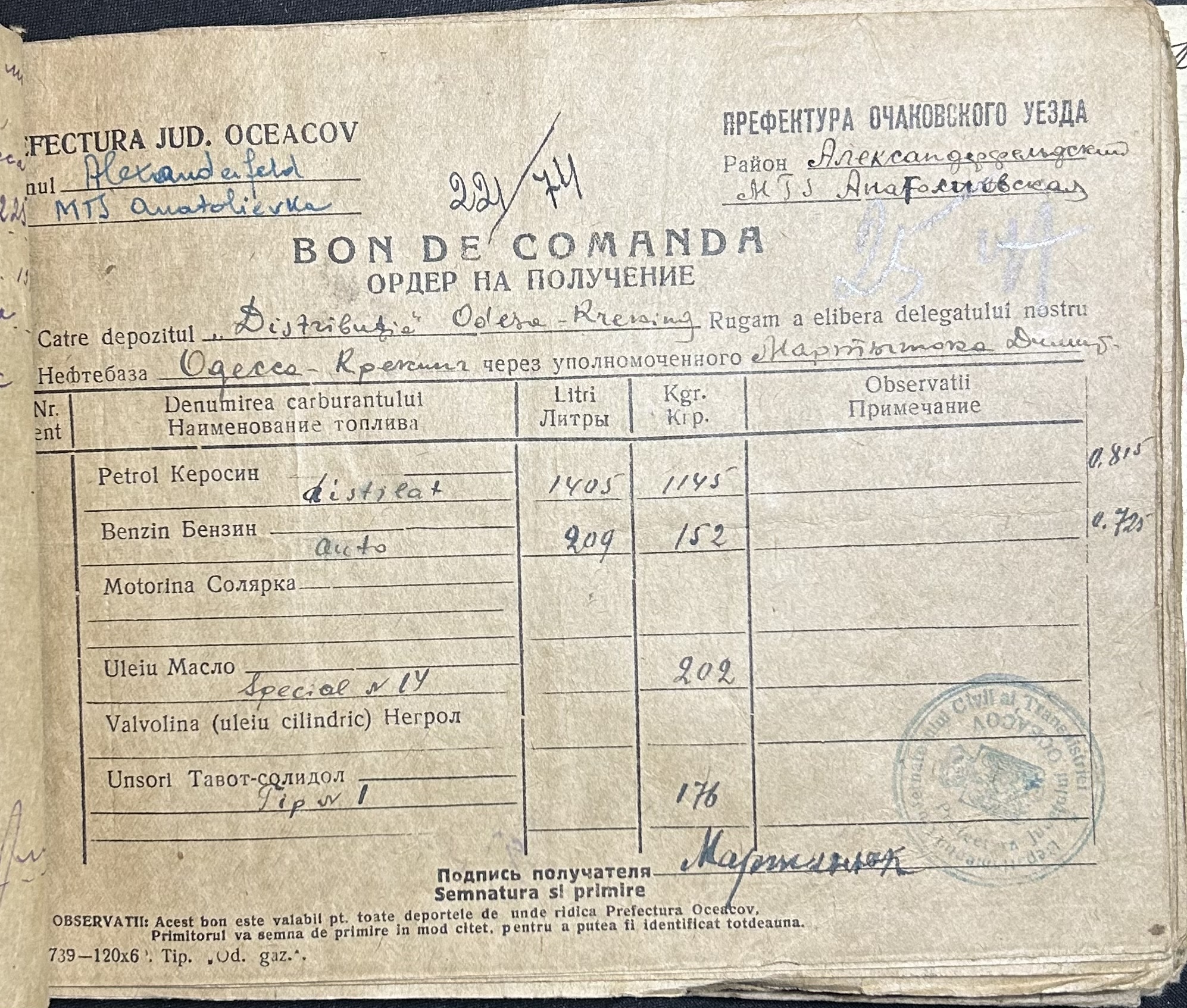 • • • • Справа № 7 “Ордери на отримання пального Анатоліівською МТС”