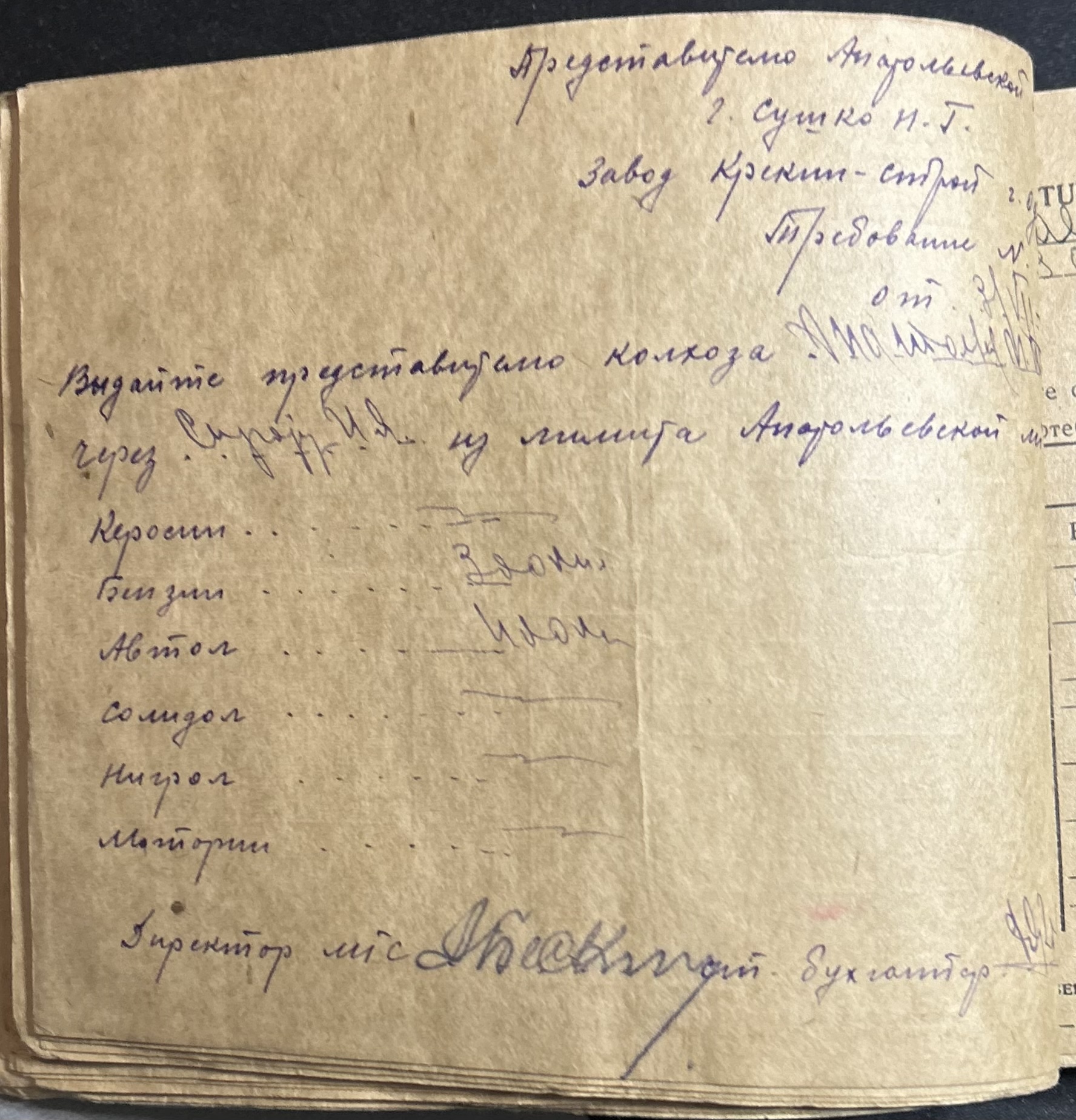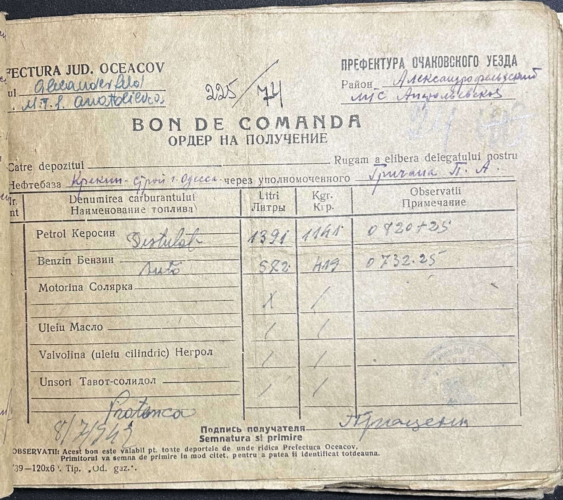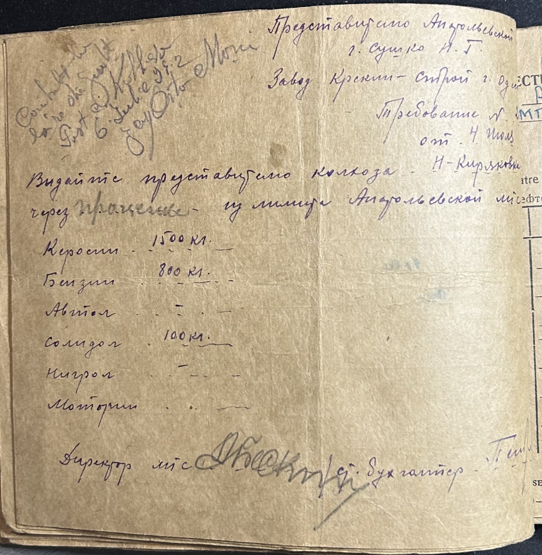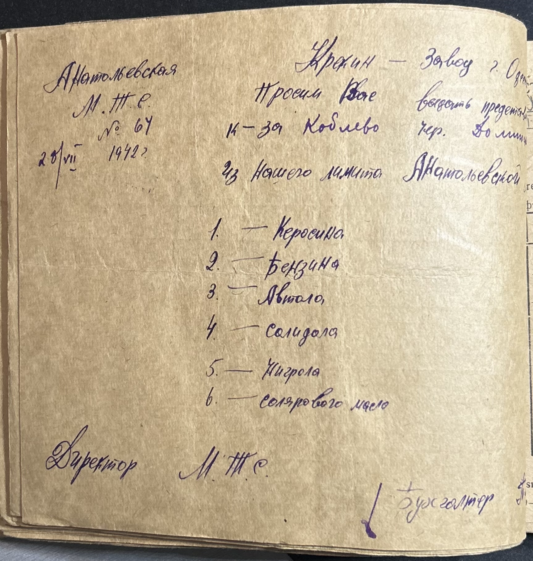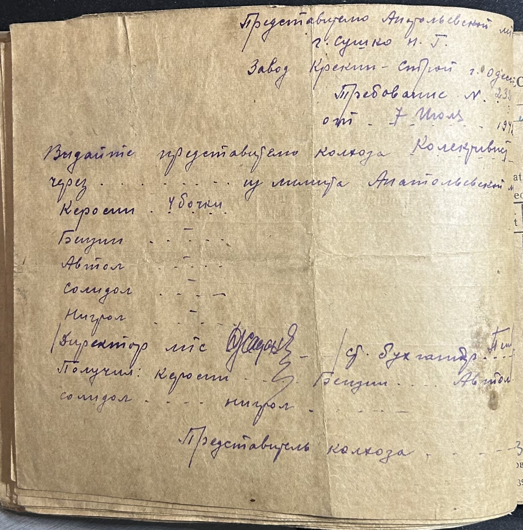 • • • • Справа № 7 “Ордери на отримання пального Анатоліівською МТС”