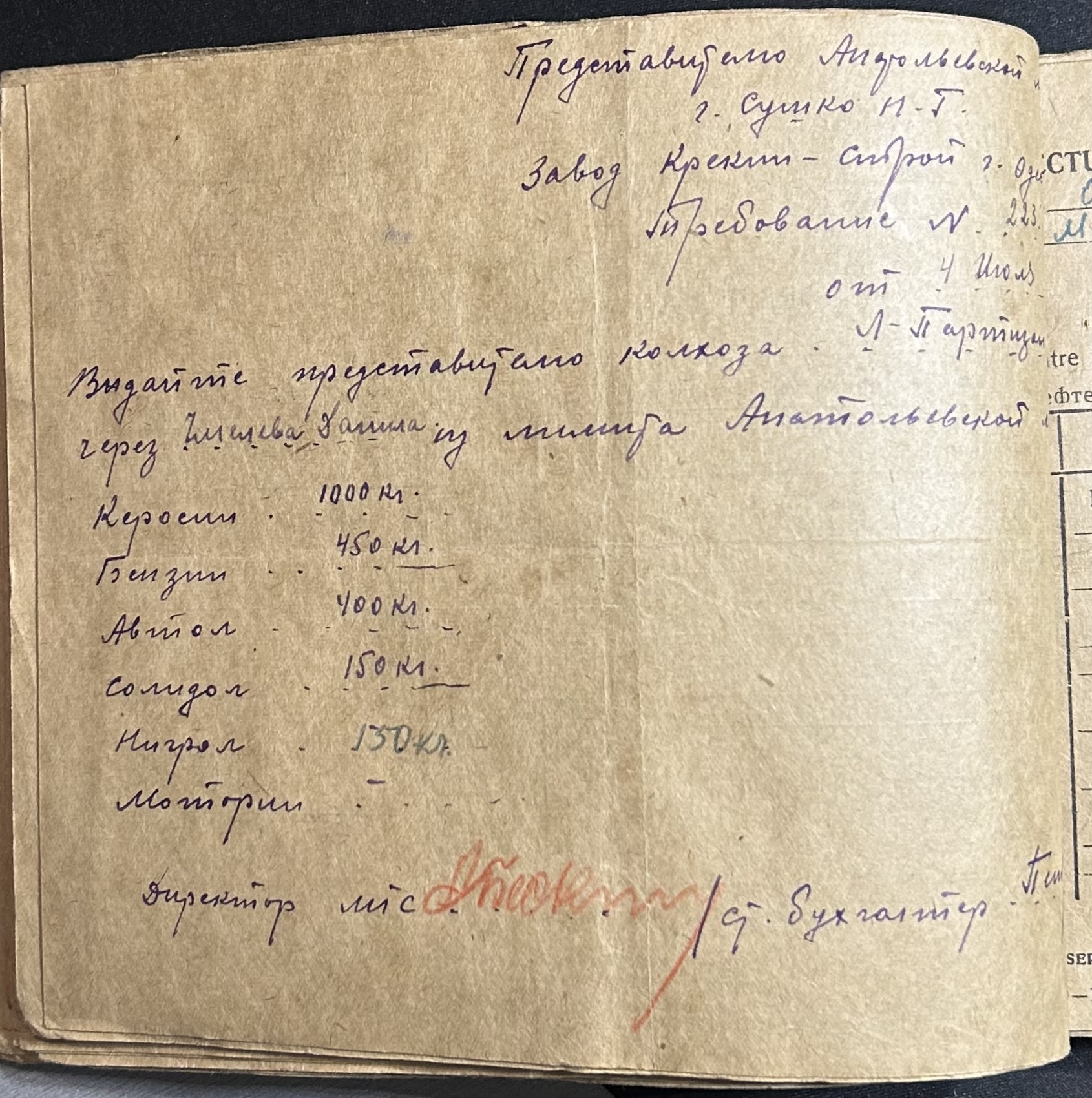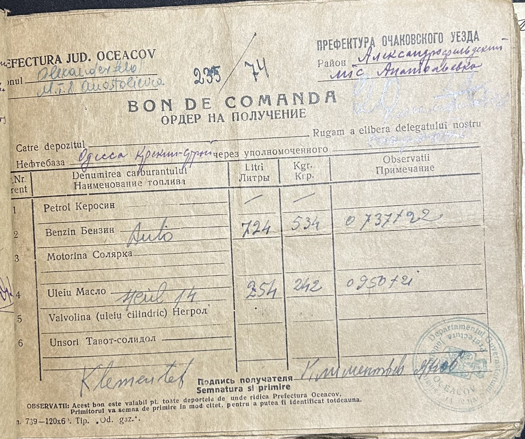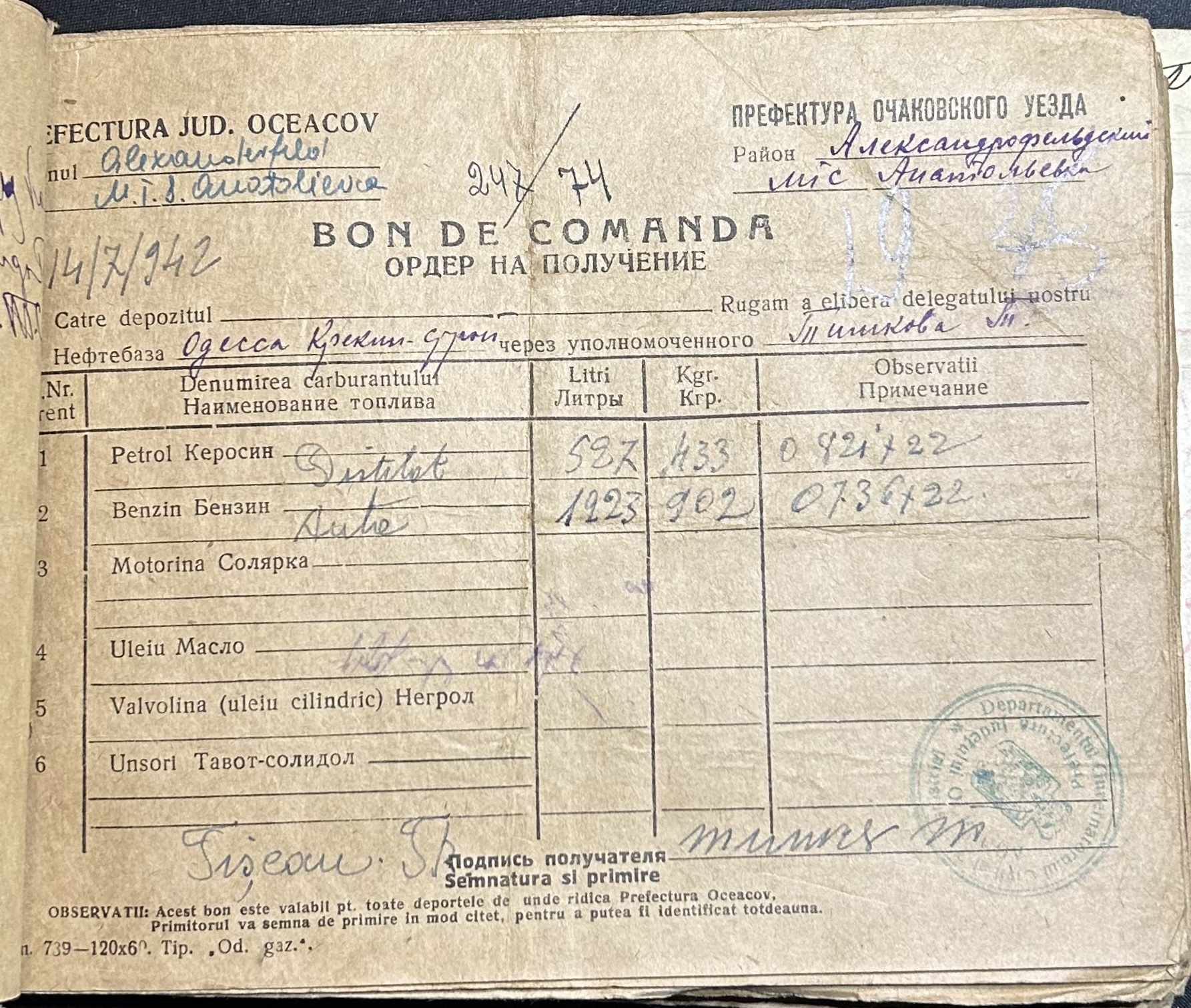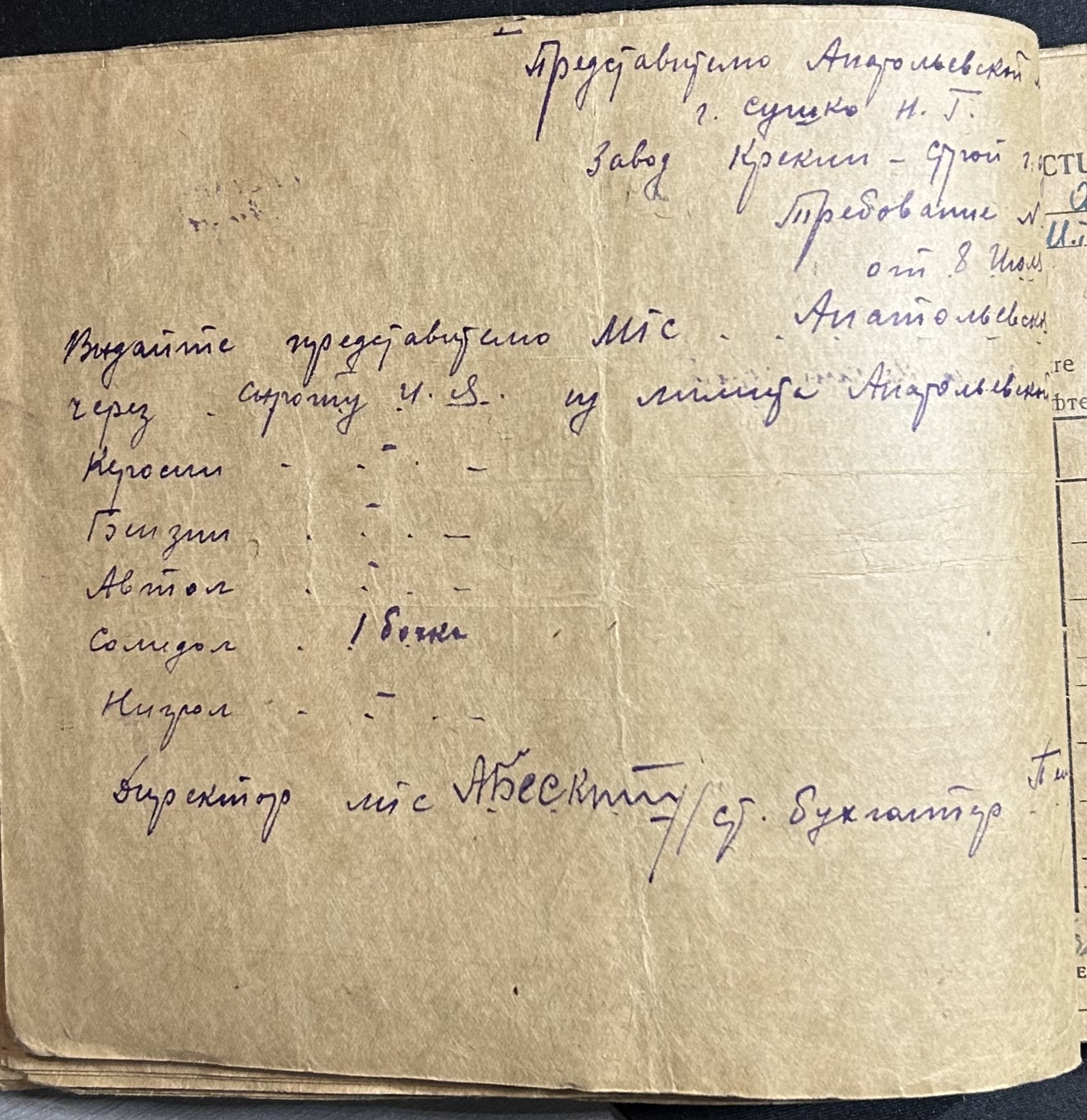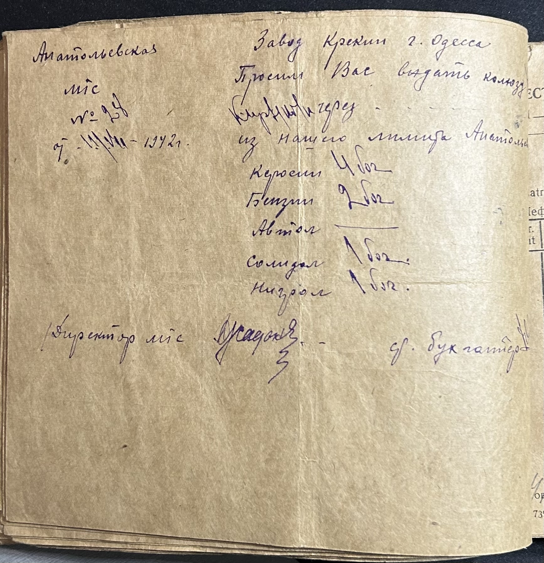 • • • • Справа № 7 “Ордери на отримання пального Анатоліівською МТС”