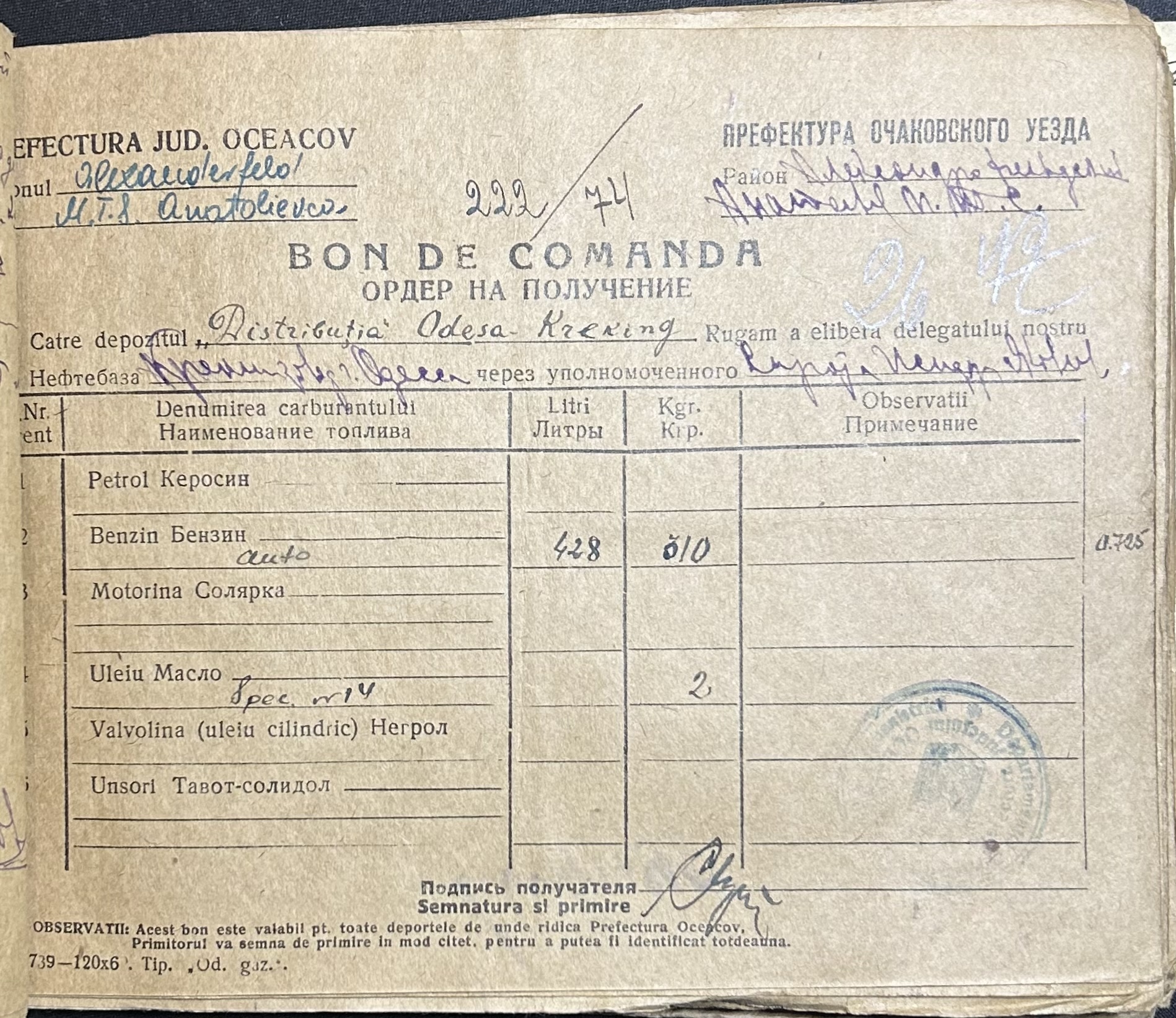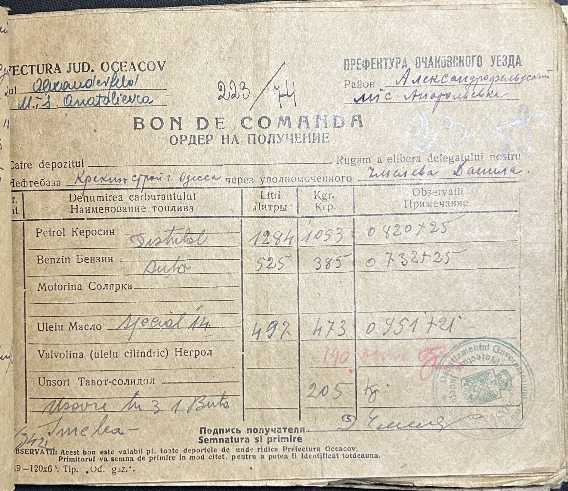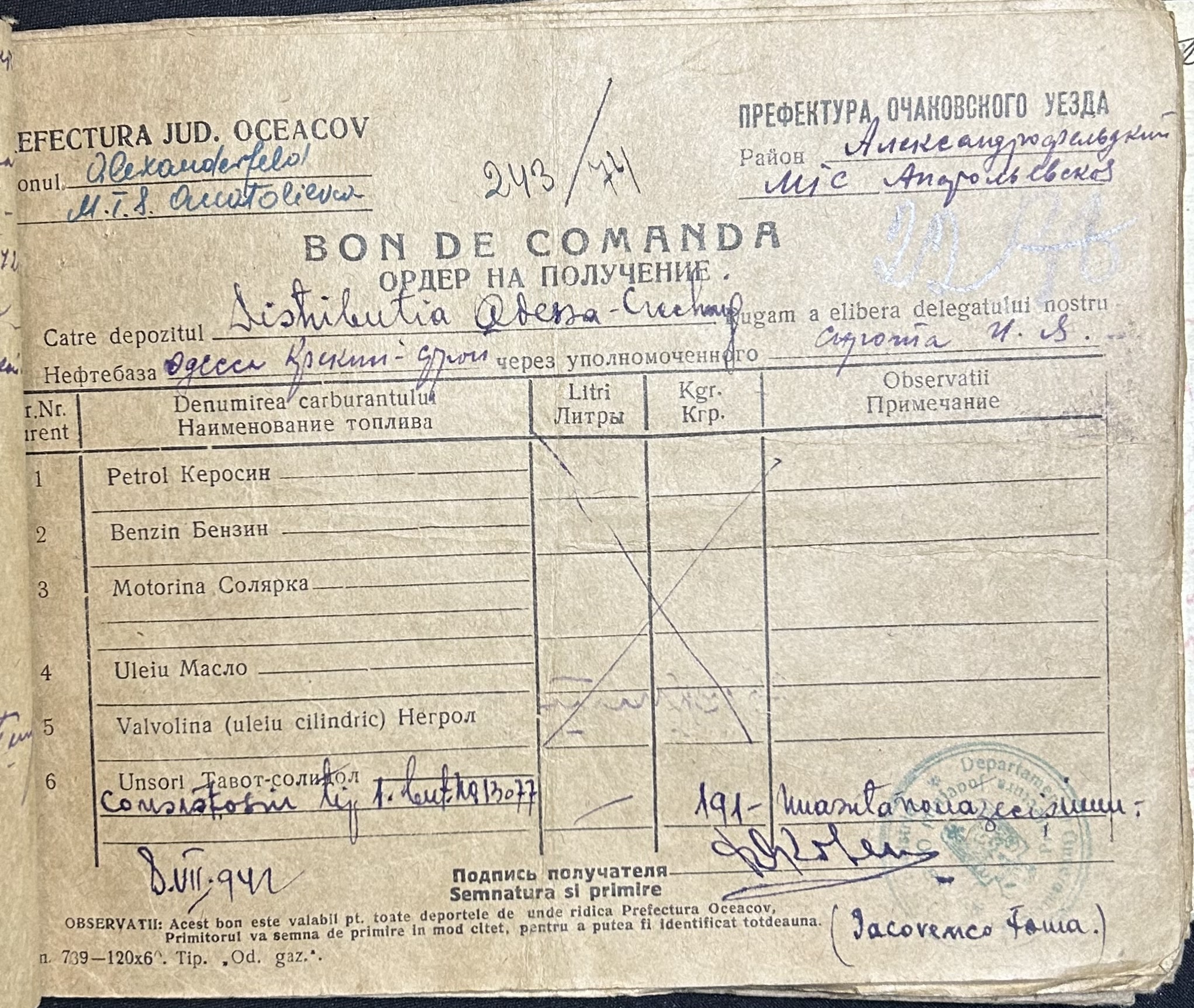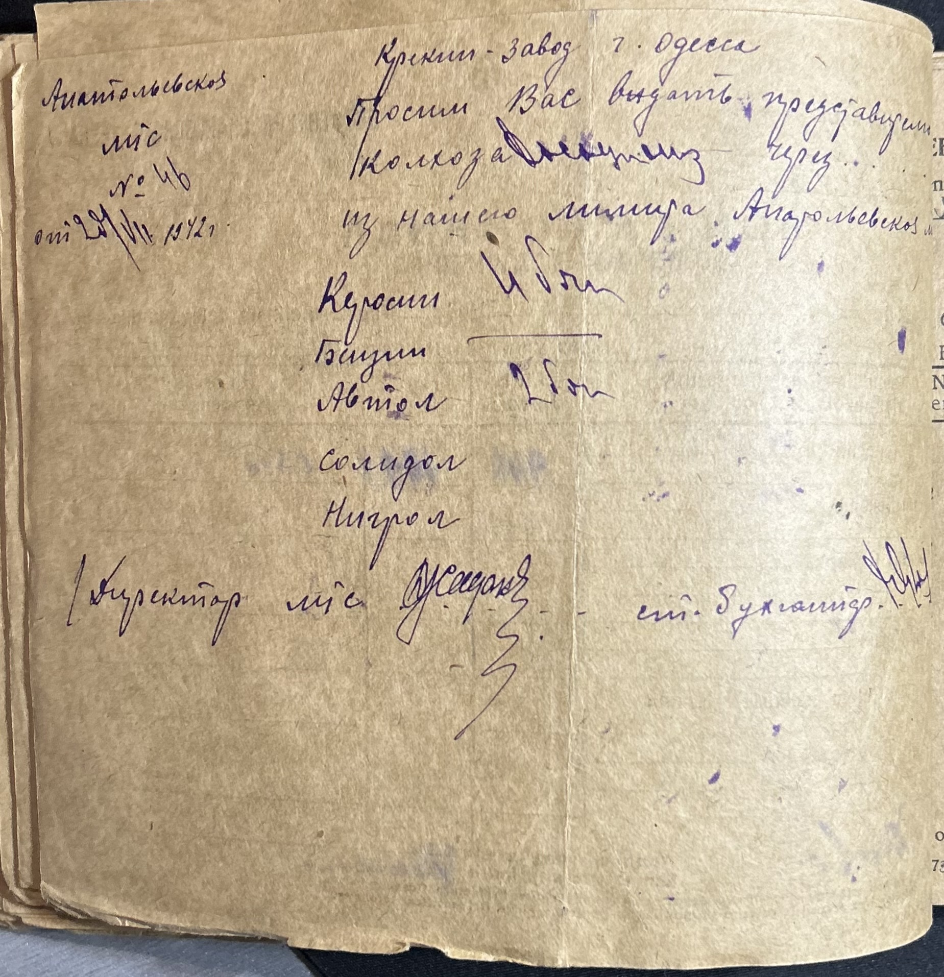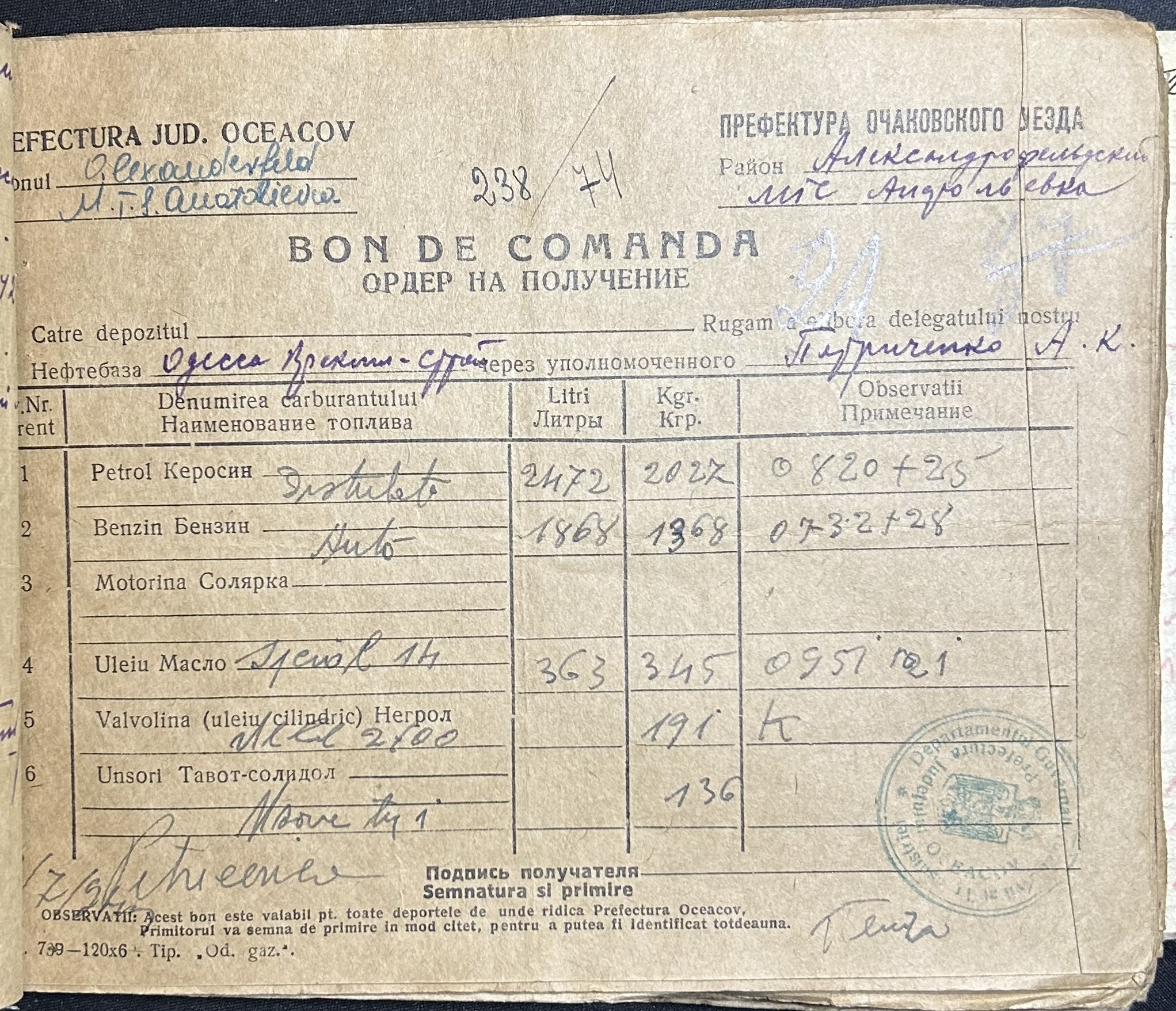 • • • • Справа № 7 “Ордери на отримання пального Анатоліівською МТС”