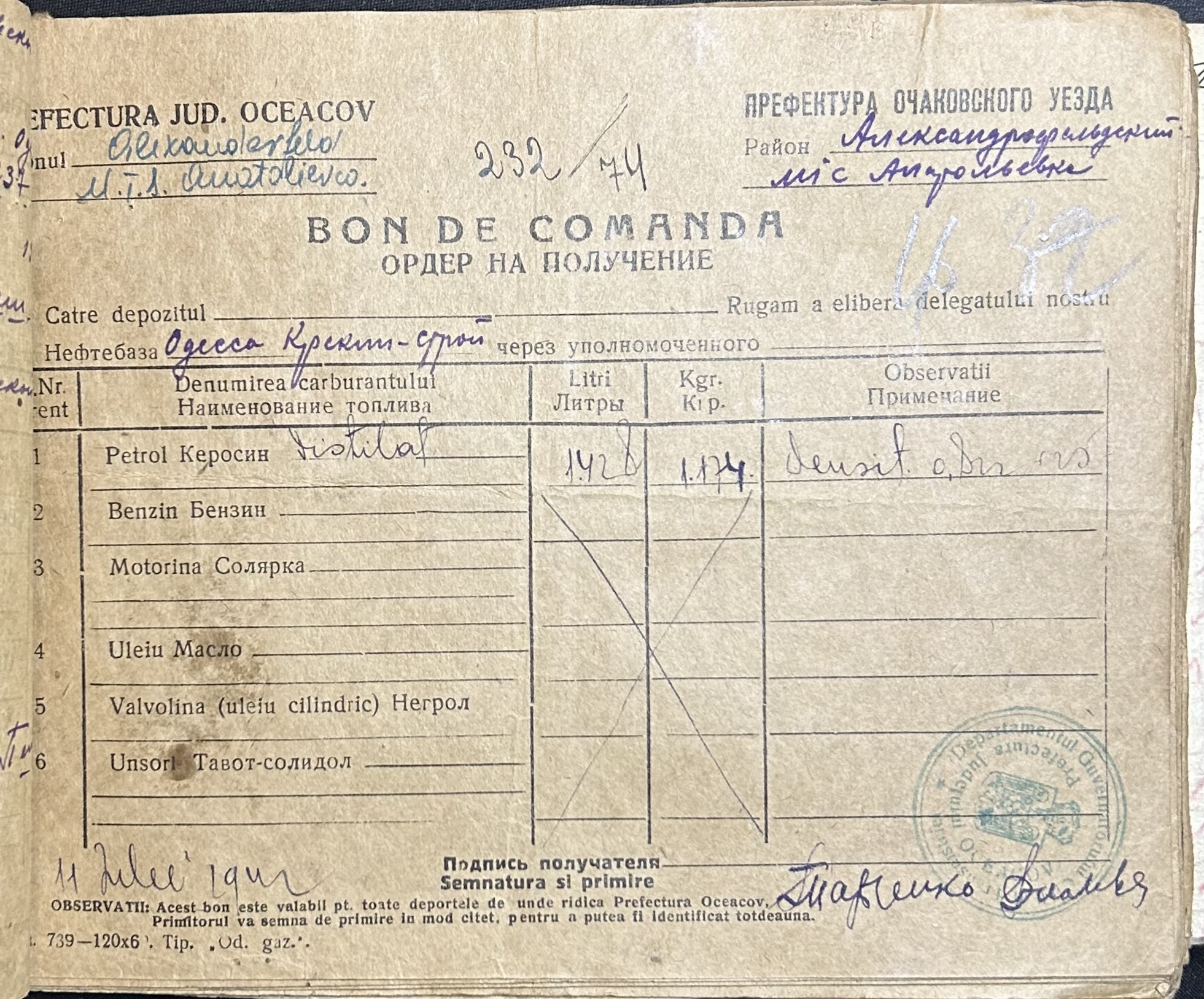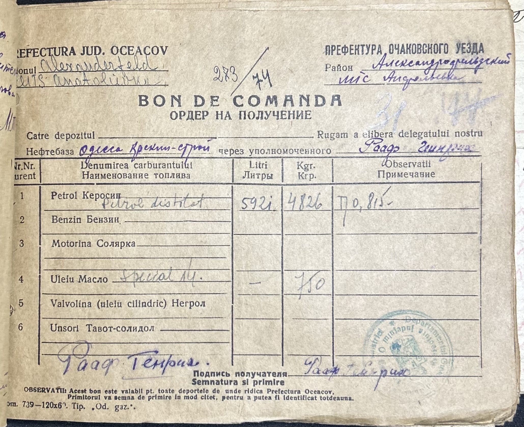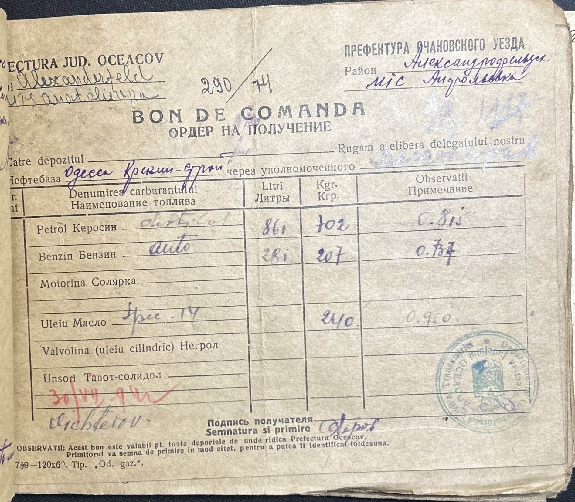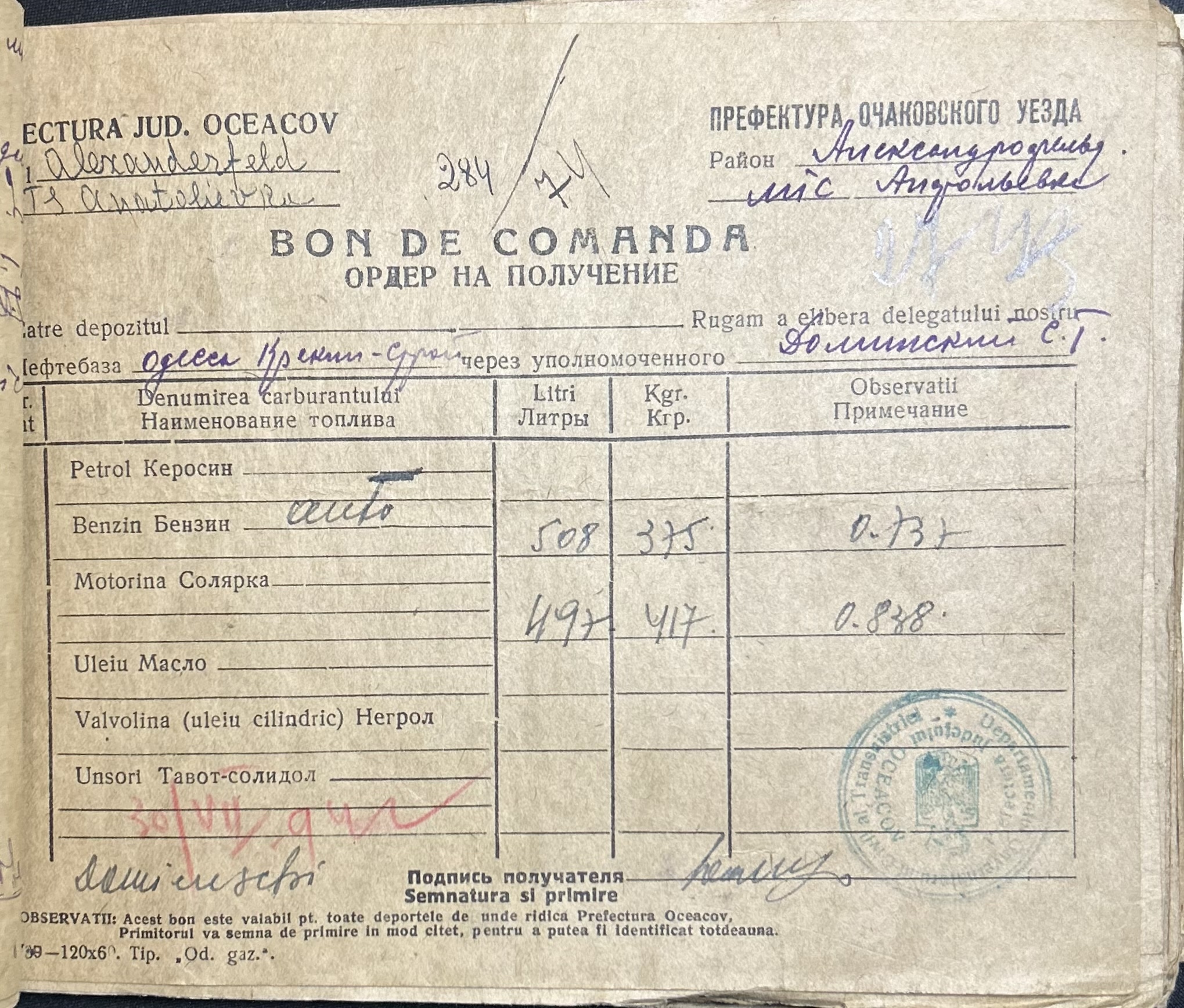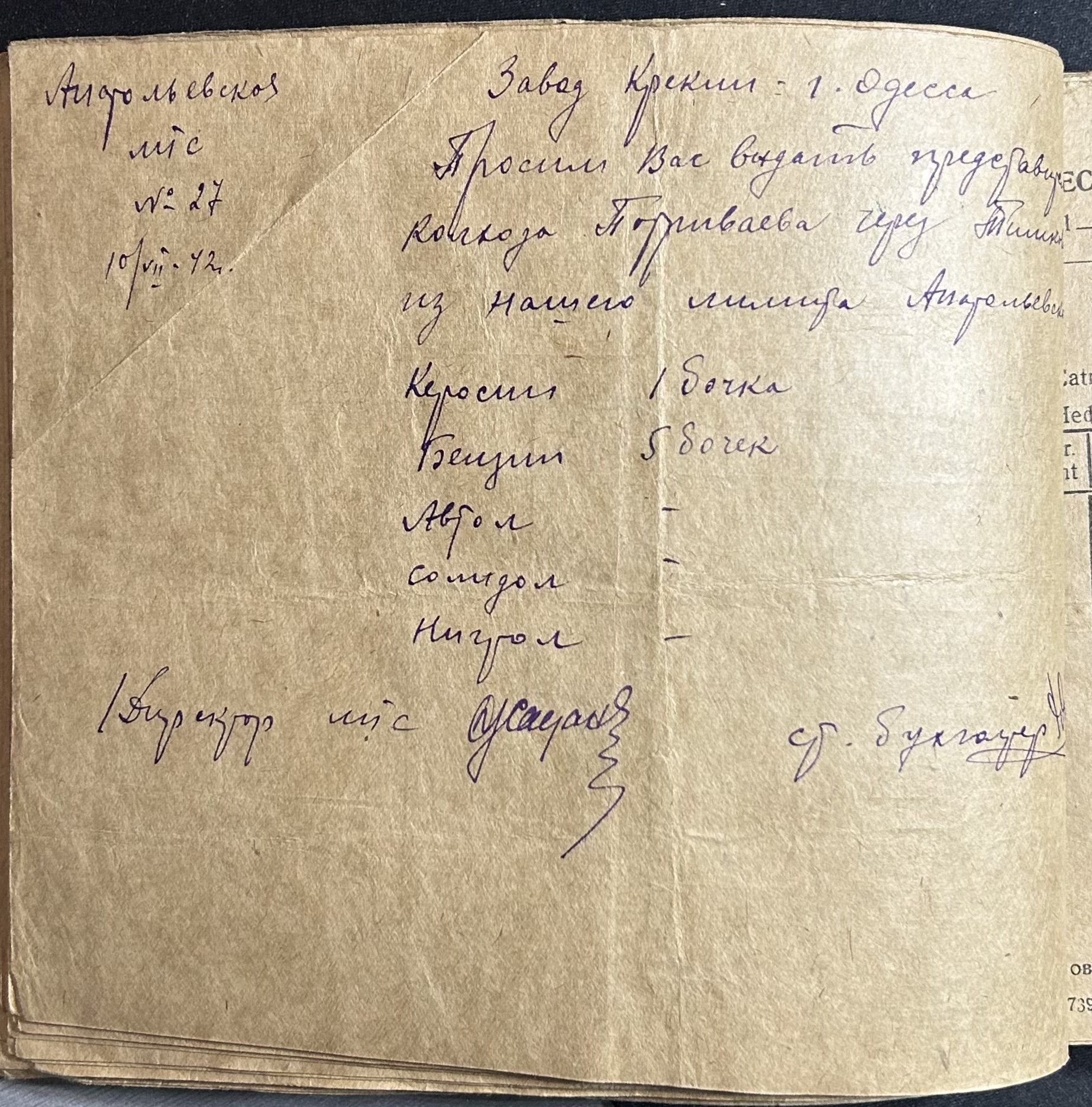 • • • • Справа № 7 “Ордери на отримання пального Анатоліівською МТС”
