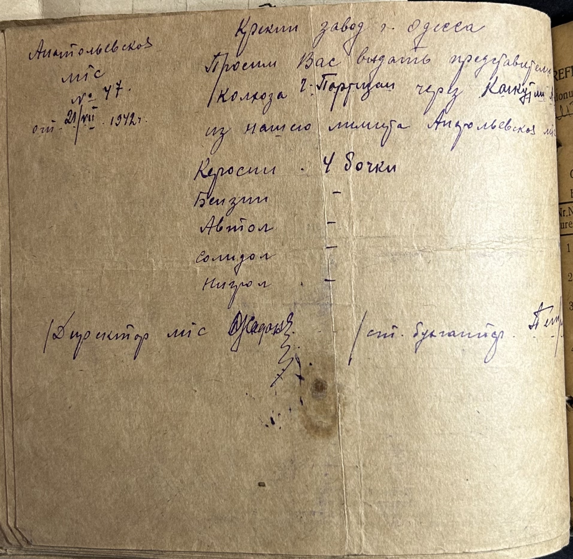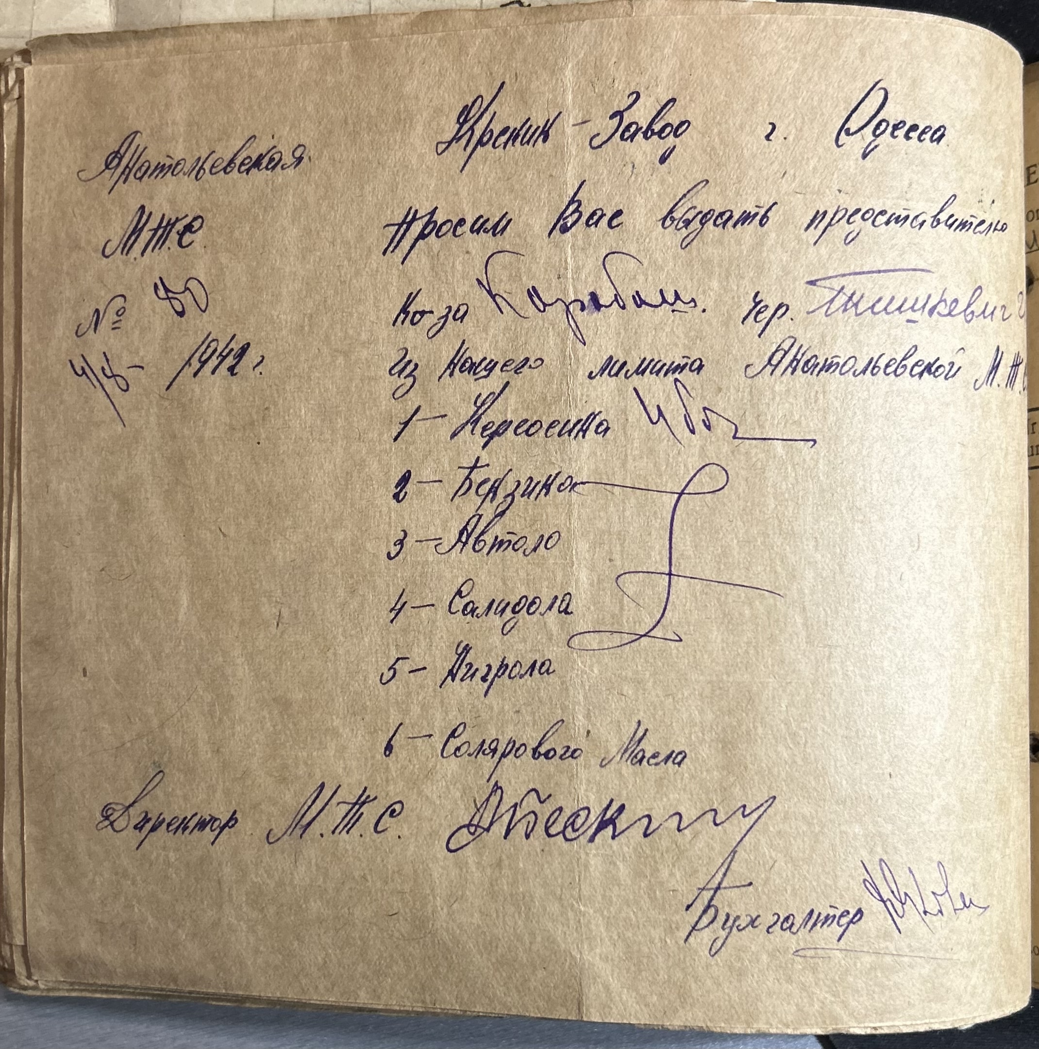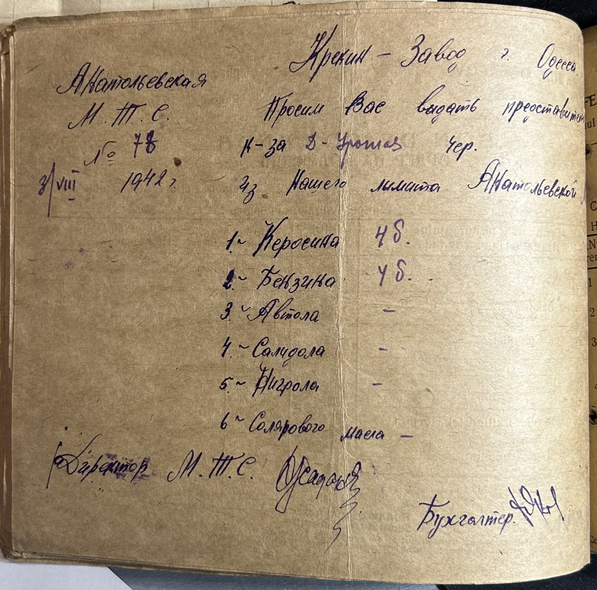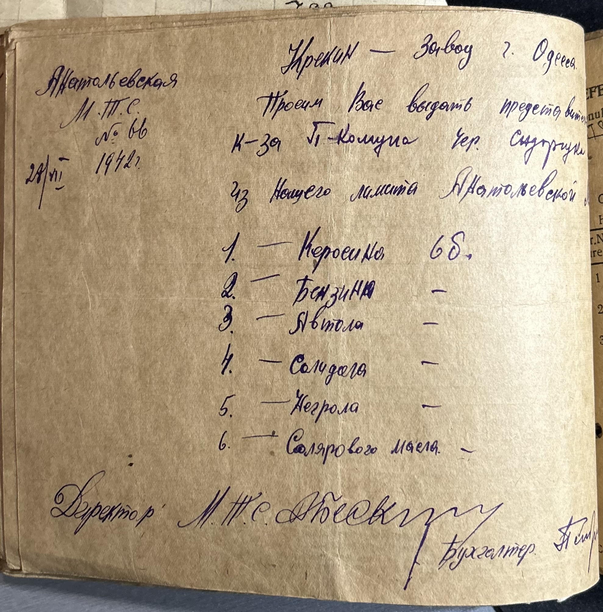 • • • • Справа № 7 “Ордери на отримання пального Анатоліівською МТС”